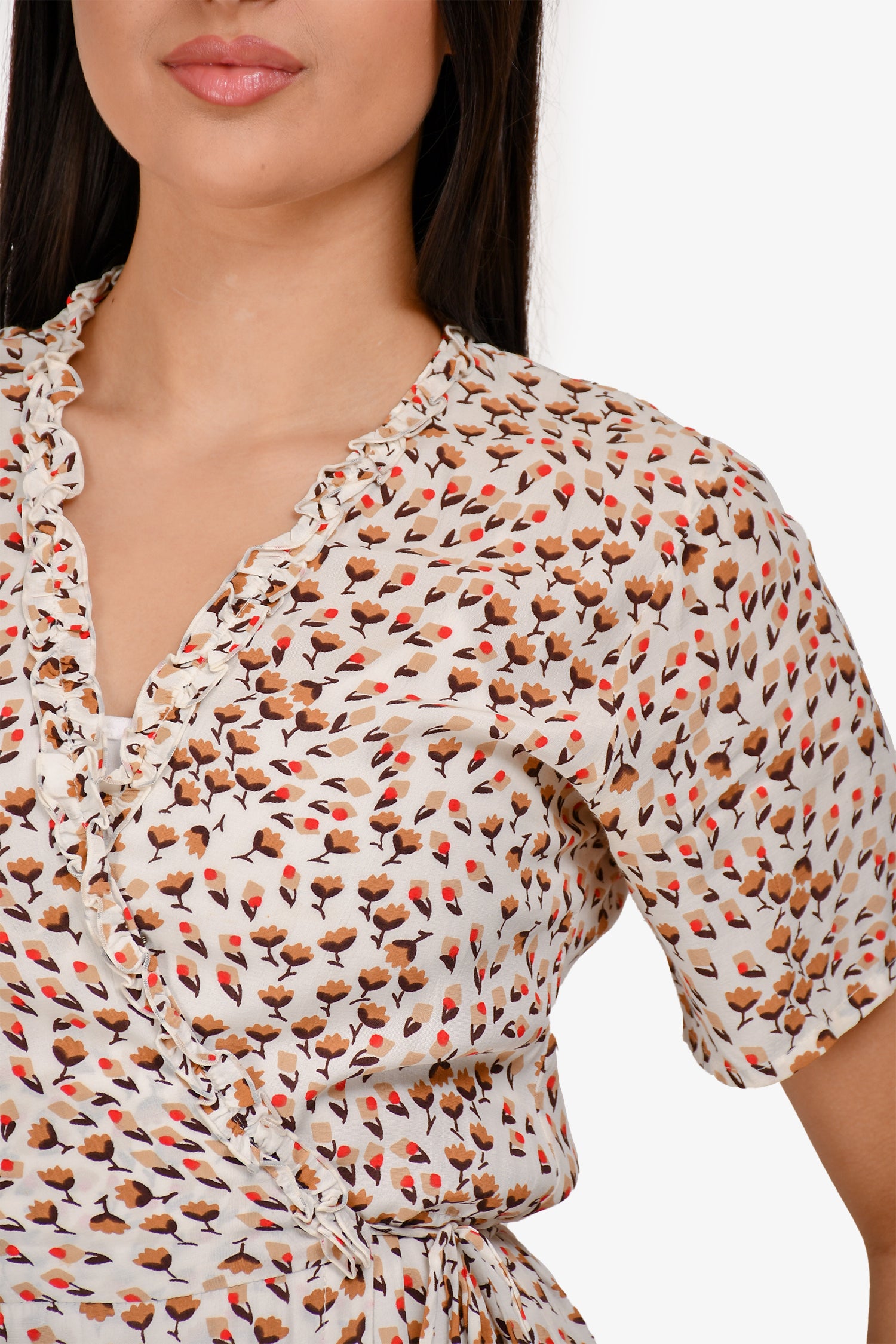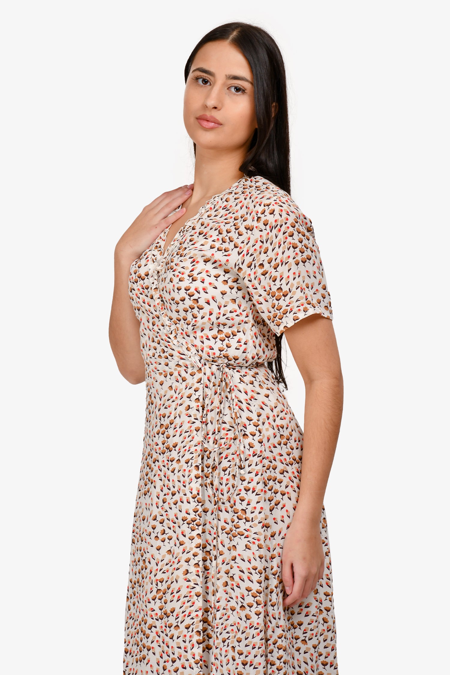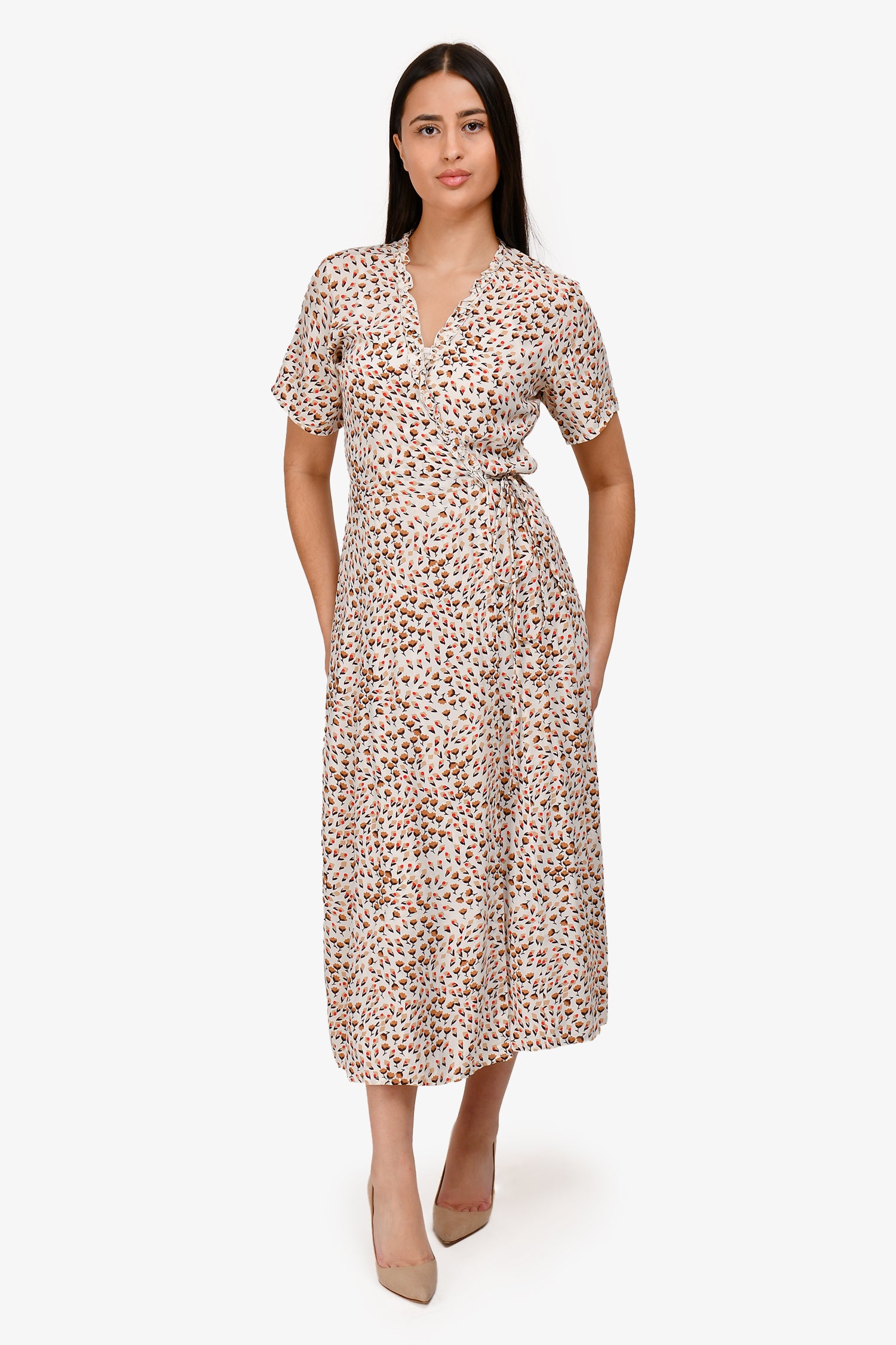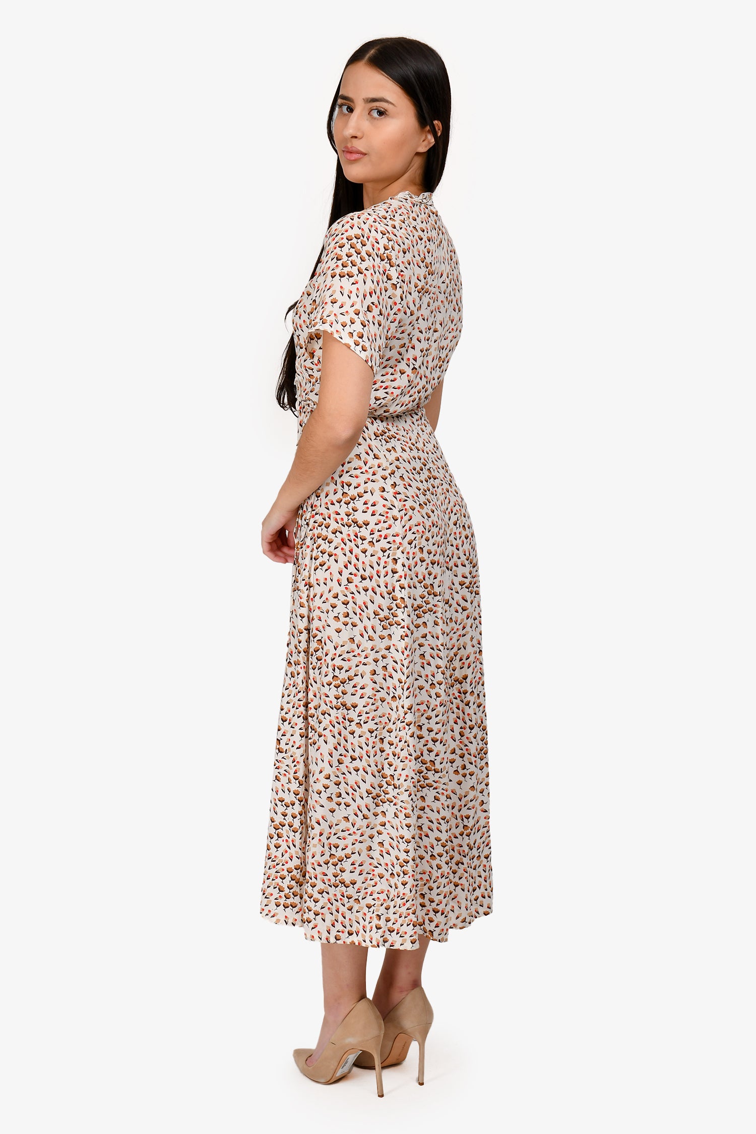 Faithfull The Brand White Patterned Wrap Midi Dress Size 6