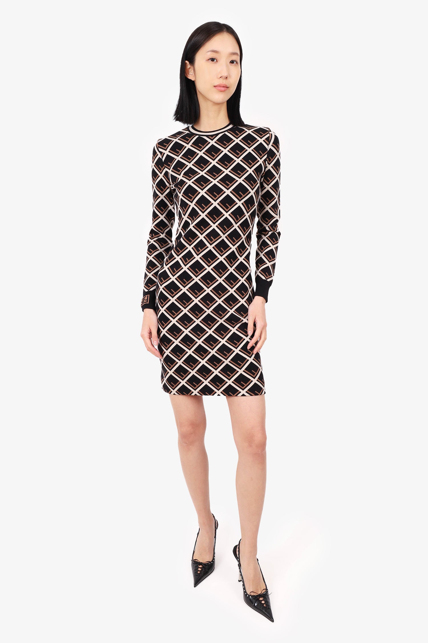 Refresh availabilityFendi Black/Brown Knit All-Over Zucca Print Dress. Pull on. Ribbed trimmings. Unlined. Tonal stitching.
