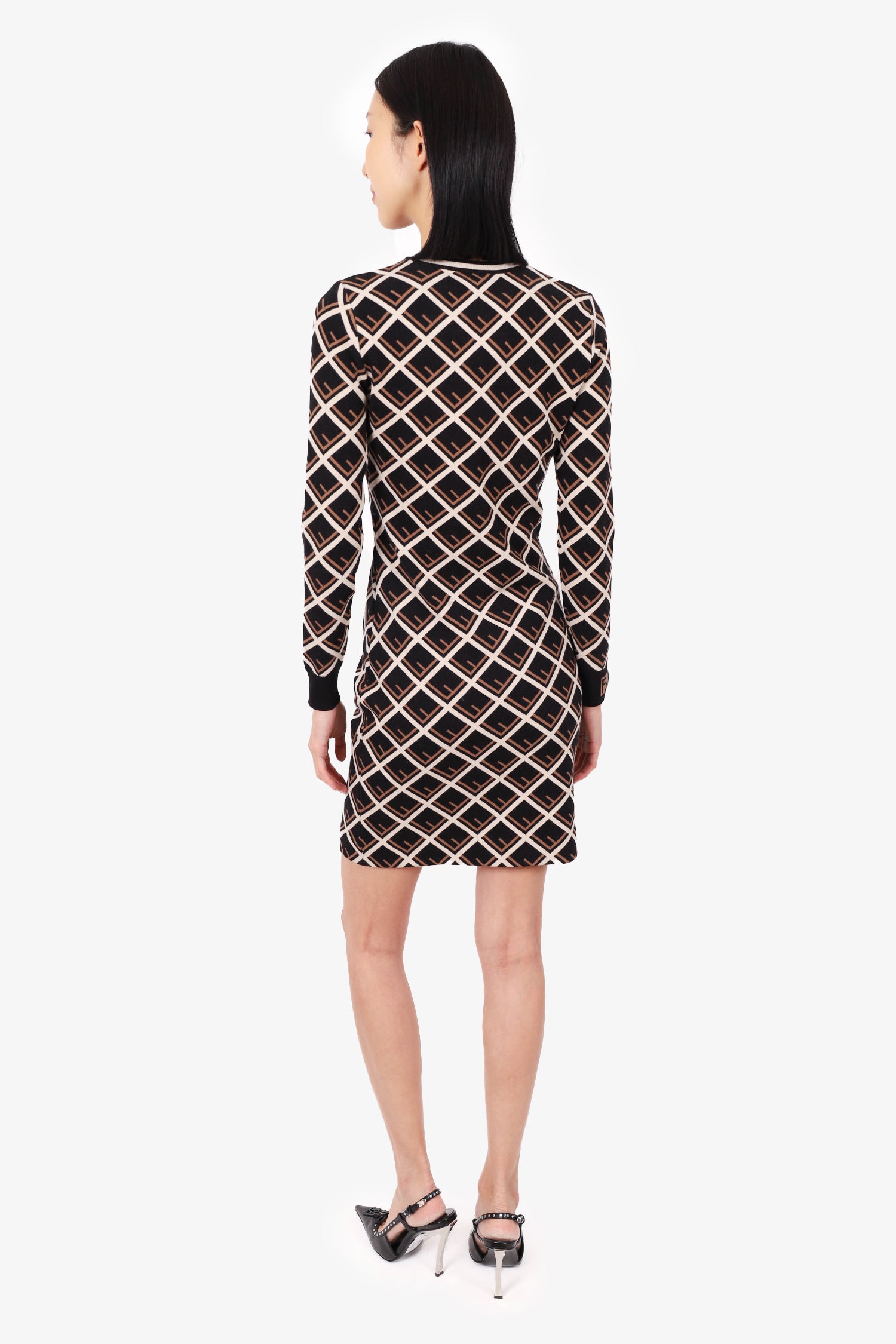 Fendi Black/Brown Knit All-Over Zucca Print Dress Size 40