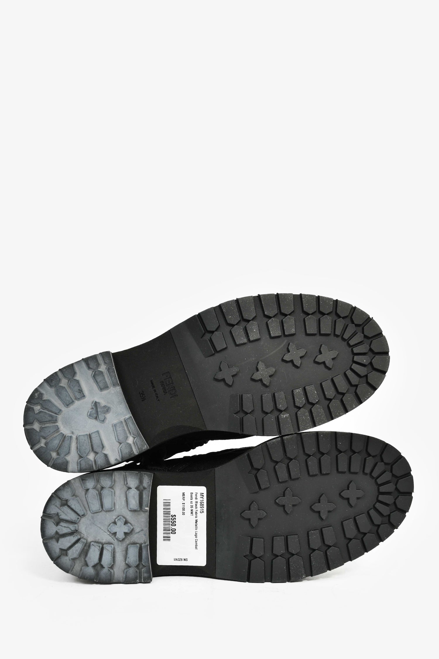 Fendi Black Fabric Metallic Logo Combat Boots Size 35