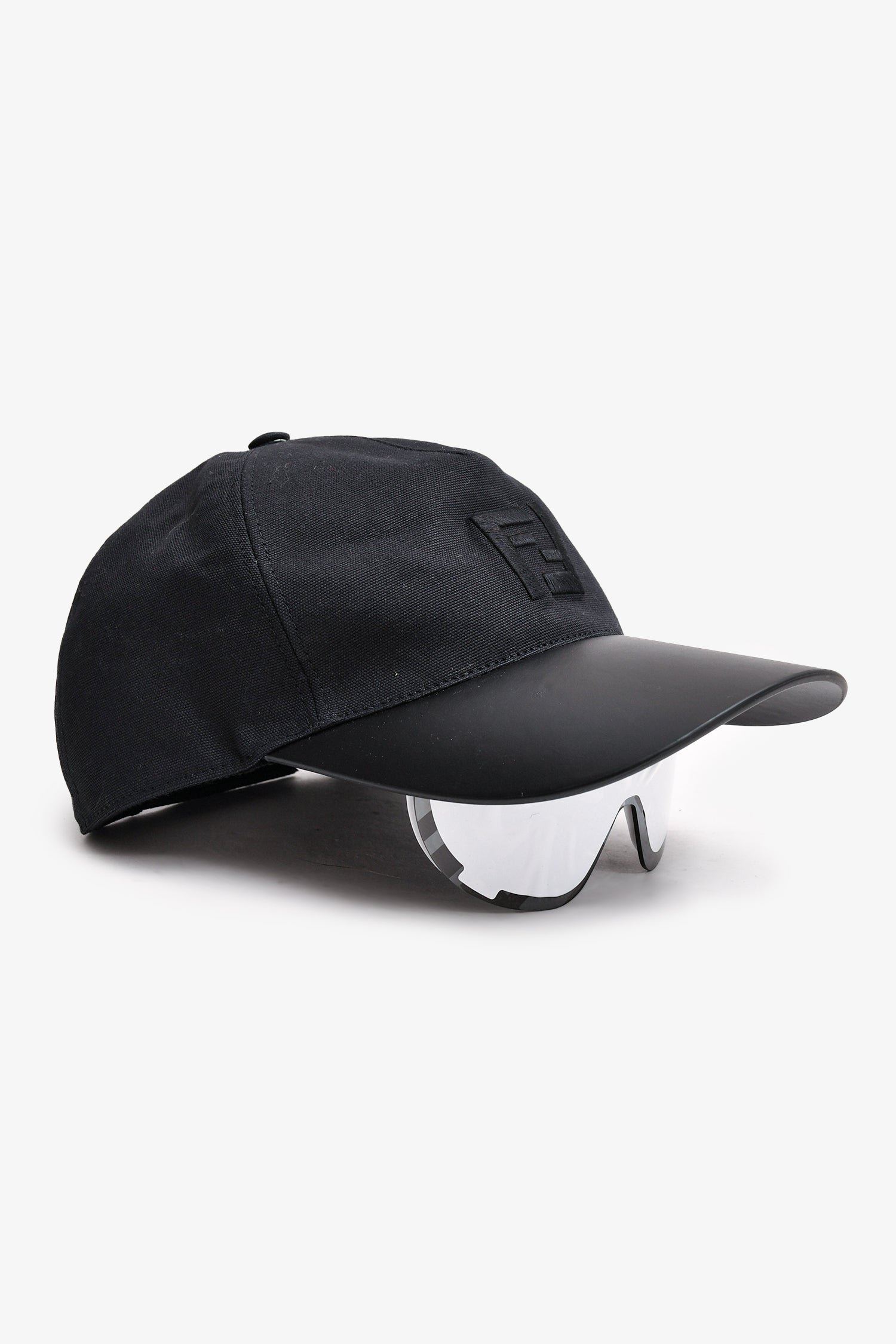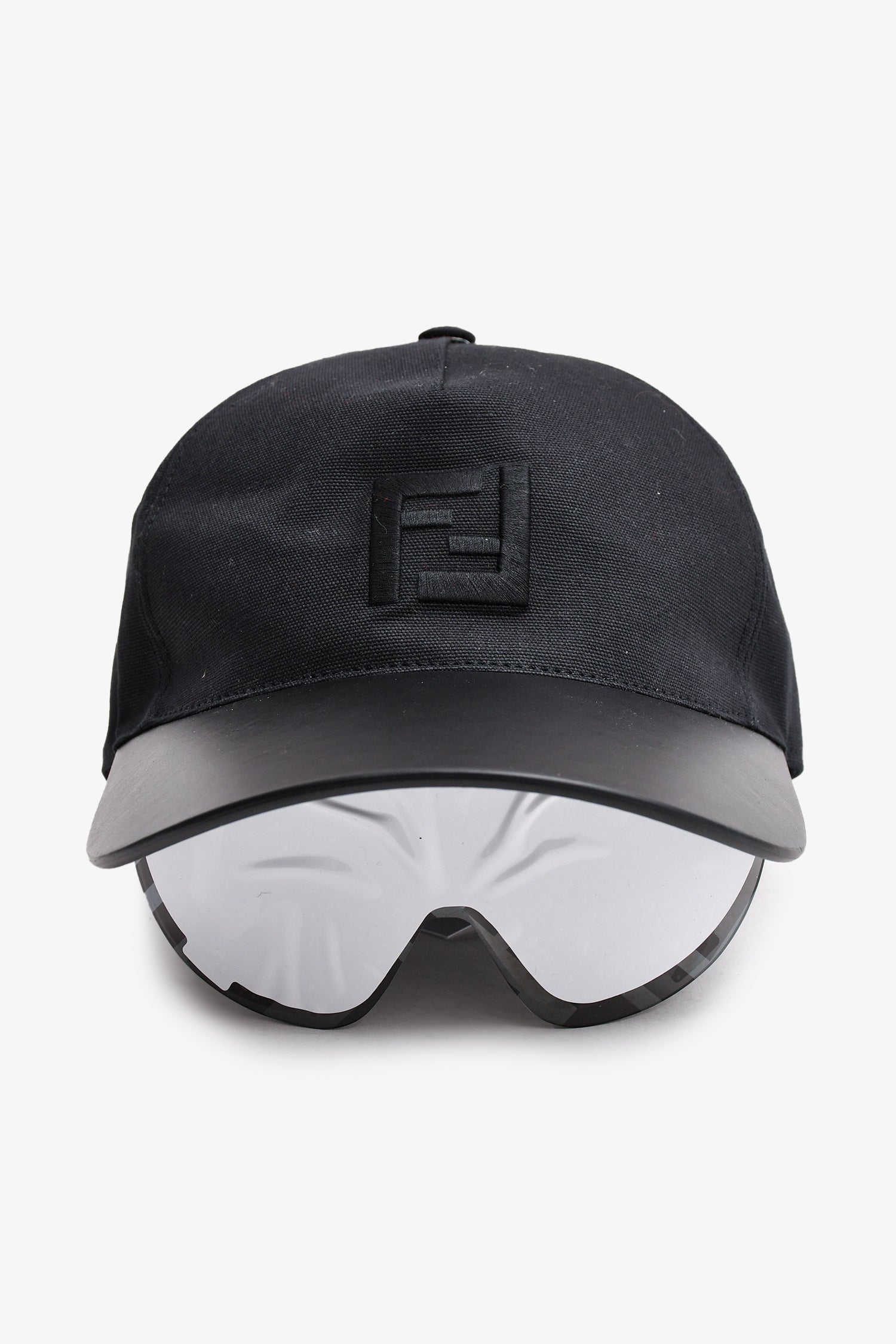 Refresh availabilityFendi Black Leather/Fabric FF Baseball Hat. Retractable sunglasses at the front. Adjustable velcro at the back. Embroidered logo at the front. Tonal stitching.