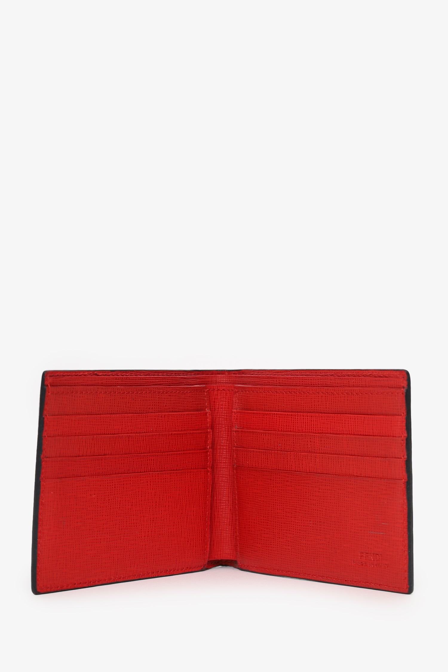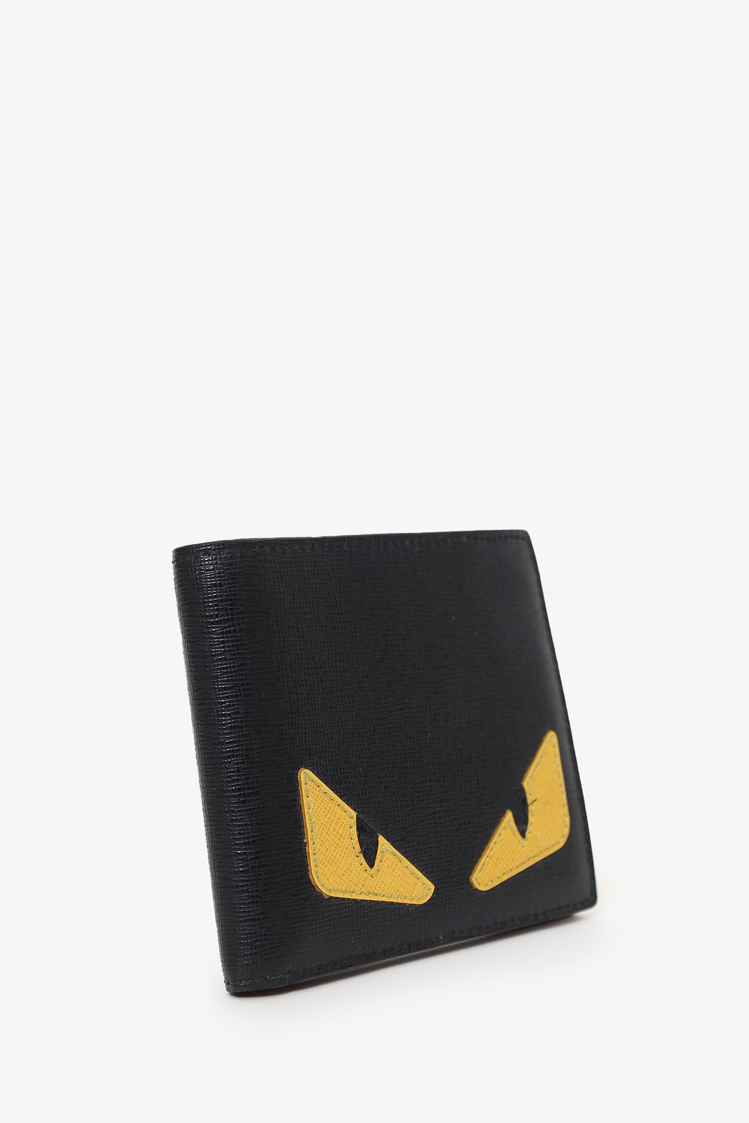 Refresh availabilityFendi Black Leather Monster Eye Bifold Wallet. 8 interior card slots inside bifold. 2 interior bill slots. Tonal stitching.