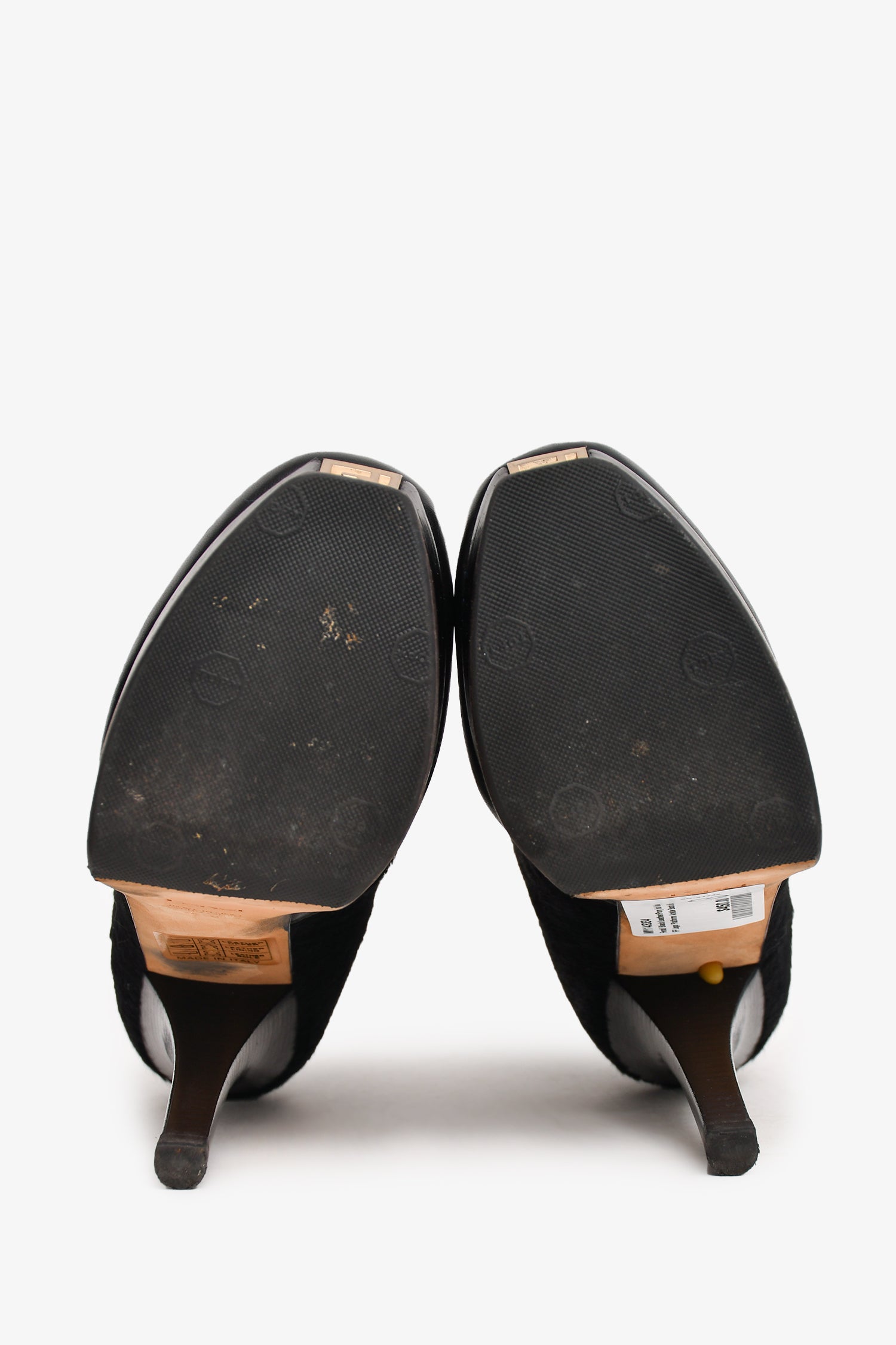 Fendi Black Leather/Pony Hair Calfskin FF Logo Platform Ankle Boots Size 36.5