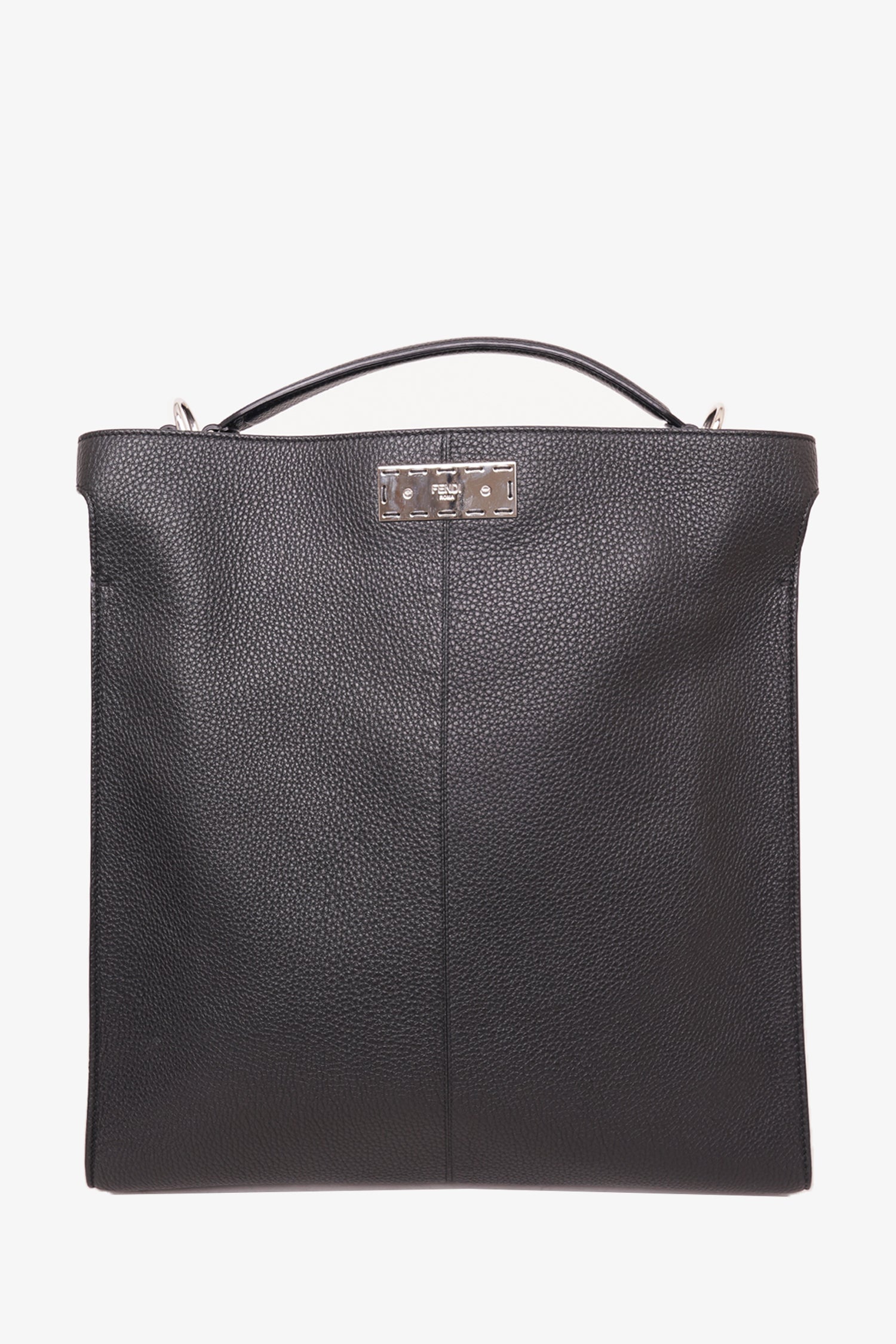 Fendi Black Leather Romano Peekaboo X-Lite Toto With Strap