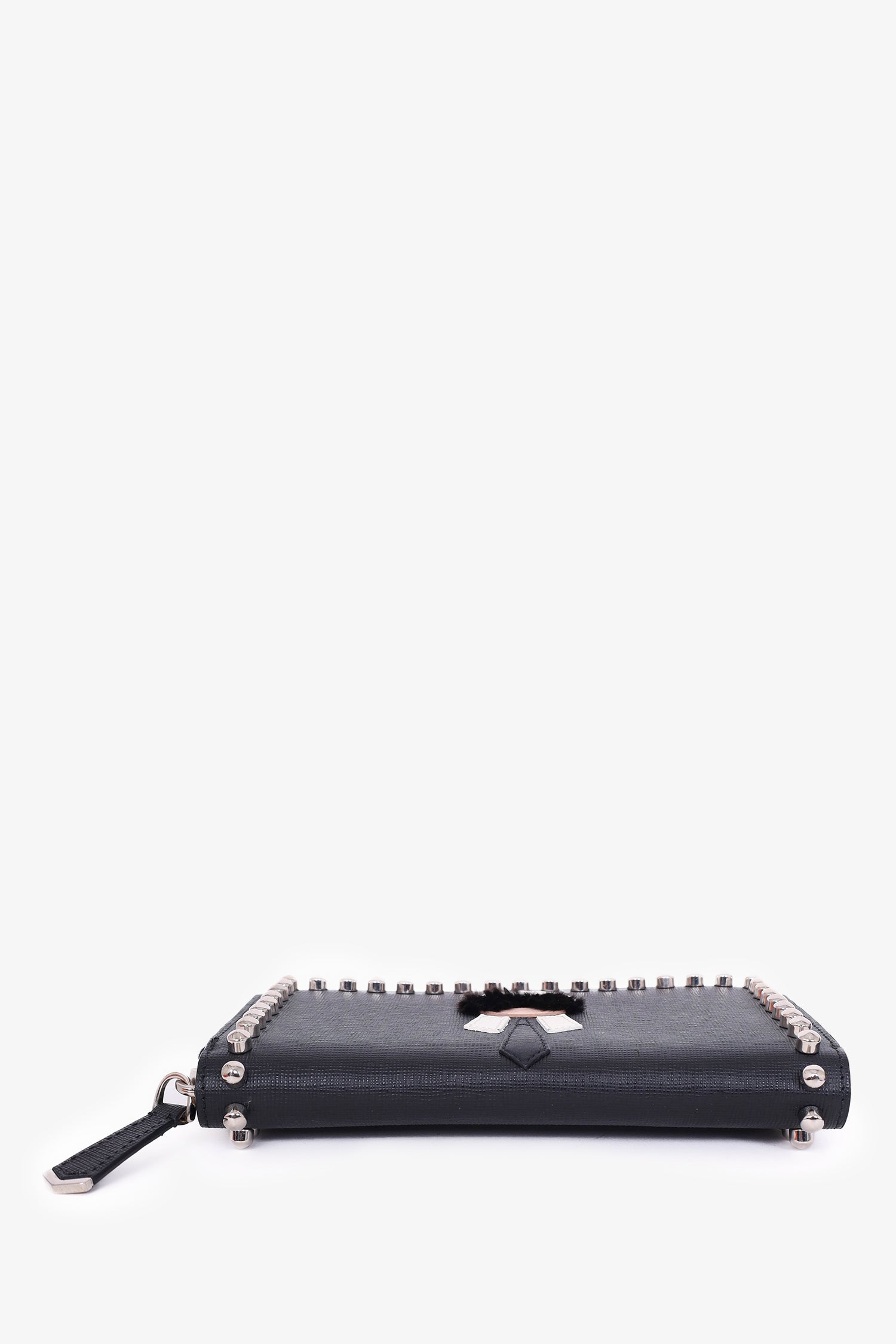 Fendi Black Leather Studded Karlito Continental Wallet
