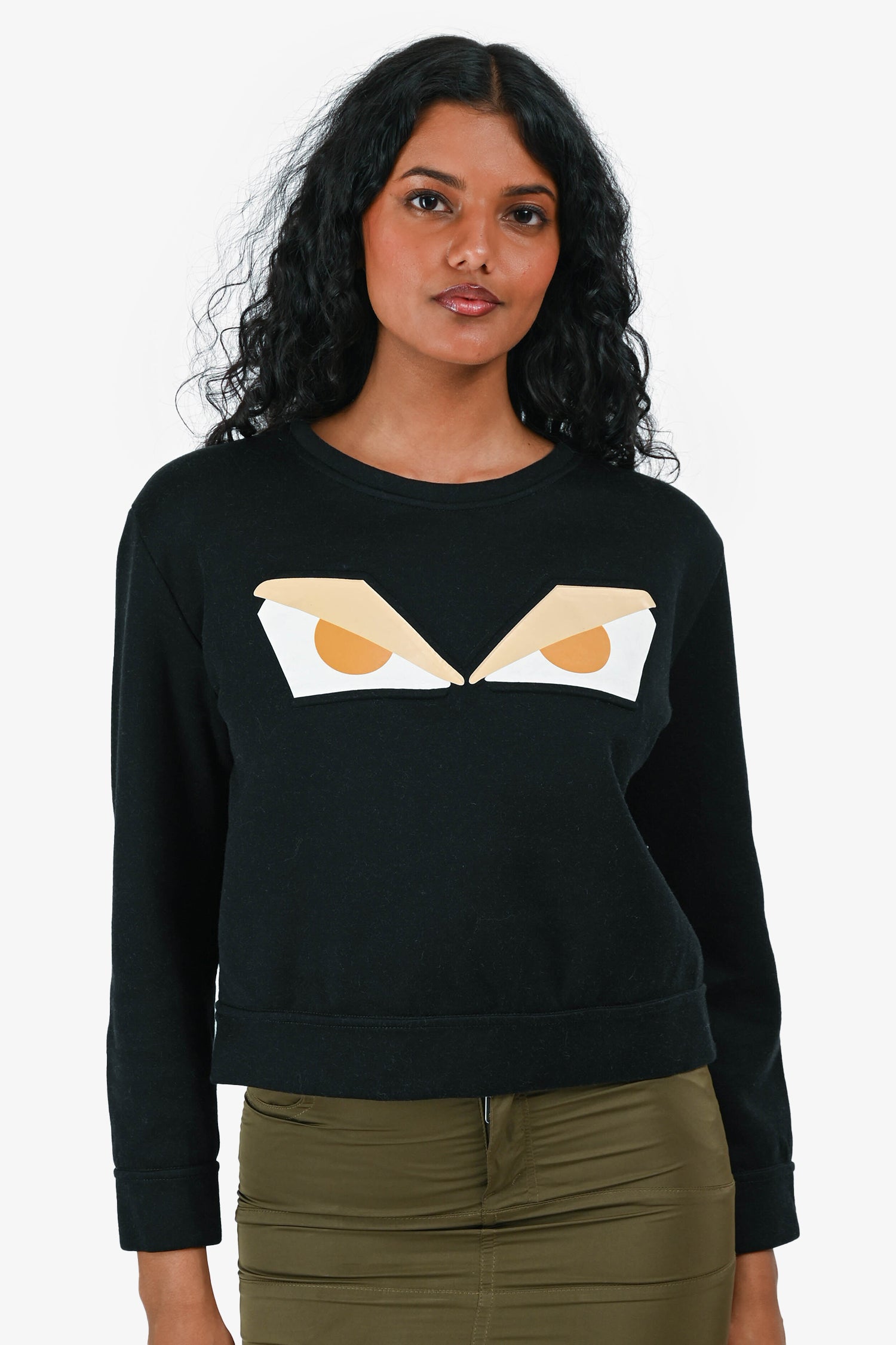Refresh availabilityFendi Black Monster Cropped Sweatshirt. Crew neckline. Long sleeves. Tonal stitching.