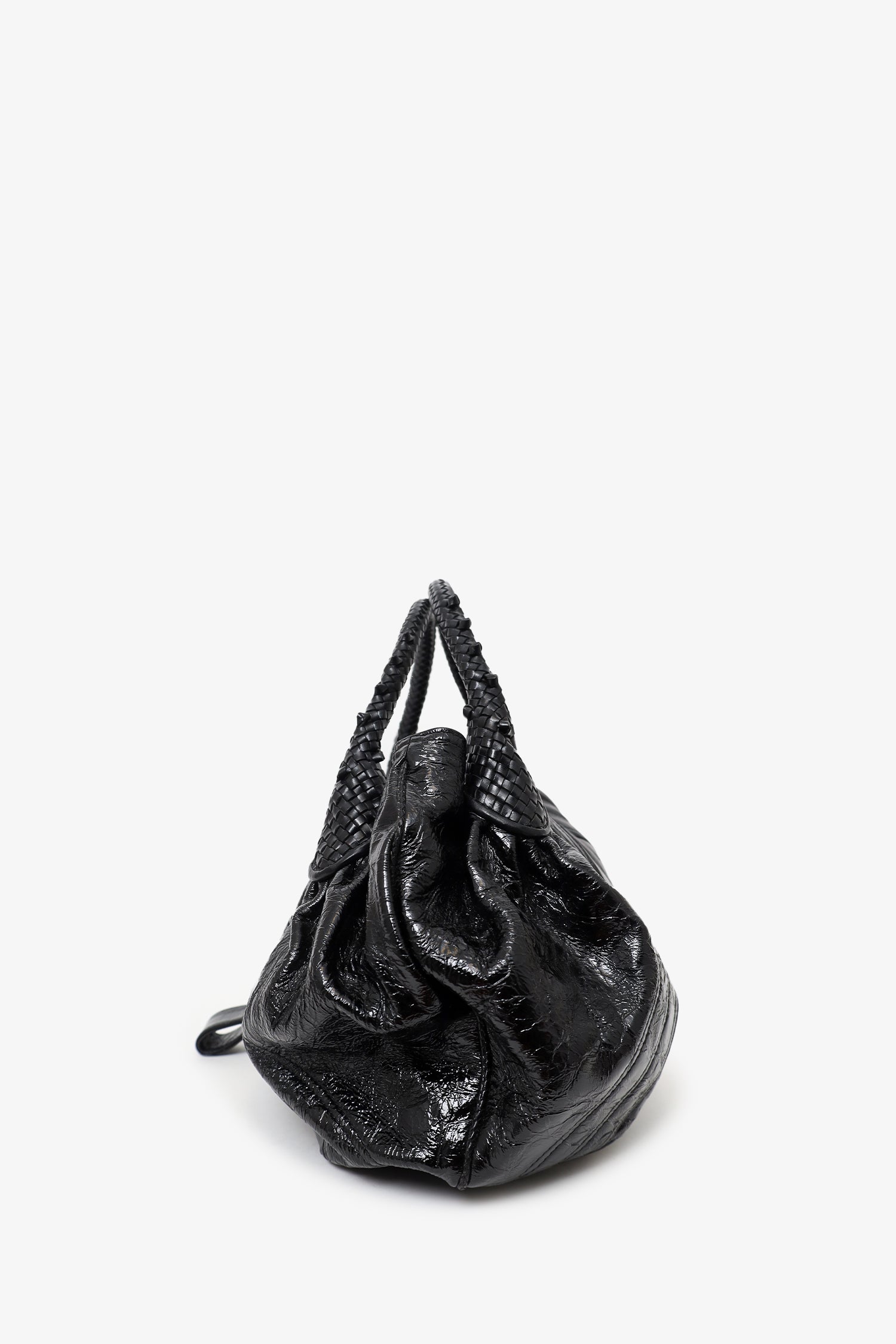 Fendi Black Patent Pattern Leather Vintage Woven Spy Bag