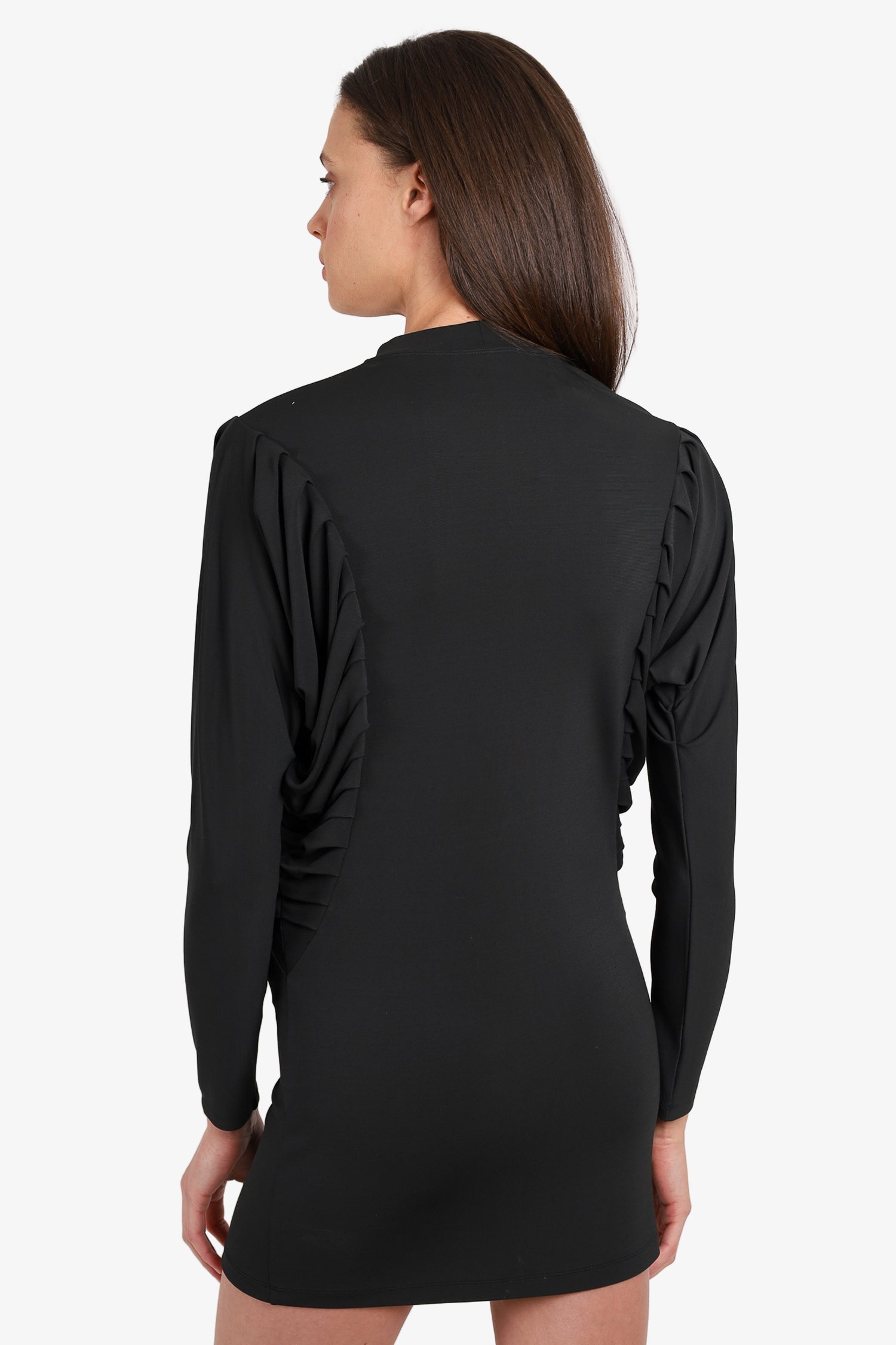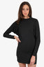 Fendi Black Ruched Long-sleeve Mini Dress. Pull-over. Mock. neckline. Tonal stitching.