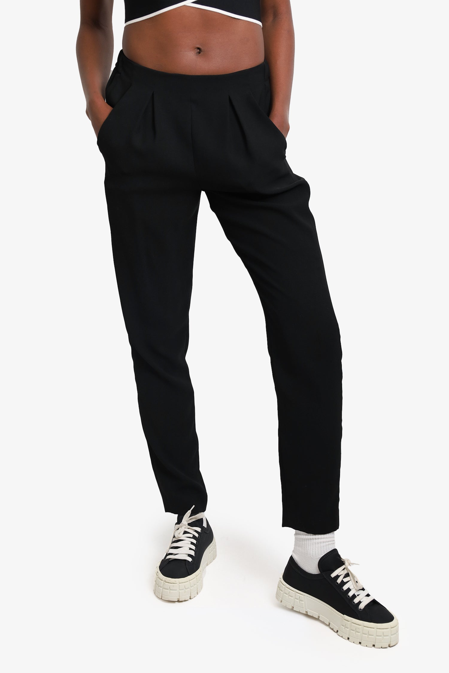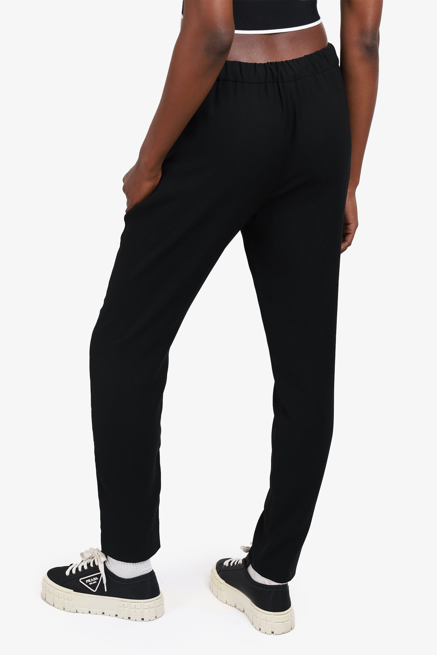 Refresh availabilityFendi Black Straight Leg Trousers. Pull on. Cinched waistline on back. 2 front slip pockets. Unlined. Tonal stitching.