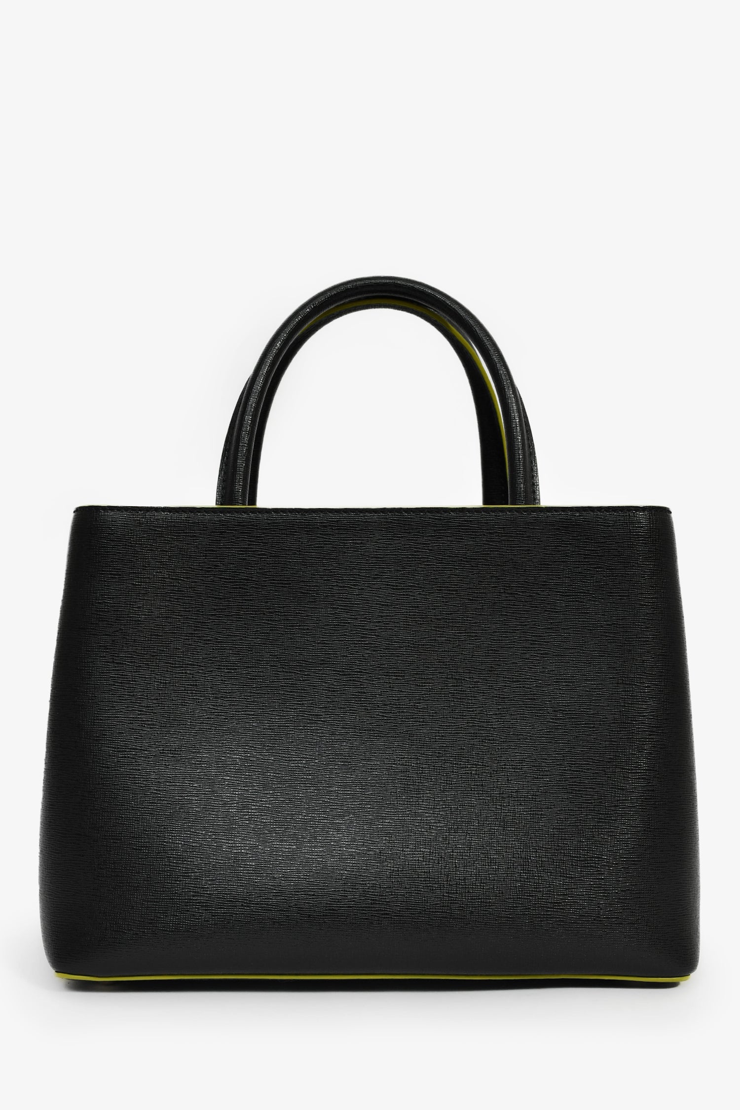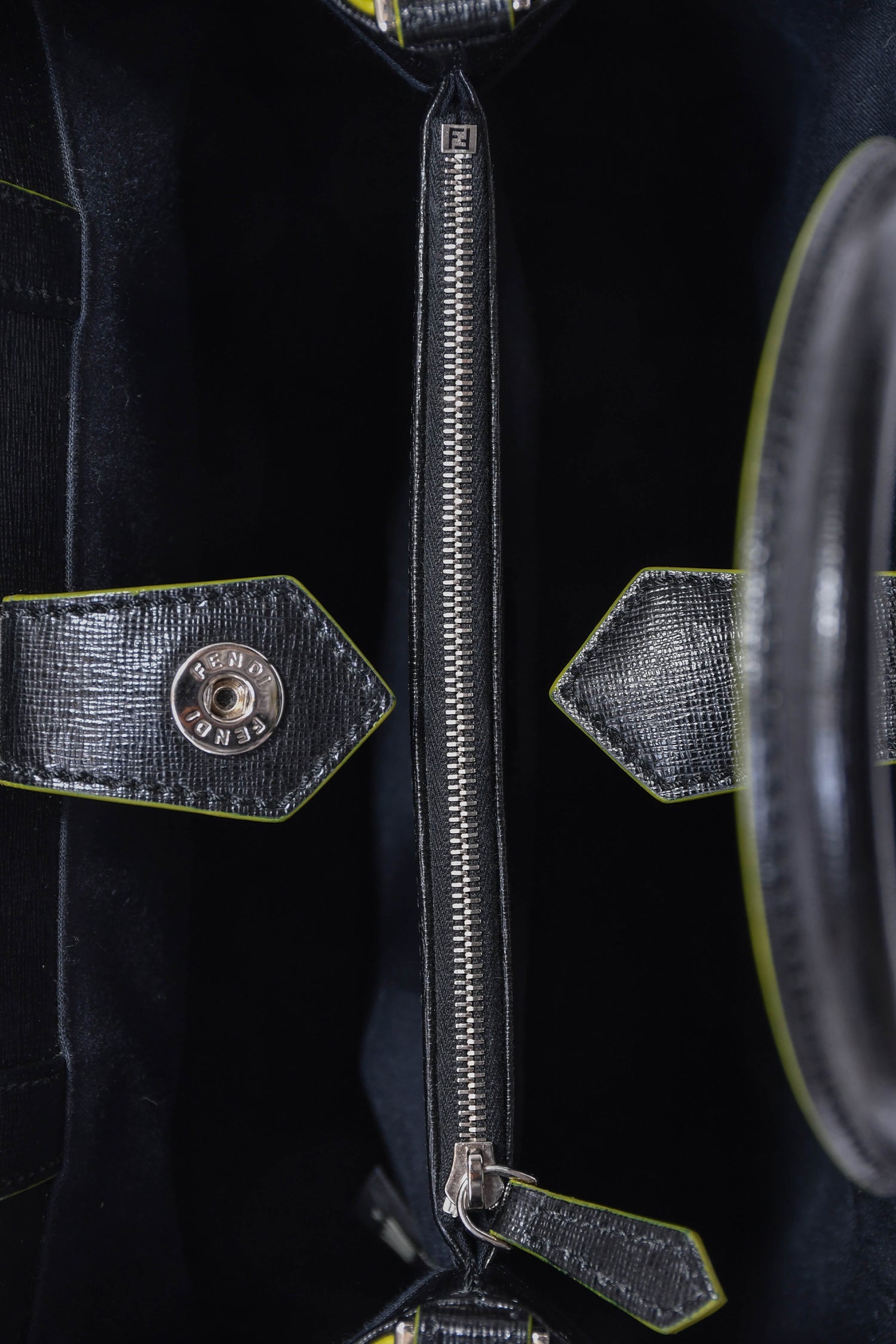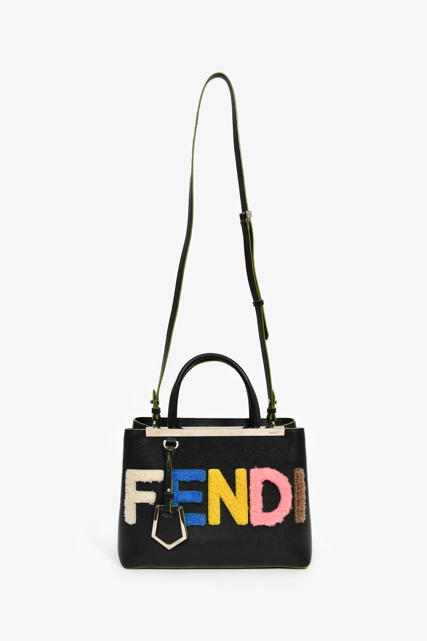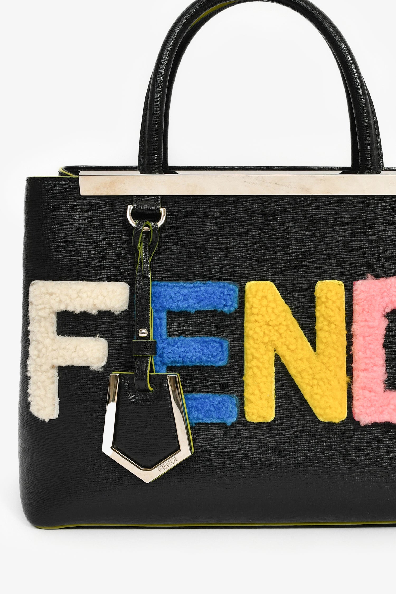Refresh availabilityFendi Black/Multi Shearling Petite '2Jours' Tote. Open top with concealed interior snap closures. Dual rolled handles. Adjustable leather strap. 2 interior and 1 zip compartment. Silver-tone hardware. Tonal stitching.