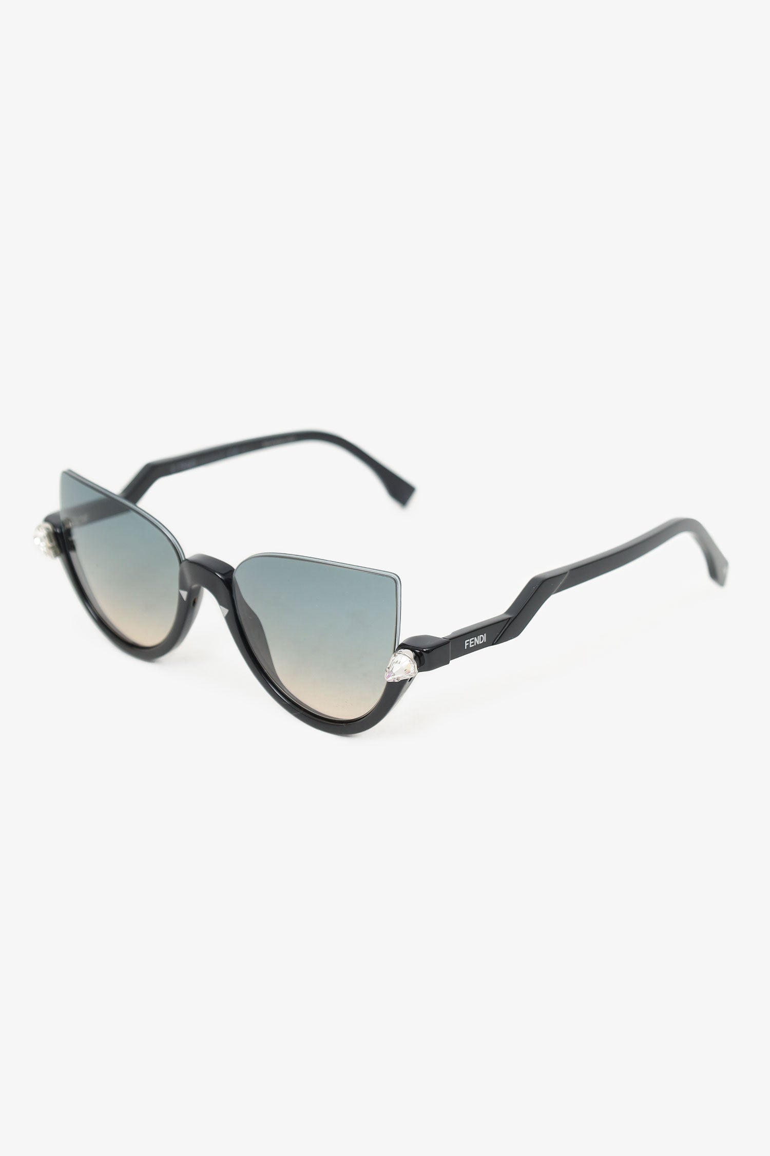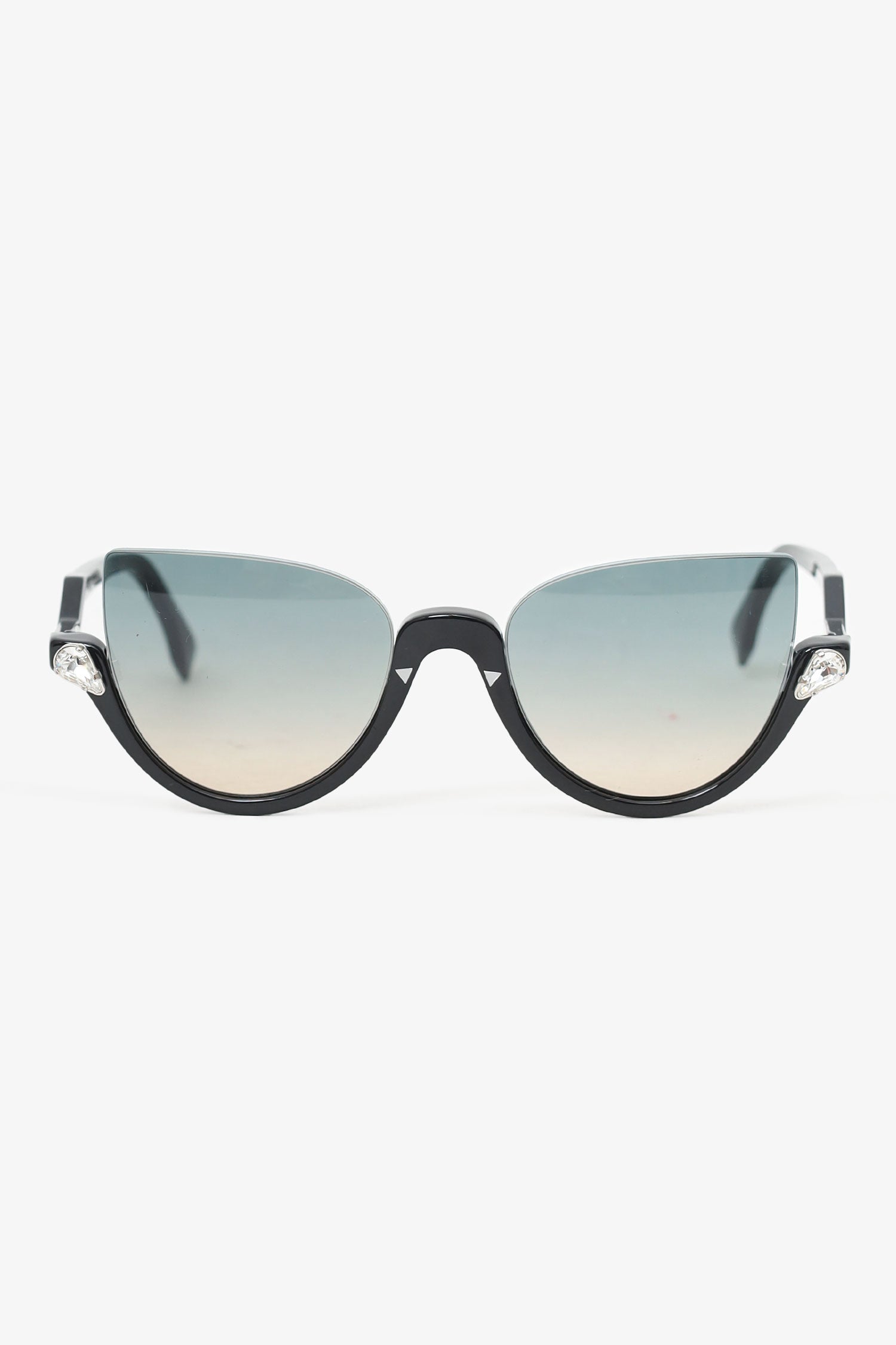 Refresh availabilityFendi Blue Cat-Eye Crystal Embellished Sunglasses. Built-in nose pads. Partially frameless. Silver-tone hardware.