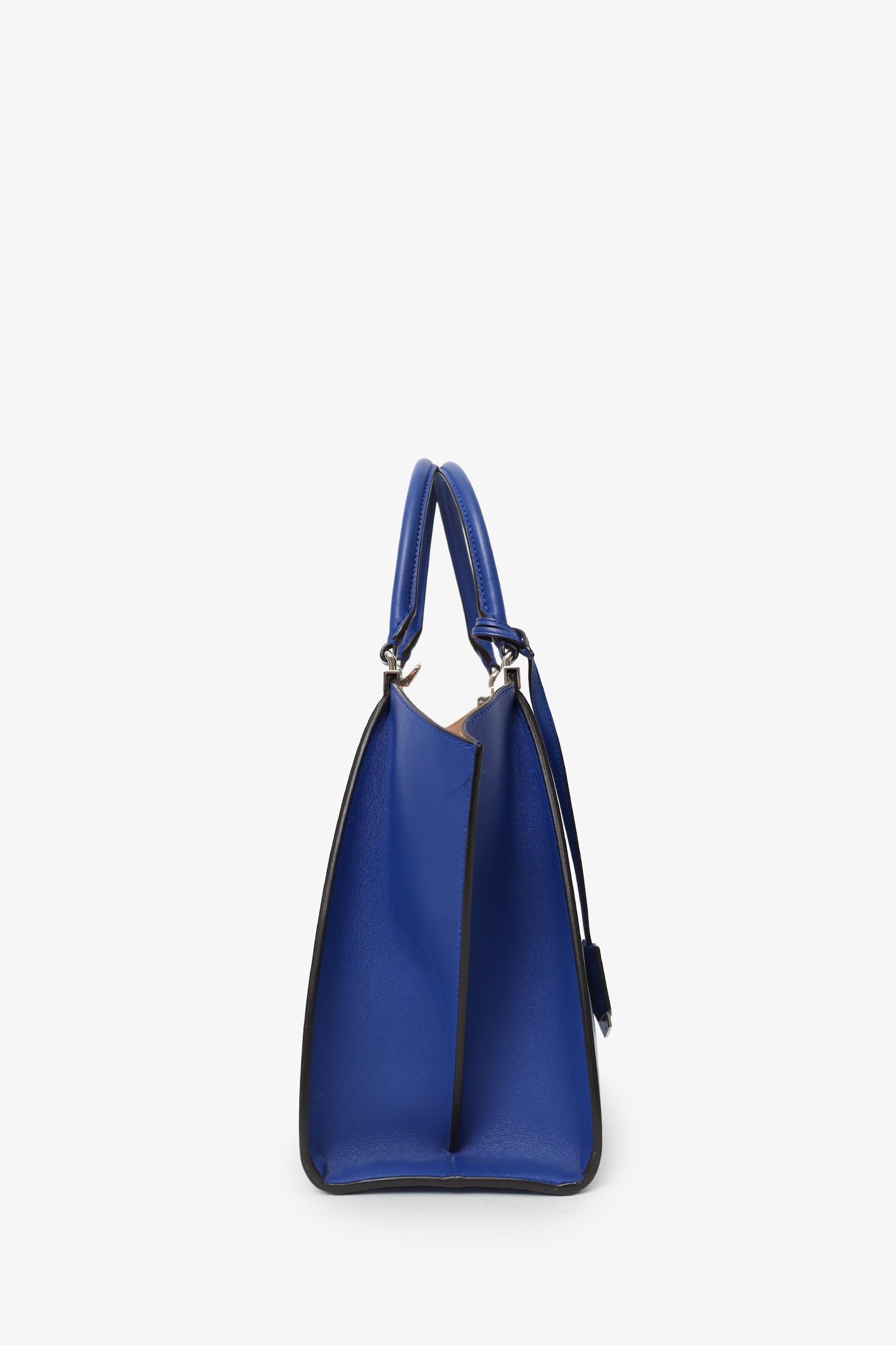 Refresh availabilityFendi Blue Leather 3Jours Tote Bag With Strap. Interior zip-up closure. Twin top handles. Removable shoulder strap with clasp closures. Protective base studs. Leather-lined interior. Removable bag tag. Silver-tone hardware. Tonal stitching.
