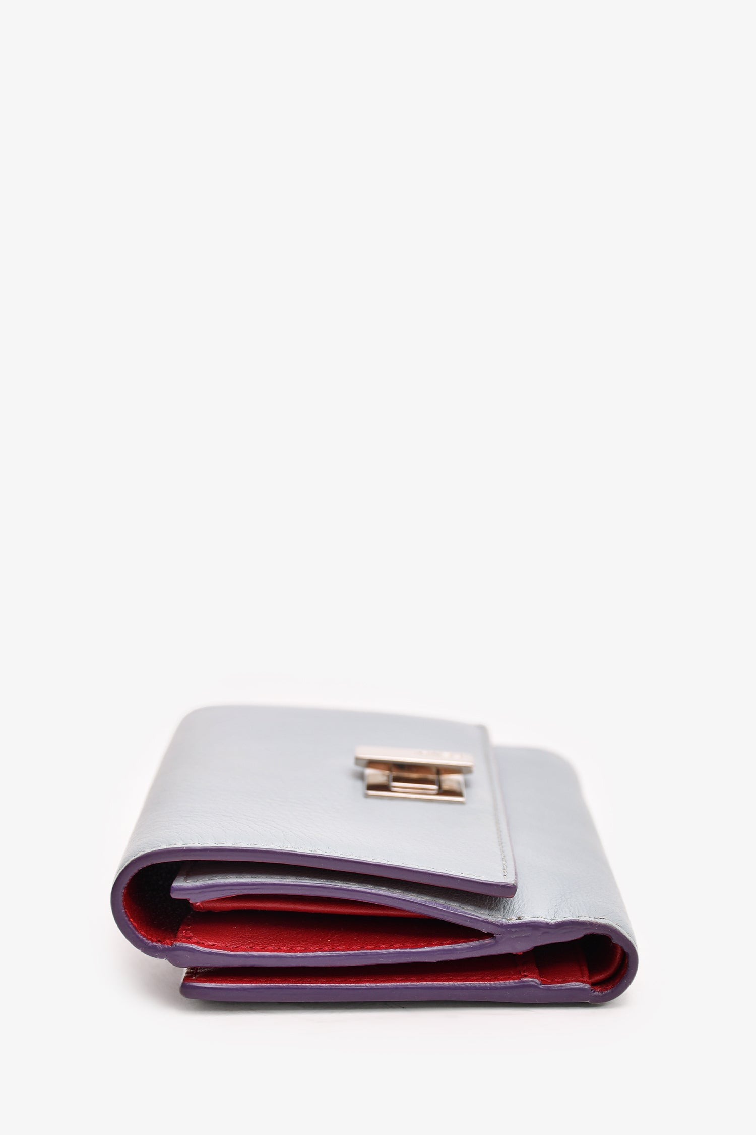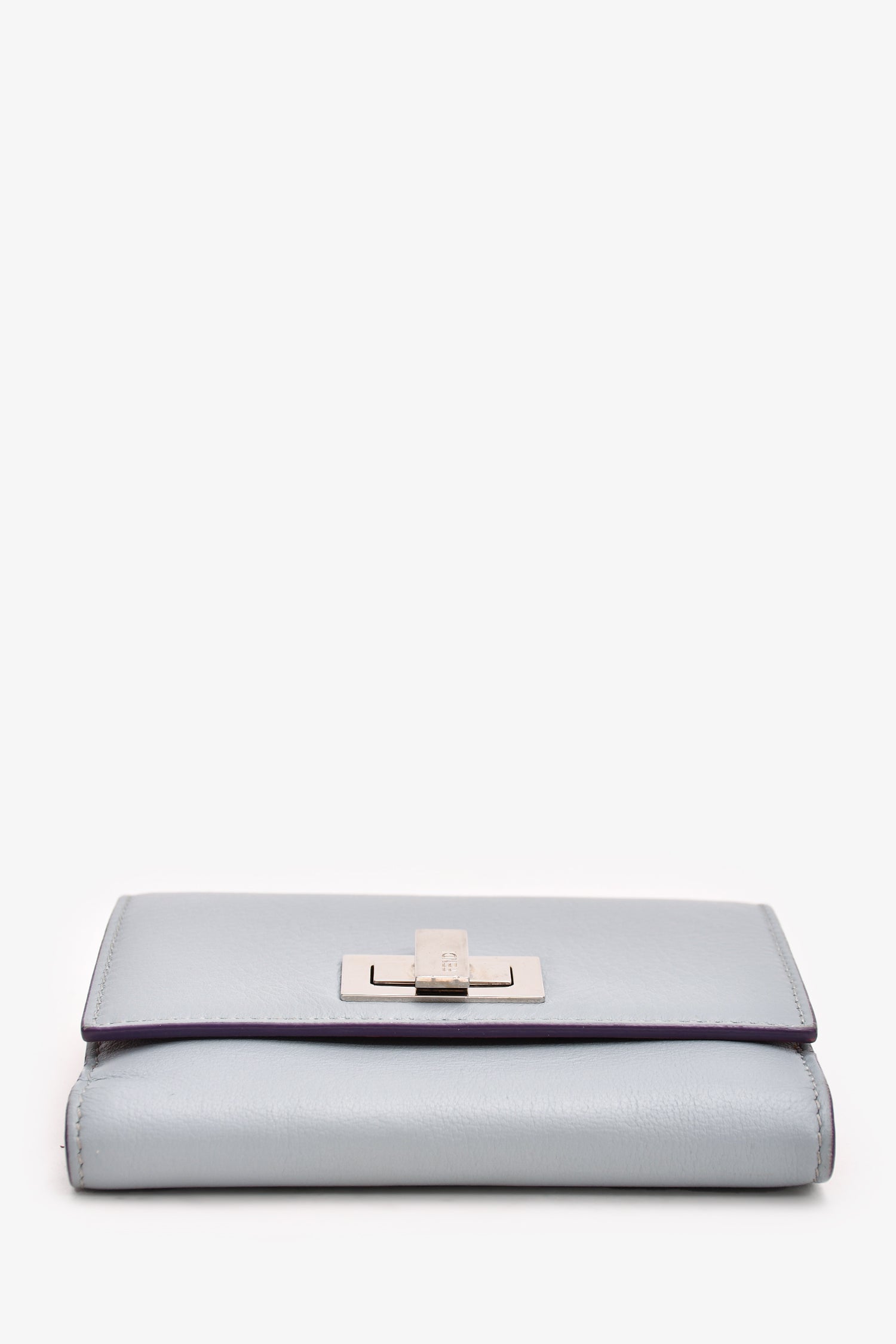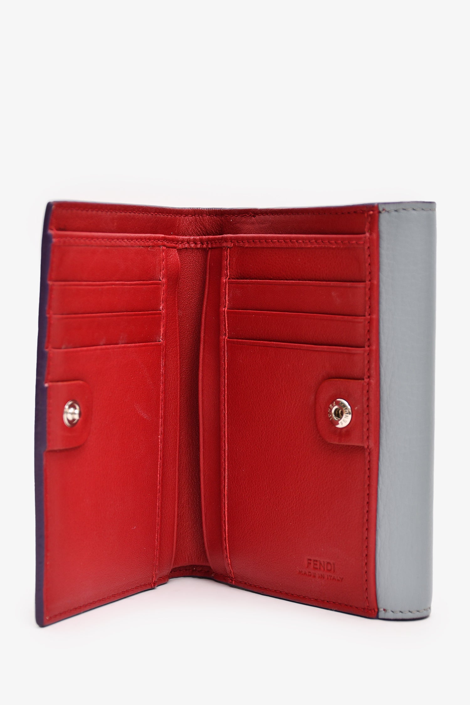 Fendi Blue Leather Peekaboo Wallet With Red Interior