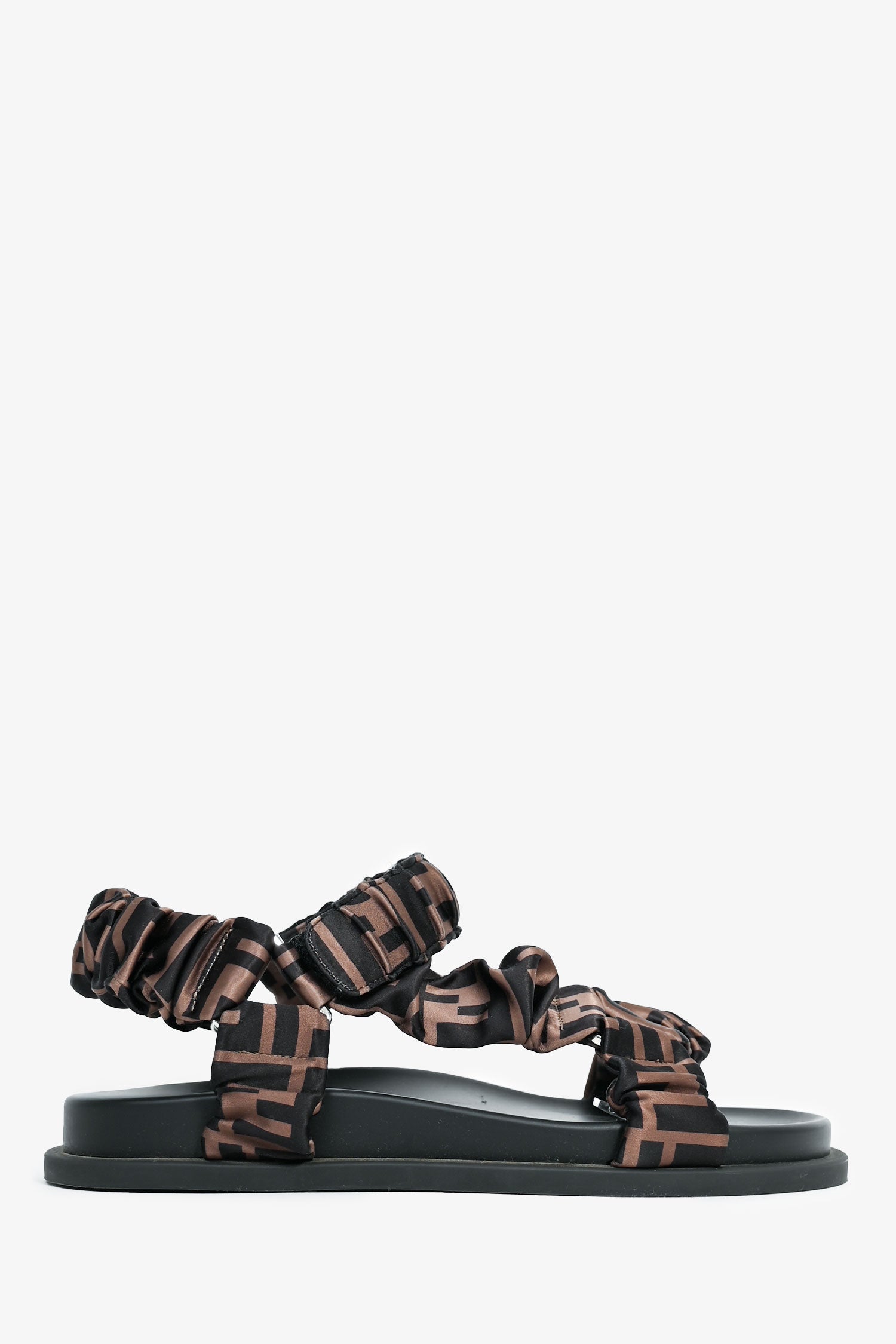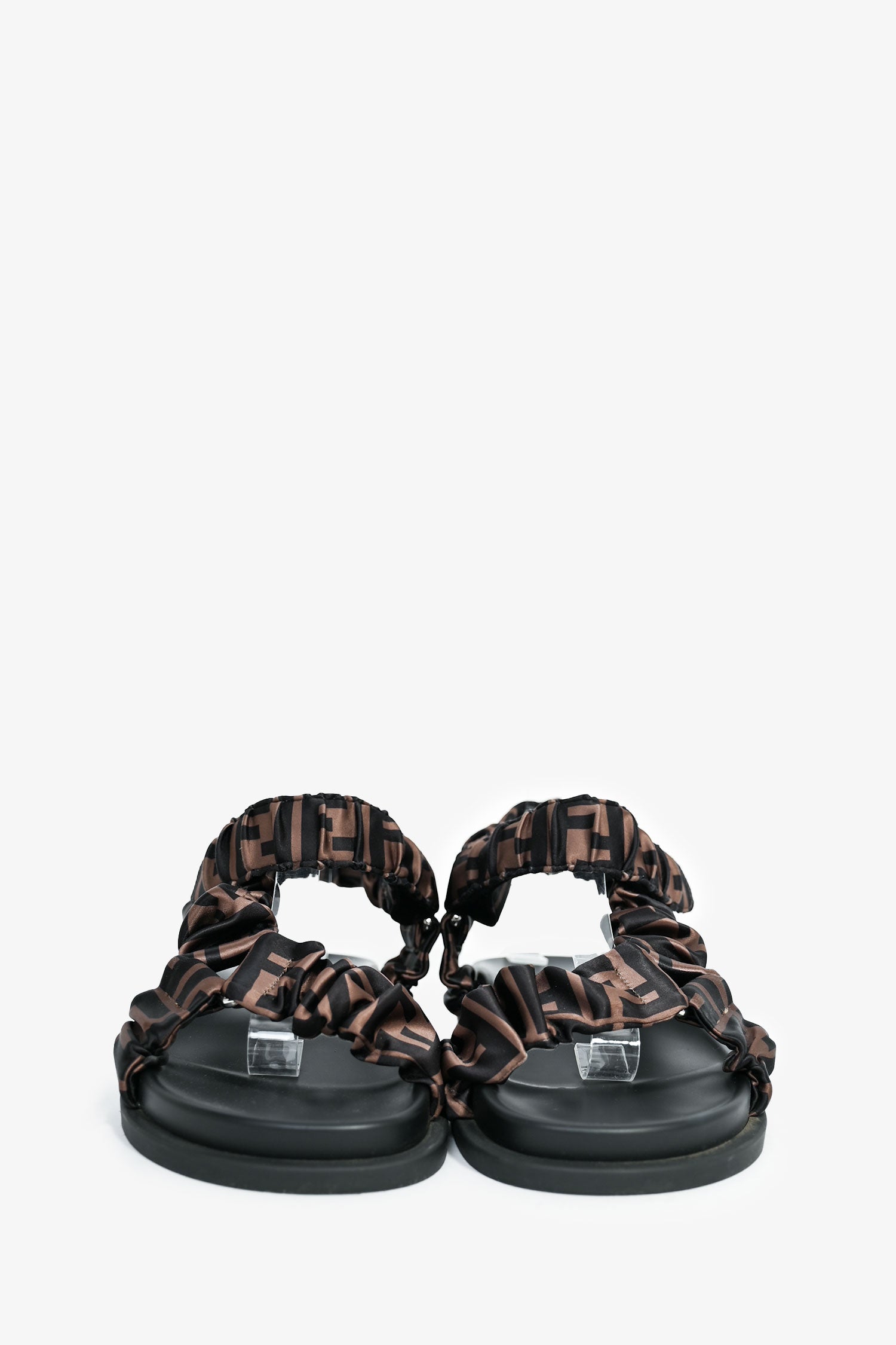 Fendi Brown/Black Zucca Satin Feel Sandals Size 37.5