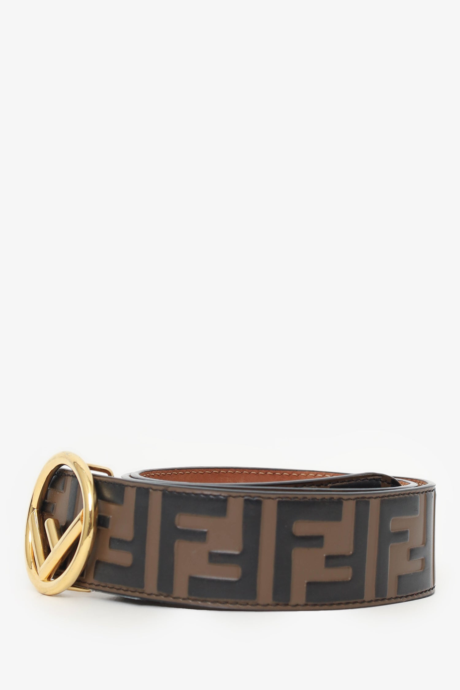 Refresh availabilityFendi Brown Leather FF Embossed Belt. Belt buckle closure. Gold-tone hardware. Tonal stitching.