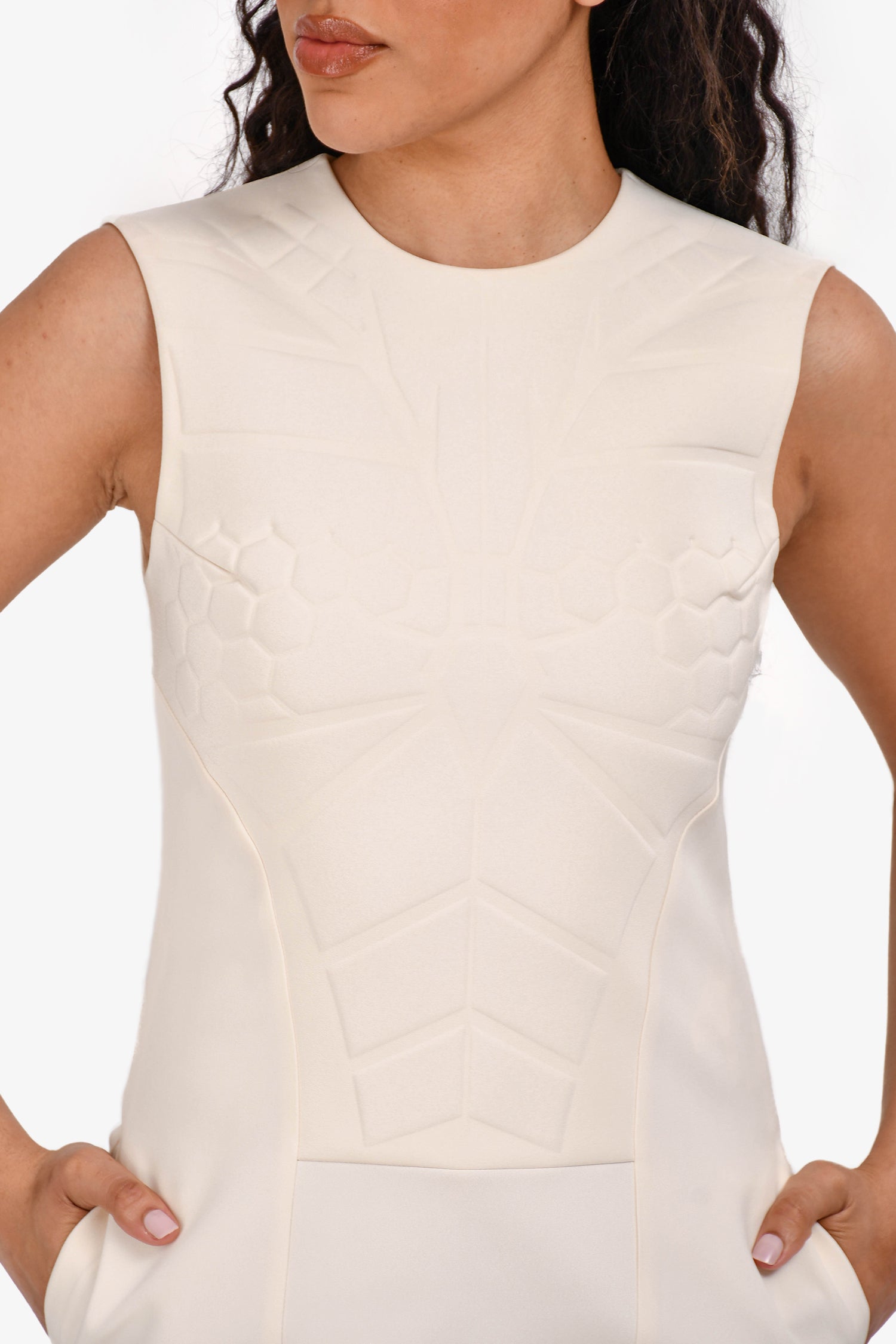 Refresh availabilityFendi Cream Sleeveless Midi Dress. Crew neckline. Back zip closure. Side slip pockets. Fully lined. Tonal stitching.