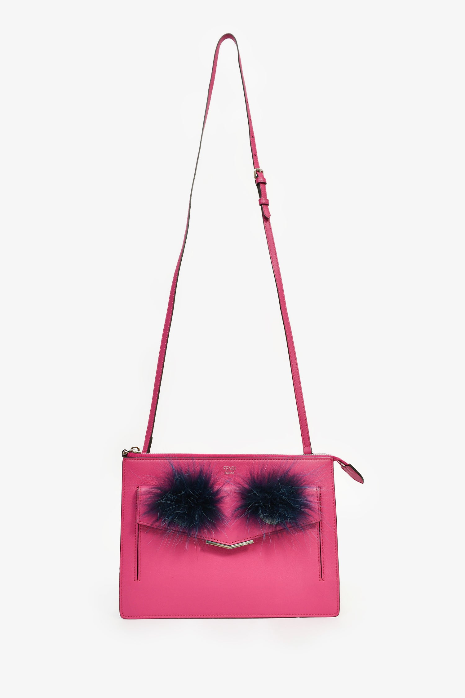 Refresh availabilityFendi Fuchsia Monster Feather Crossbody Bag. Top zipper closure. Front exterior fold-over flap pocket with snap button closure. Detachable and adjustable strap. Tonal textile lining. Silver-tone hardware. Tonal stitching.