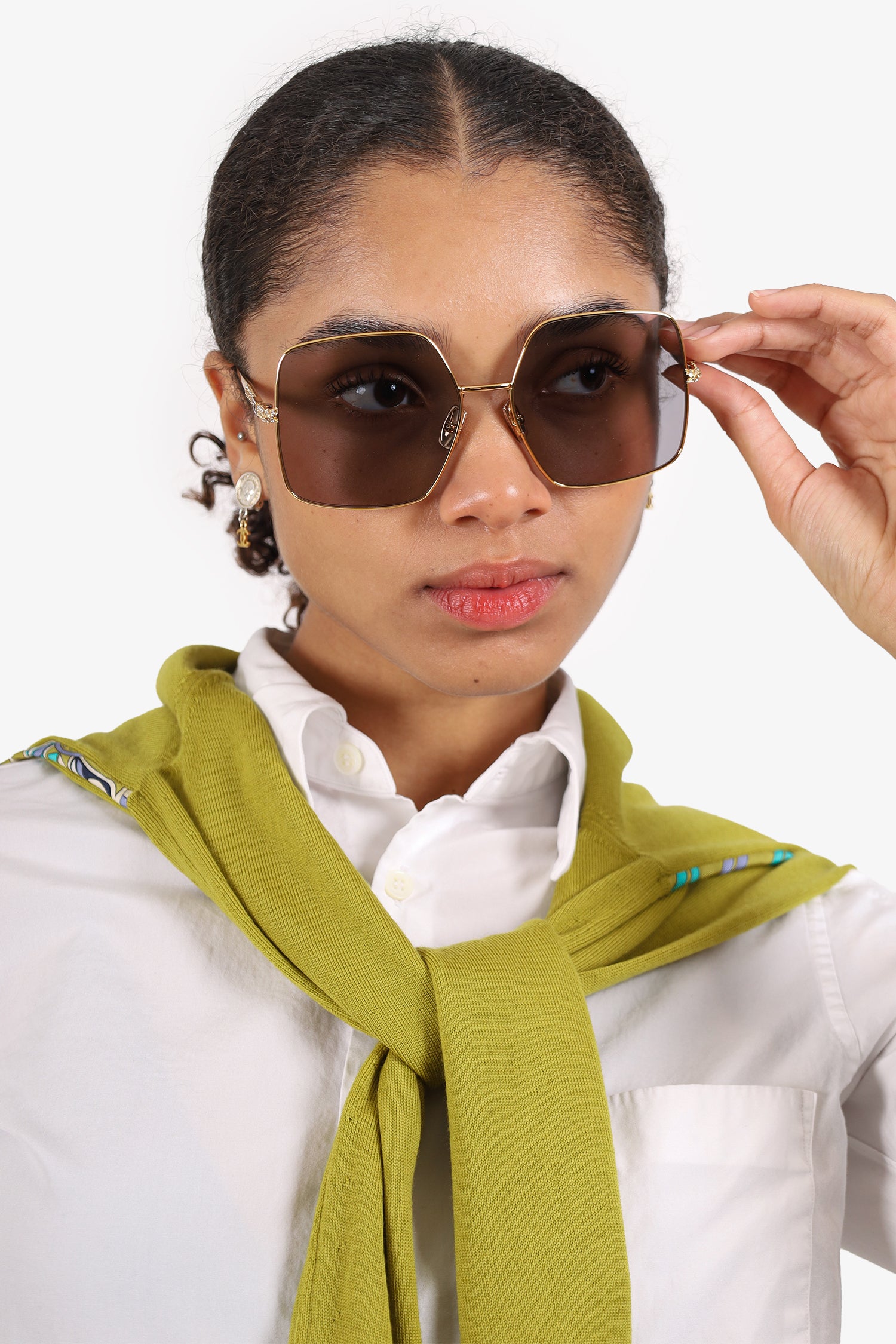 Refresh availabilityFendi Gold Frame Crystal Baguette Square Sunglasses. Adjustable nose pads. Gold-tone hardware.