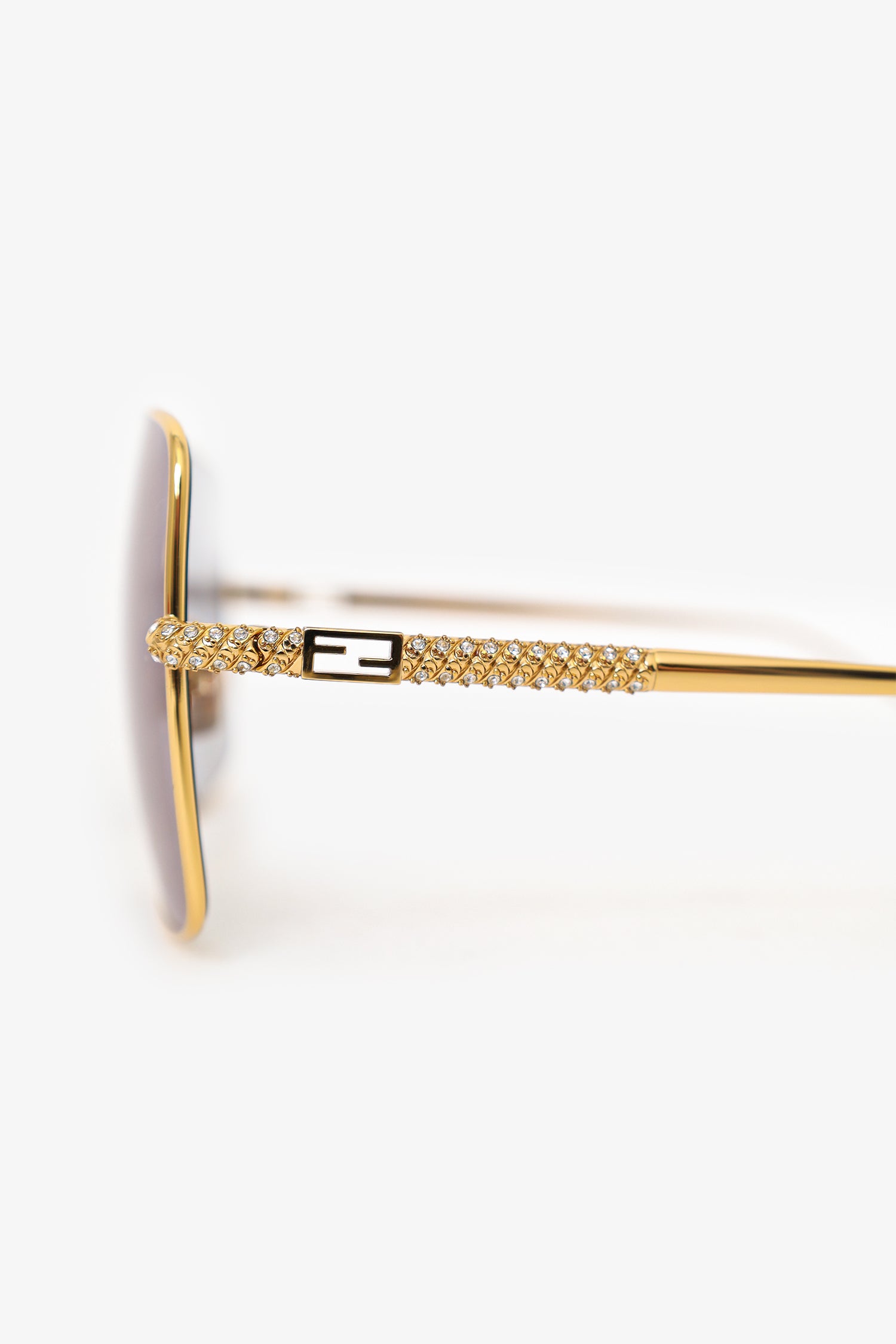 Fendi Gold Frame Crystal Baguette Square Sunglasses