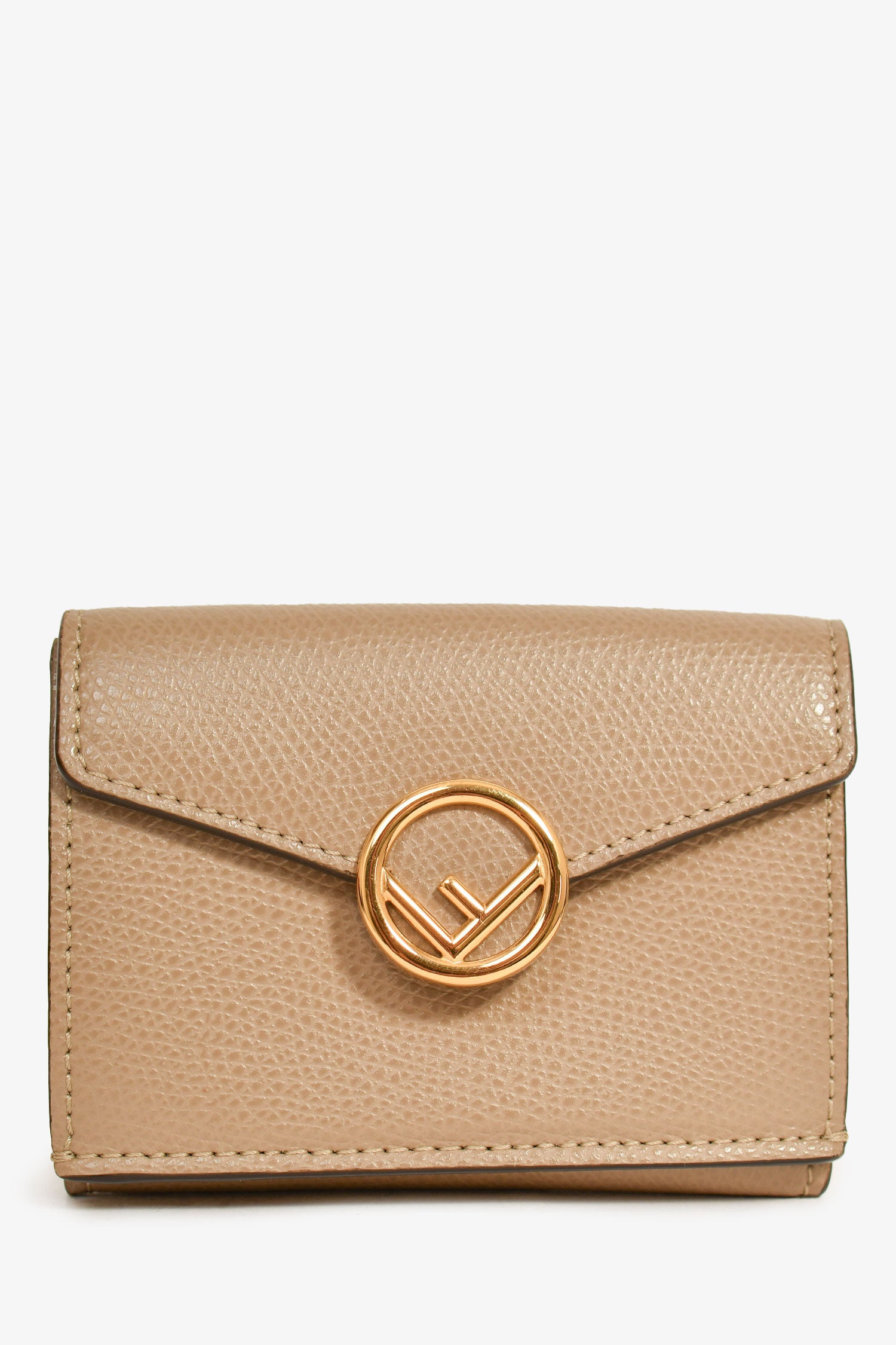 Refresh availabilityFendi Grey Leather F Logo Wallet. Tri-fold opening. Gold-tone hardware. Single pocket and bill compartment. 3 card slots. Tonal stitching.