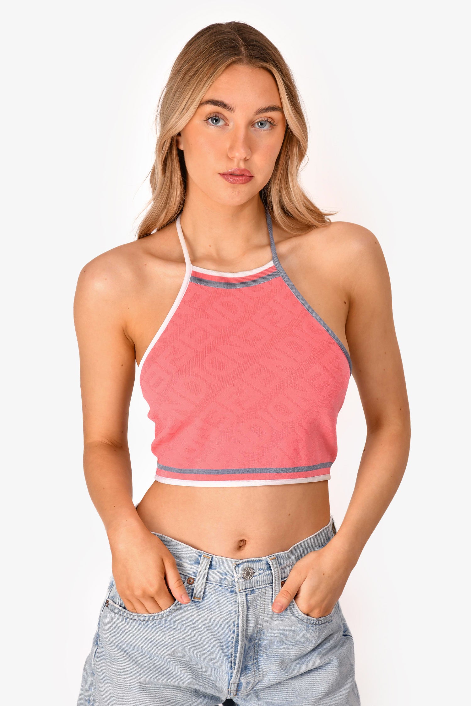 Refresh availabilityFendi Pink Halter Tank Top. Rear tie closure. Tonal stitching.