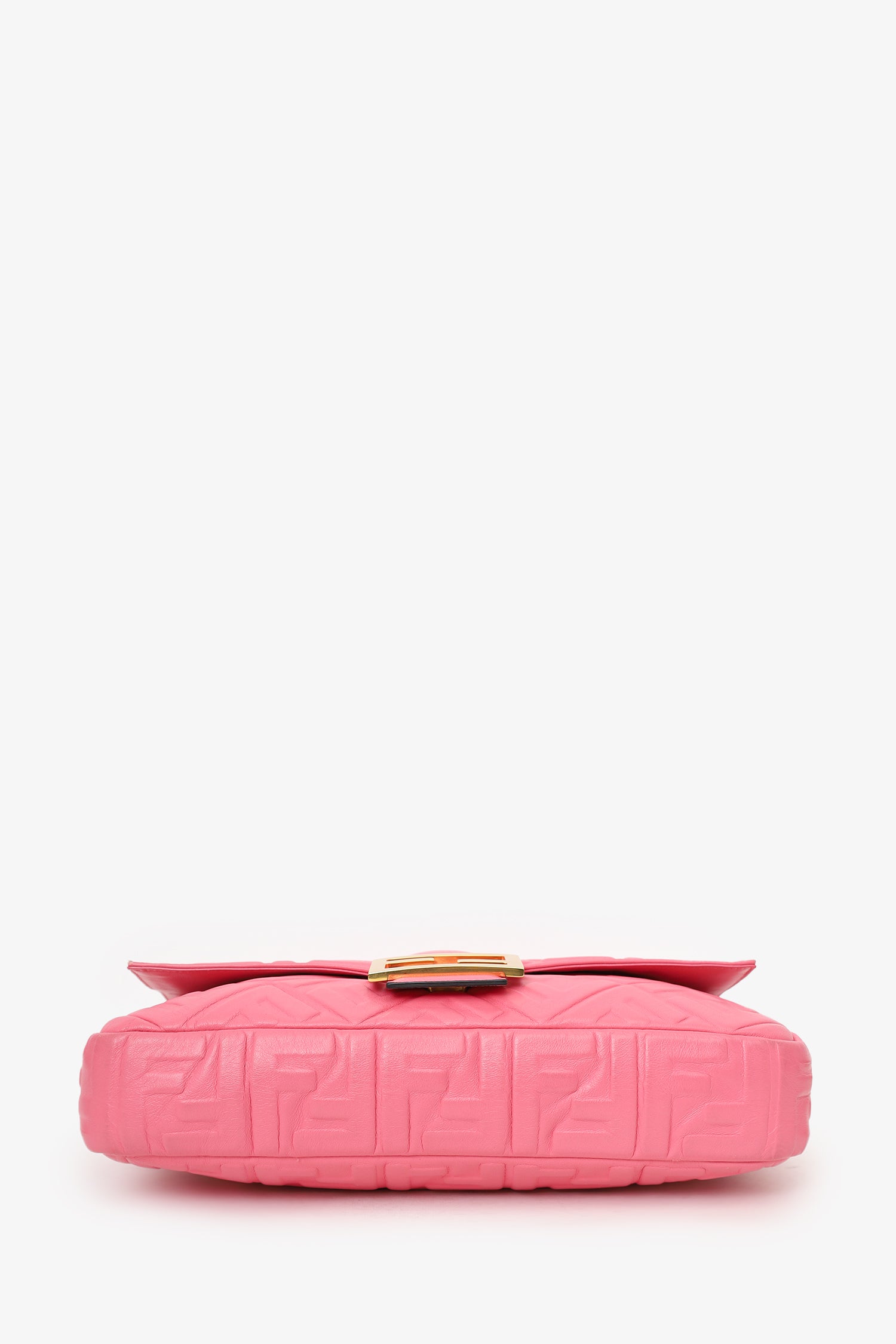 Fendi Pink Leather Nappa FF 1974 Embossed Large Baguette Bag with Strap