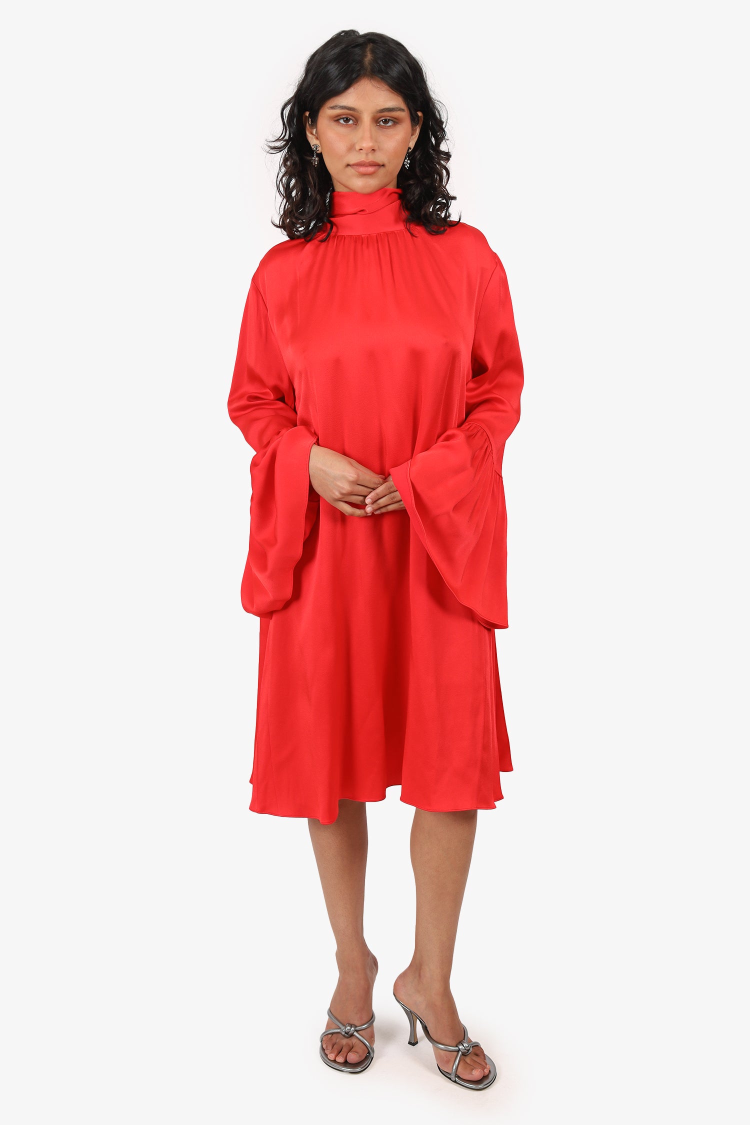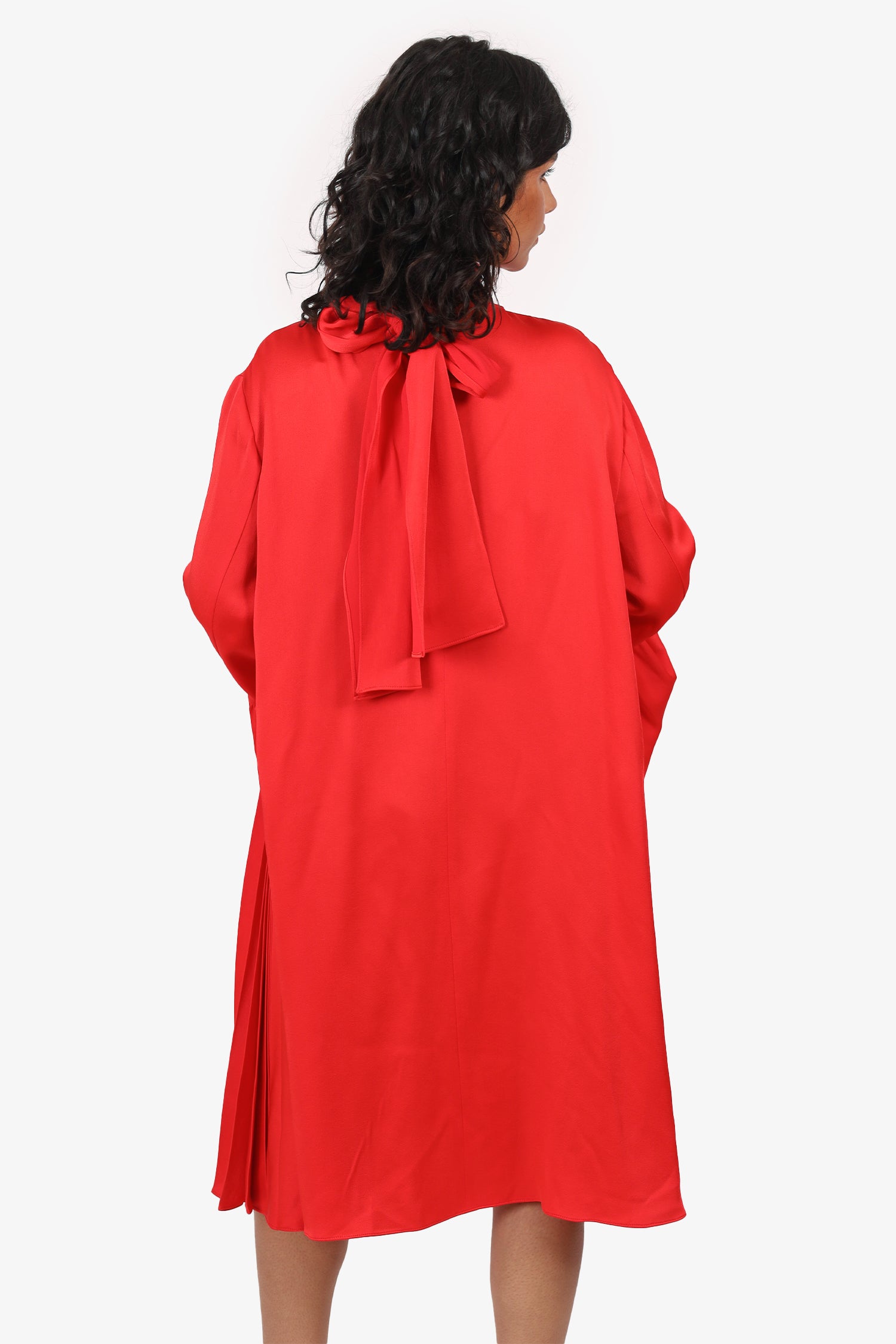 Refresh availabilityFendi Red Mock Neck Pleated Long Sleeve Midi Dress. Slip-on. Mock neckline. Rear keyhole with button-up closure and tie-up closure. Tonal stitching.
