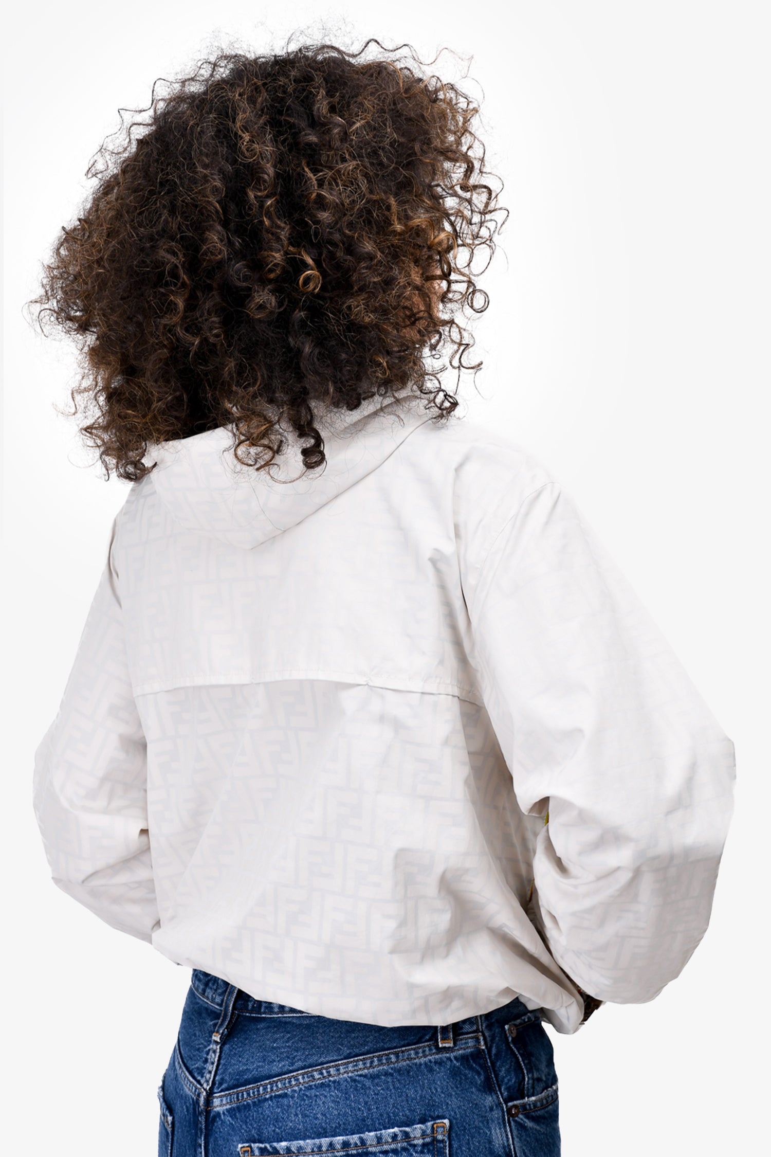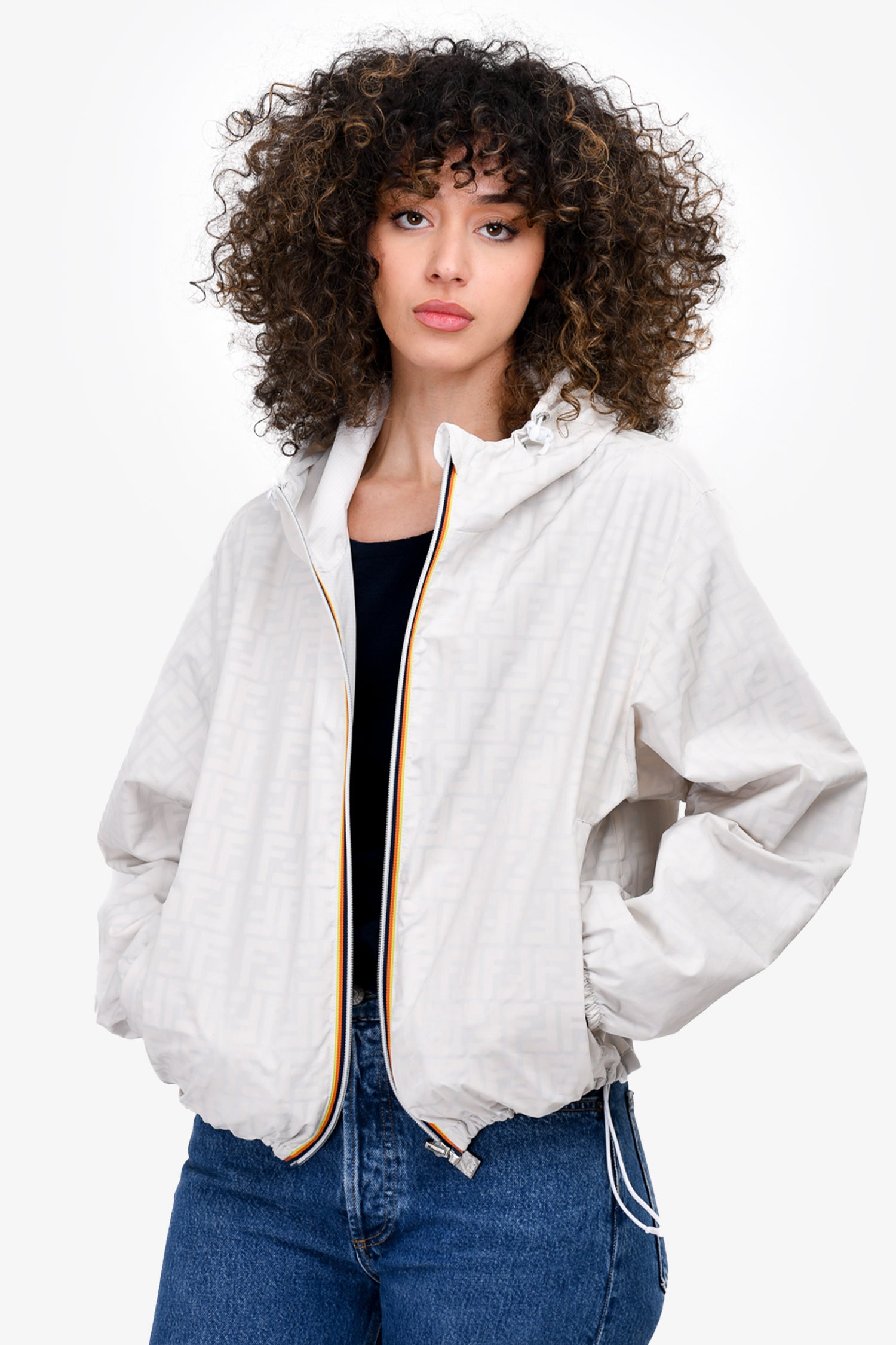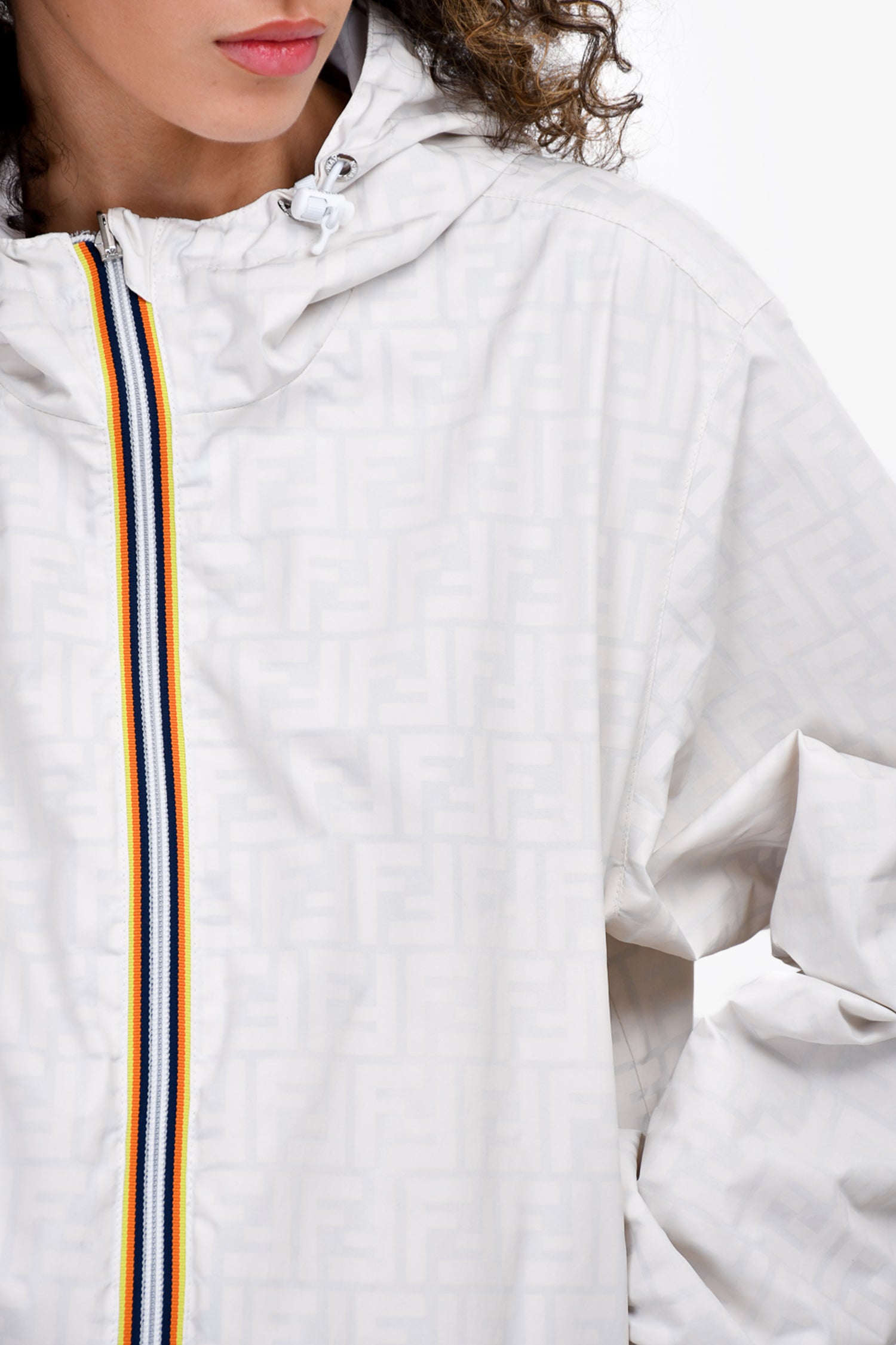 Refresh availabilityFendi White Nylon FF Logo Reversible Windbreaker Jacket. Front zip closure. Front pockets. Elasticized cuffs and hem.