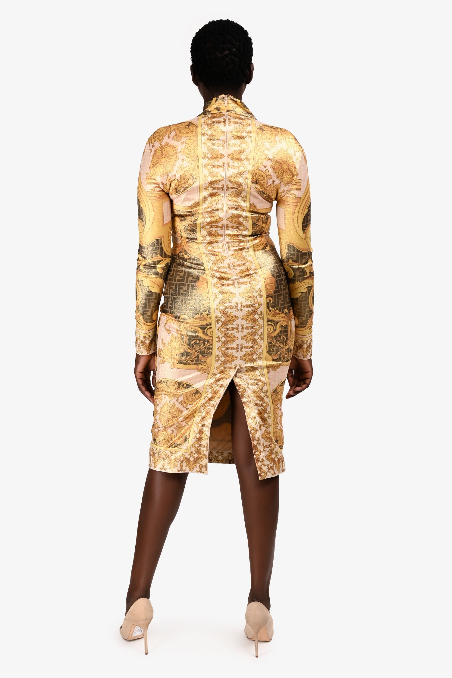 Fendi x Versace 'Fendace' Gold Logo Pattern Midi Dress Dize 40