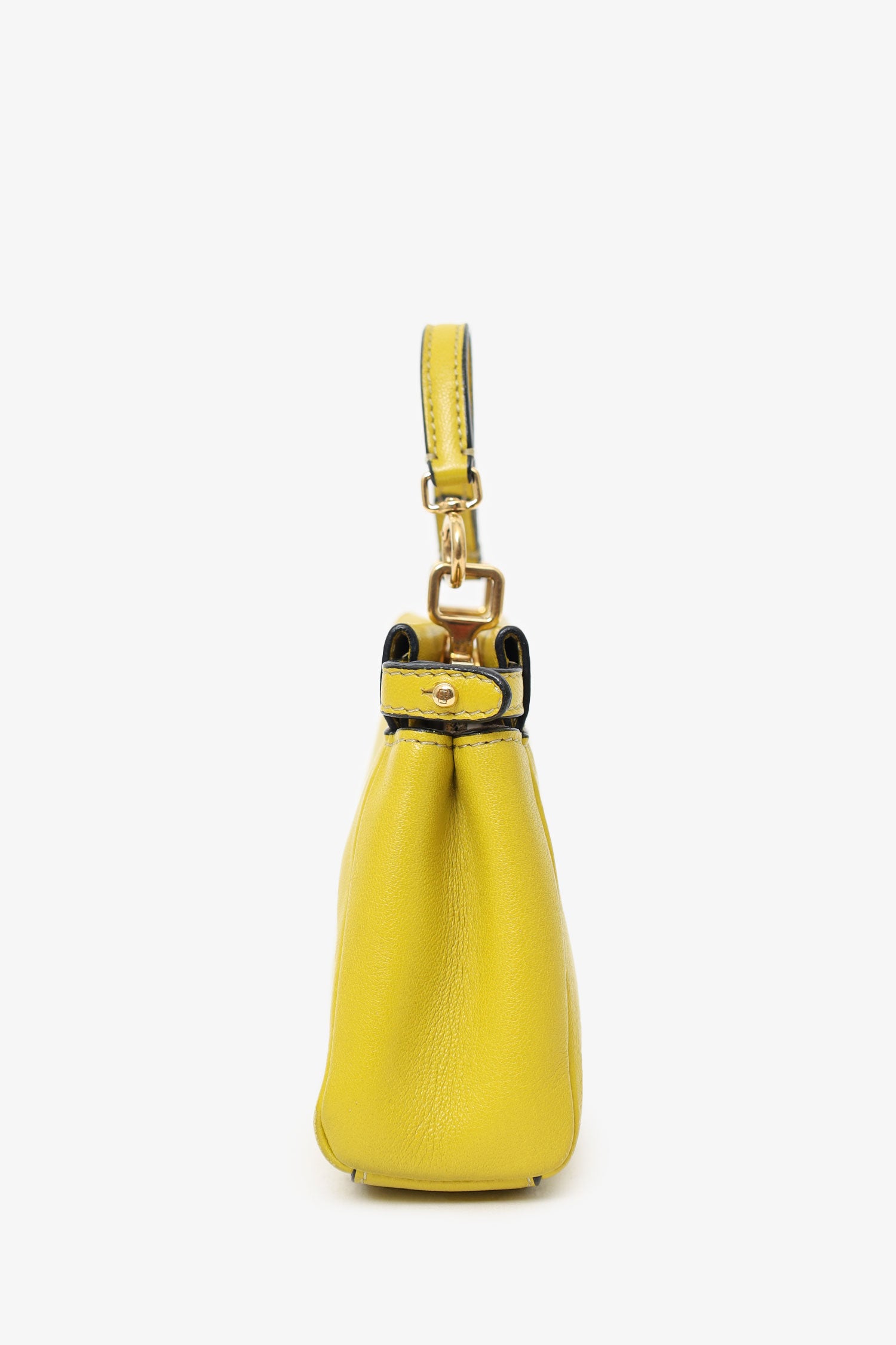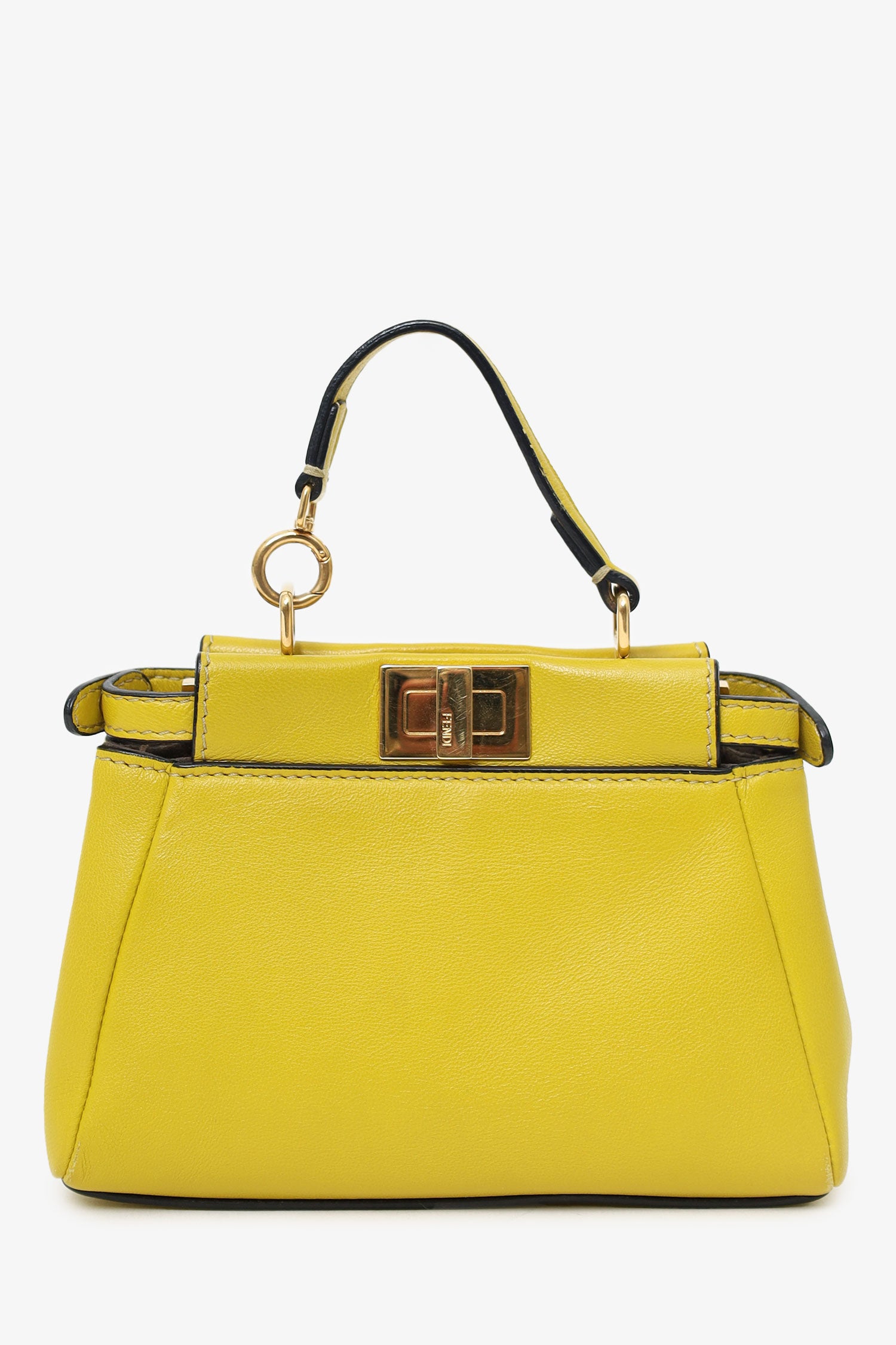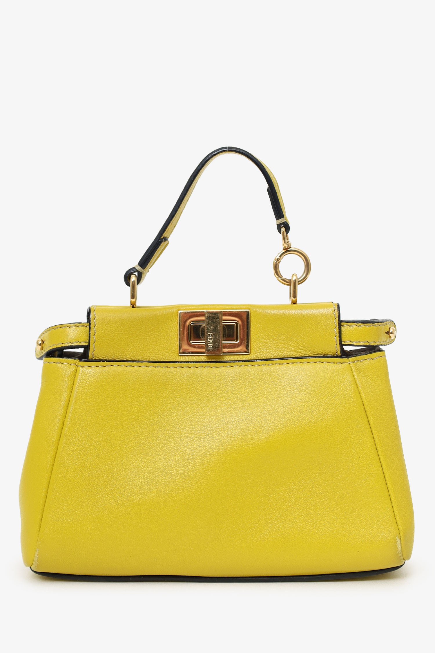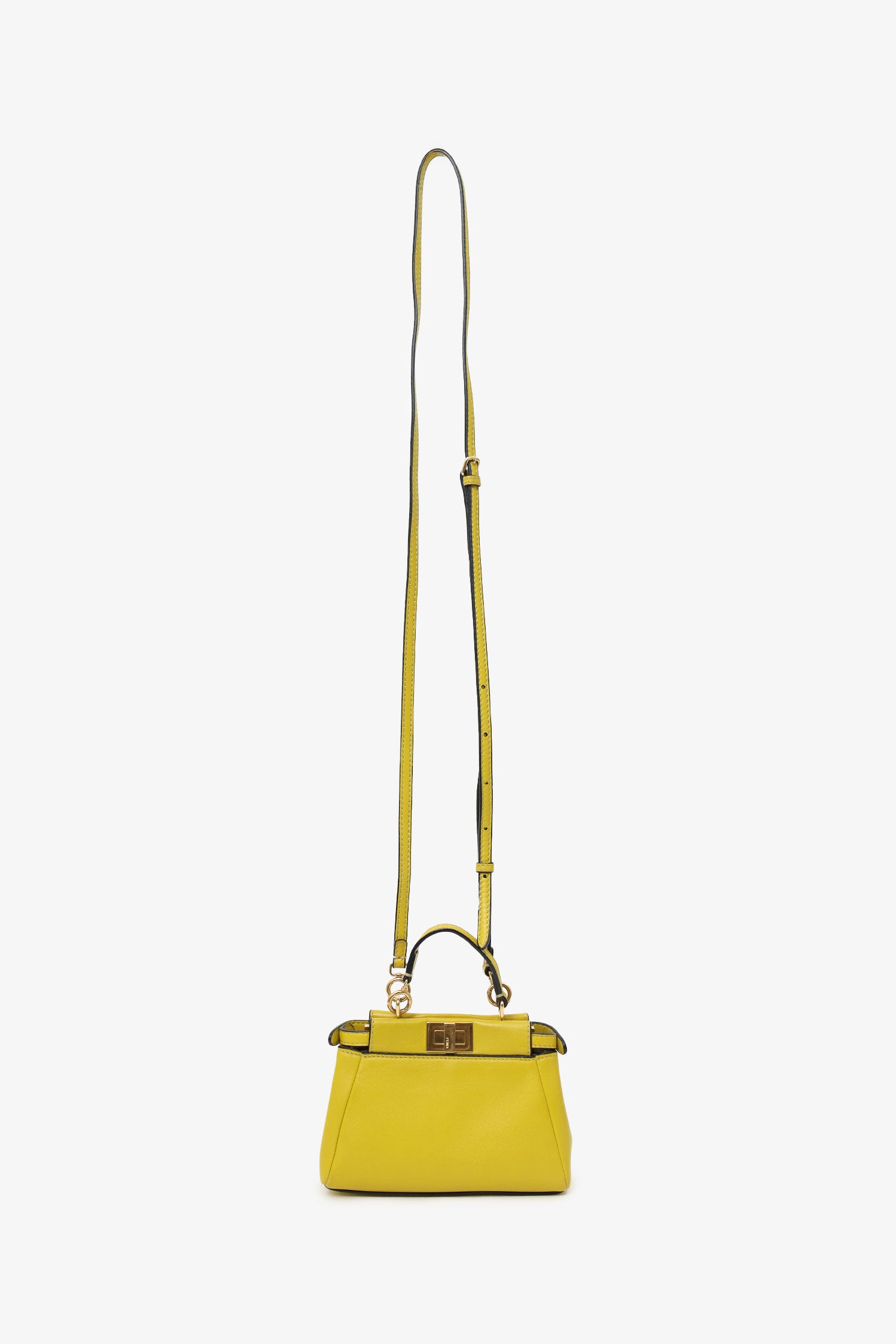 Refresh availabilityFendi Yellow Leather Micro Peekaboo Top Handle Bag with Strap. Snap button closure. Gold-tone hardware. Tonal stitching.