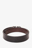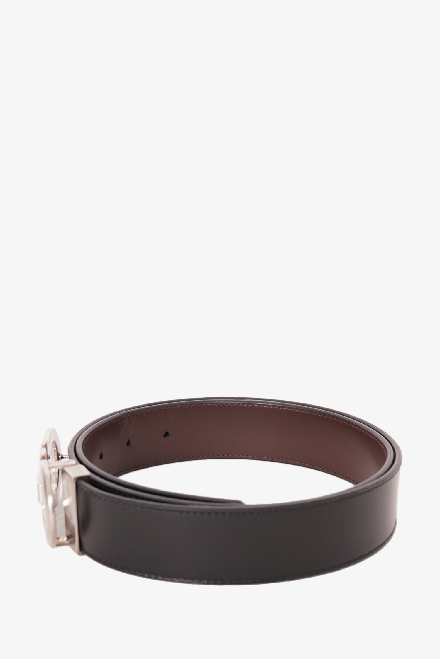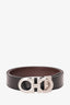 Ferragamo Black/Brown Reversible Leather Silver Gancini Buckle Belt