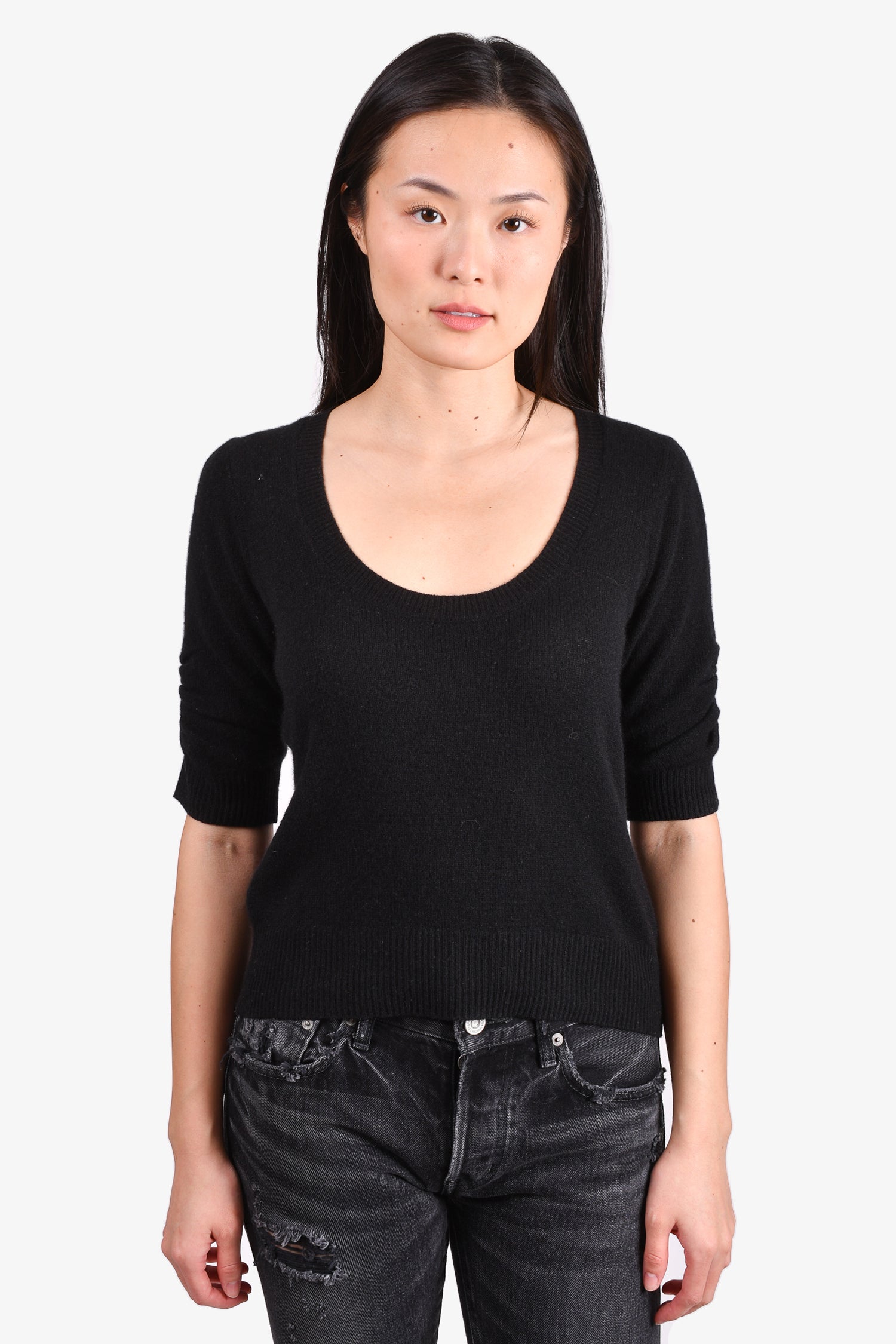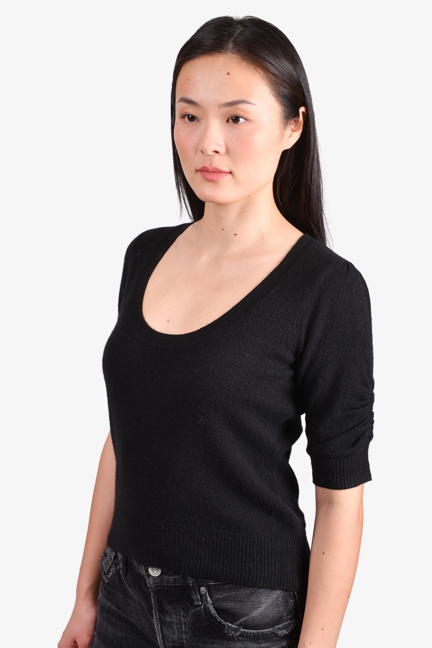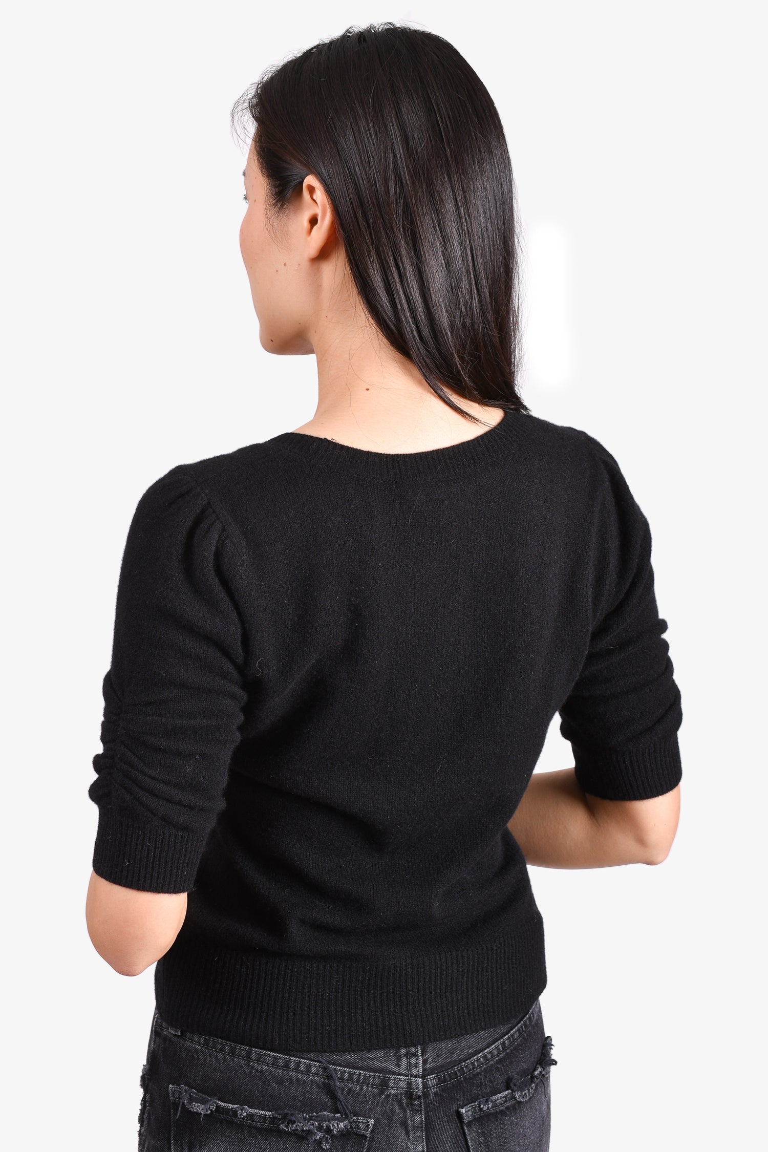 Frame Black Cashmere Ruched Sleeve Sweater Size S