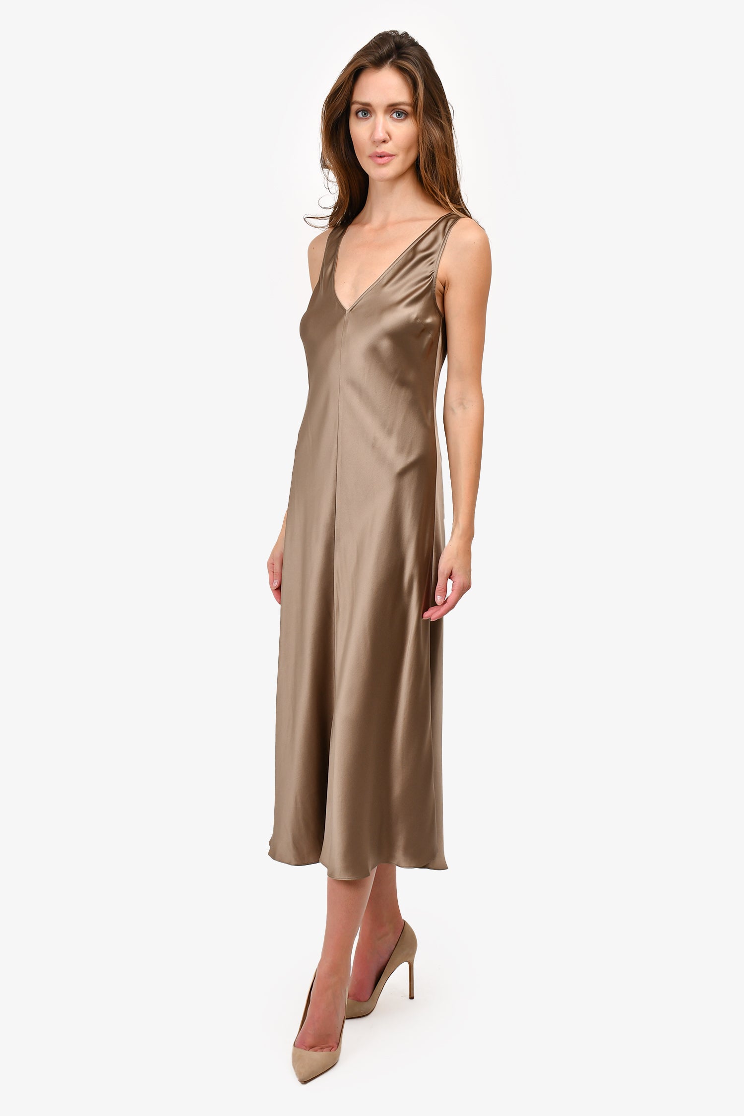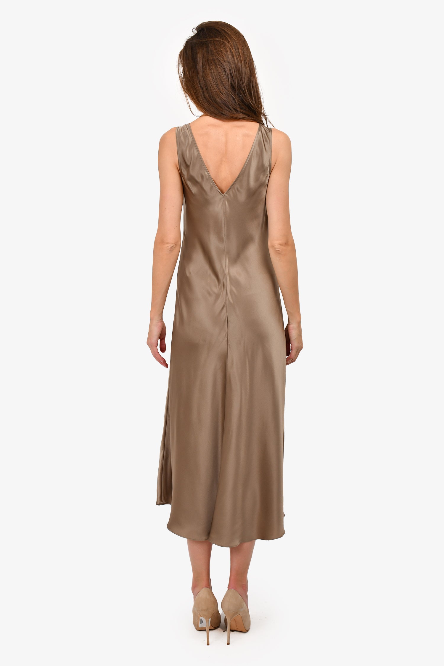 Frame Grey Silk V-Neck Slip Maxi Dress Size M