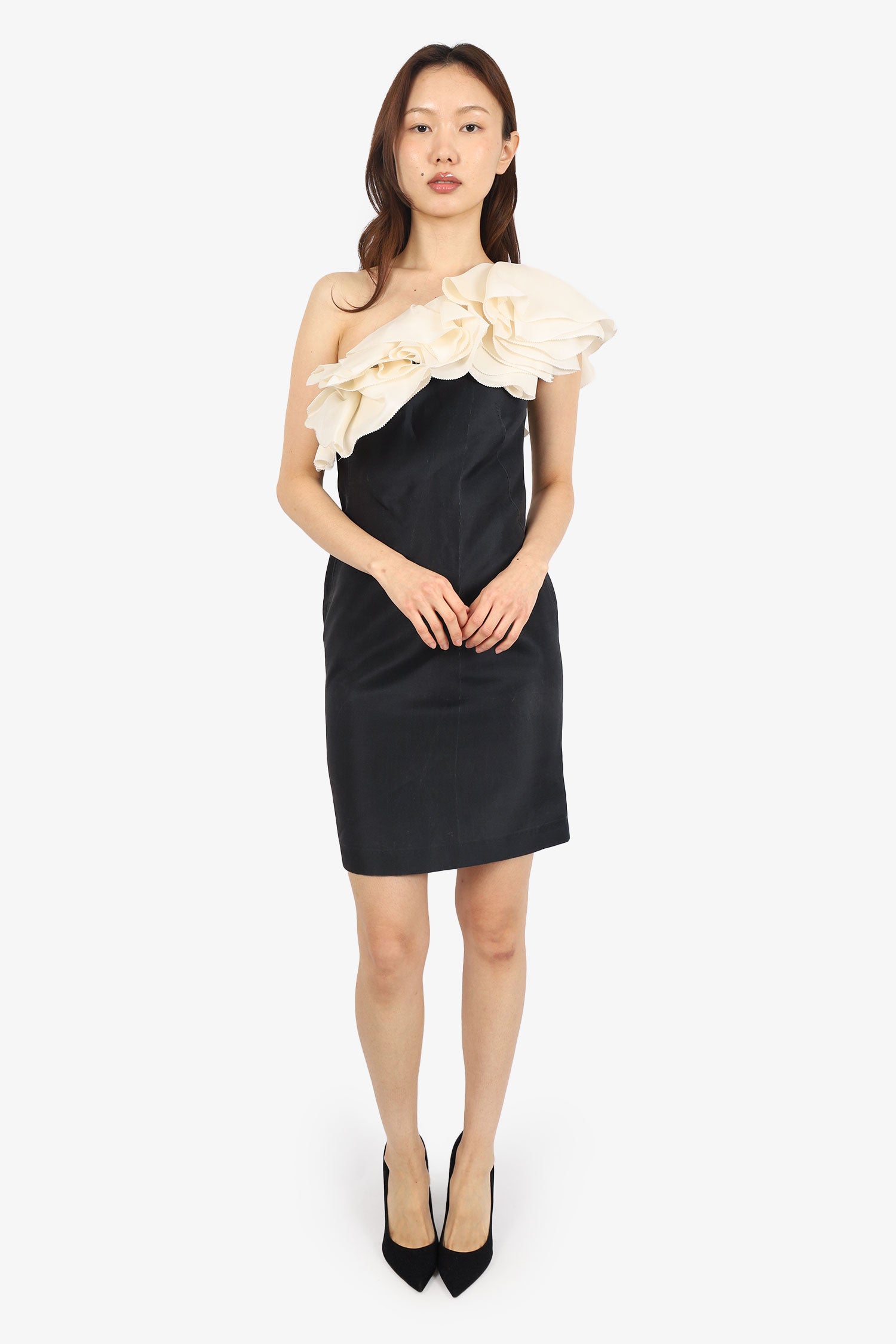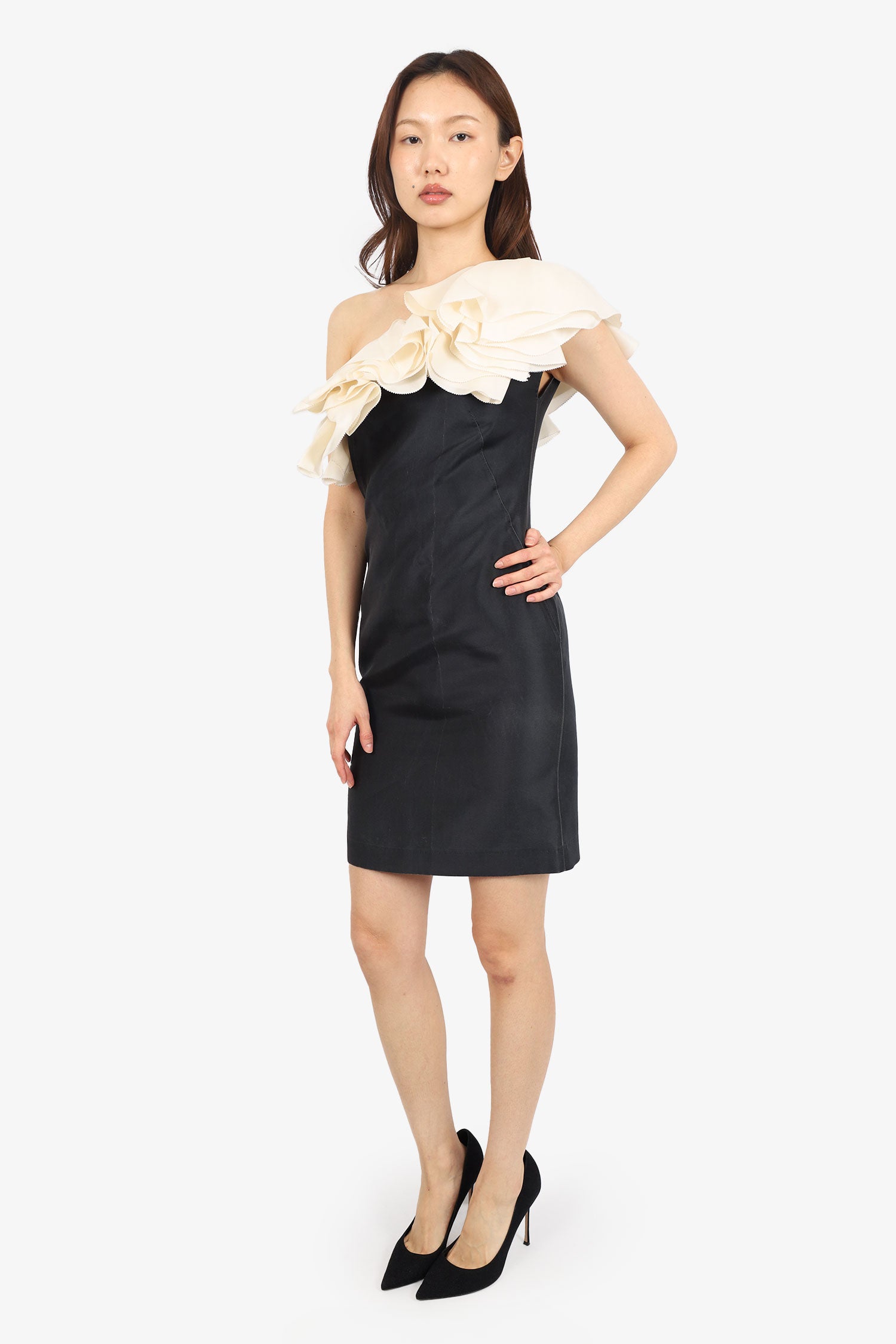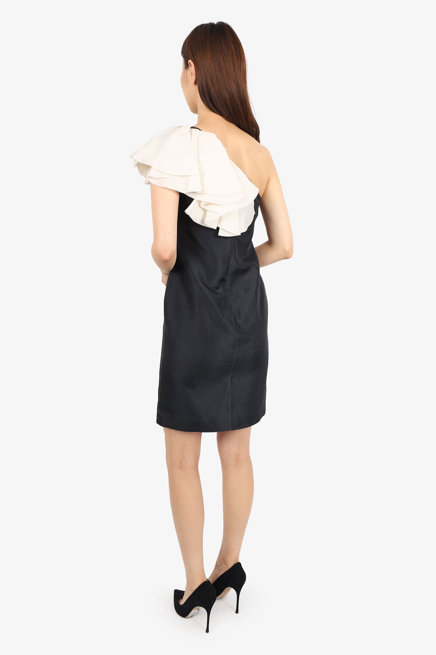 Refresh availabilityFrancesco Scognamiglio Black/White Silk One Shoulder Ruffle Dress. Rear zip closure. Unlined. Tonal stitching.