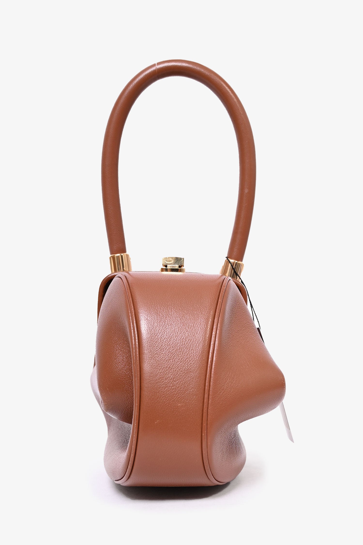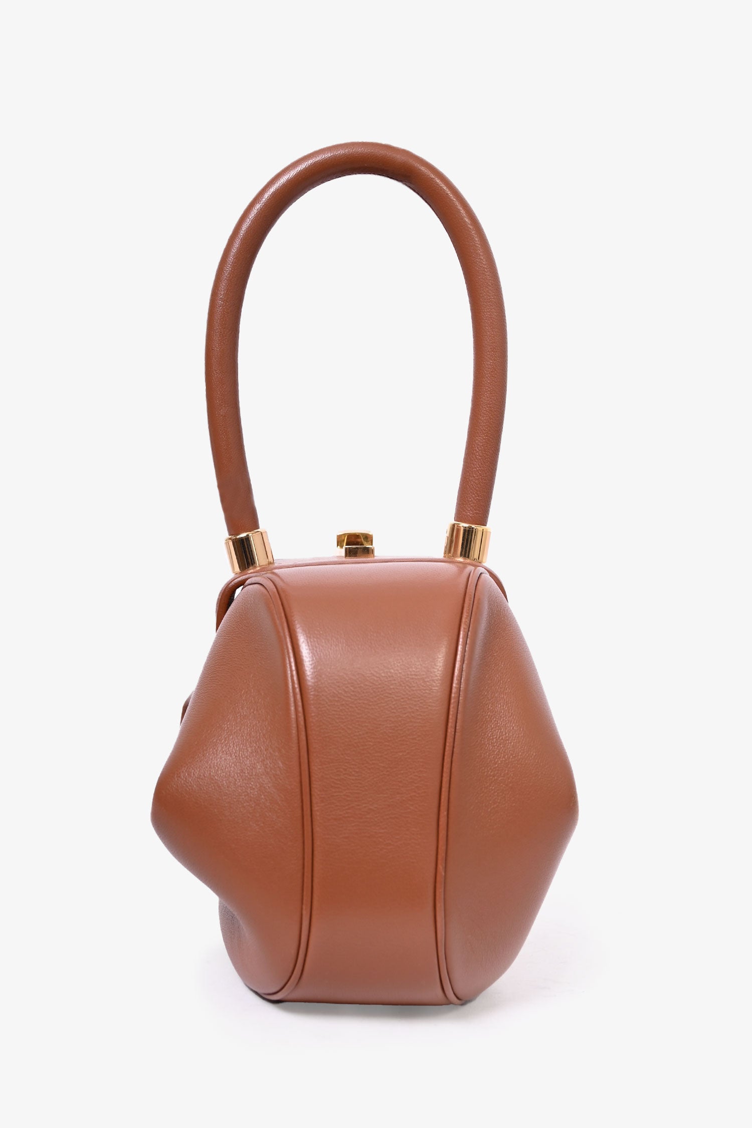 Refresh availabilityGabriela Hearst Brown Leather 'Nina' Top Handle Bag. Gold-tone hardware. Tonal stitching. Flip turn-lock closure. Single interior compartment.