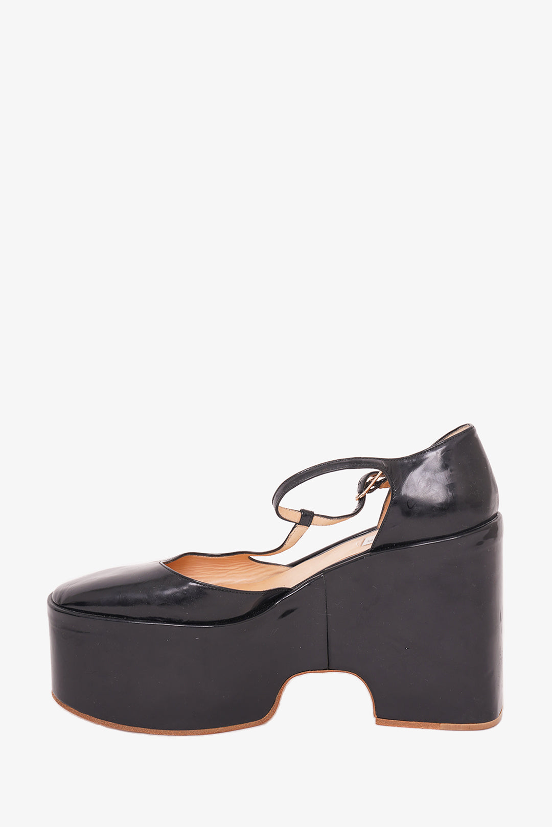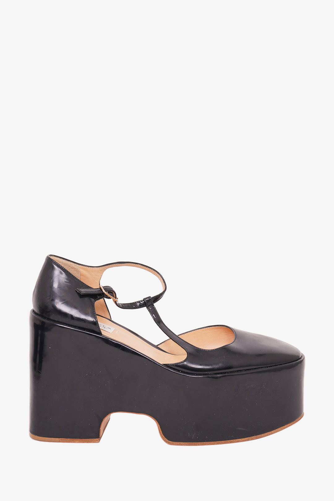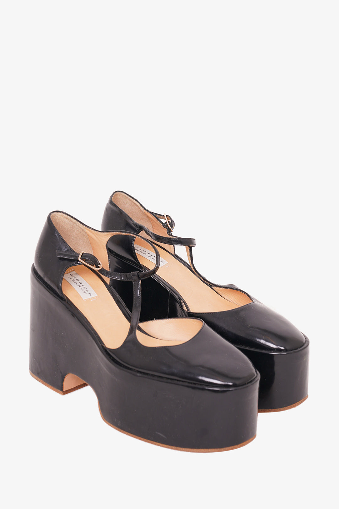 Refresh availabilityGabriella Hearst Black Platform Mary Janes. Round toe. T strap with buckle closure. Gold hardware. Tonal stitching.