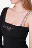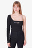 GCDS Black Asymmetric Crystal Embellished Ribbed Bodysuit Size L