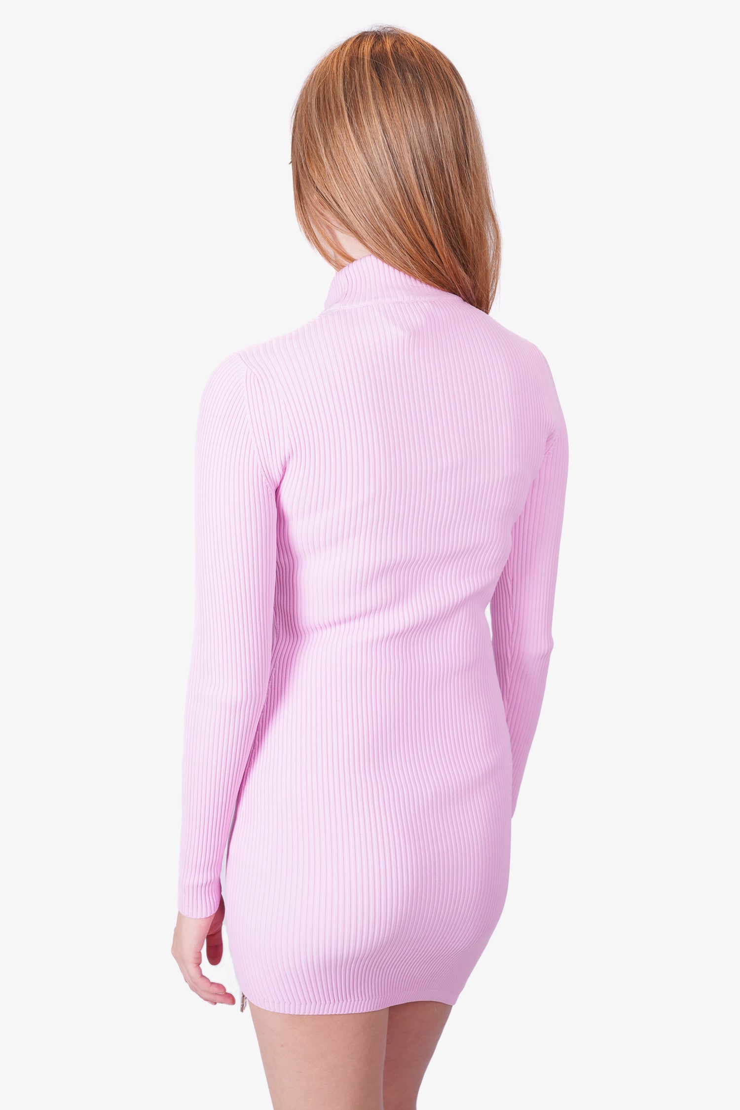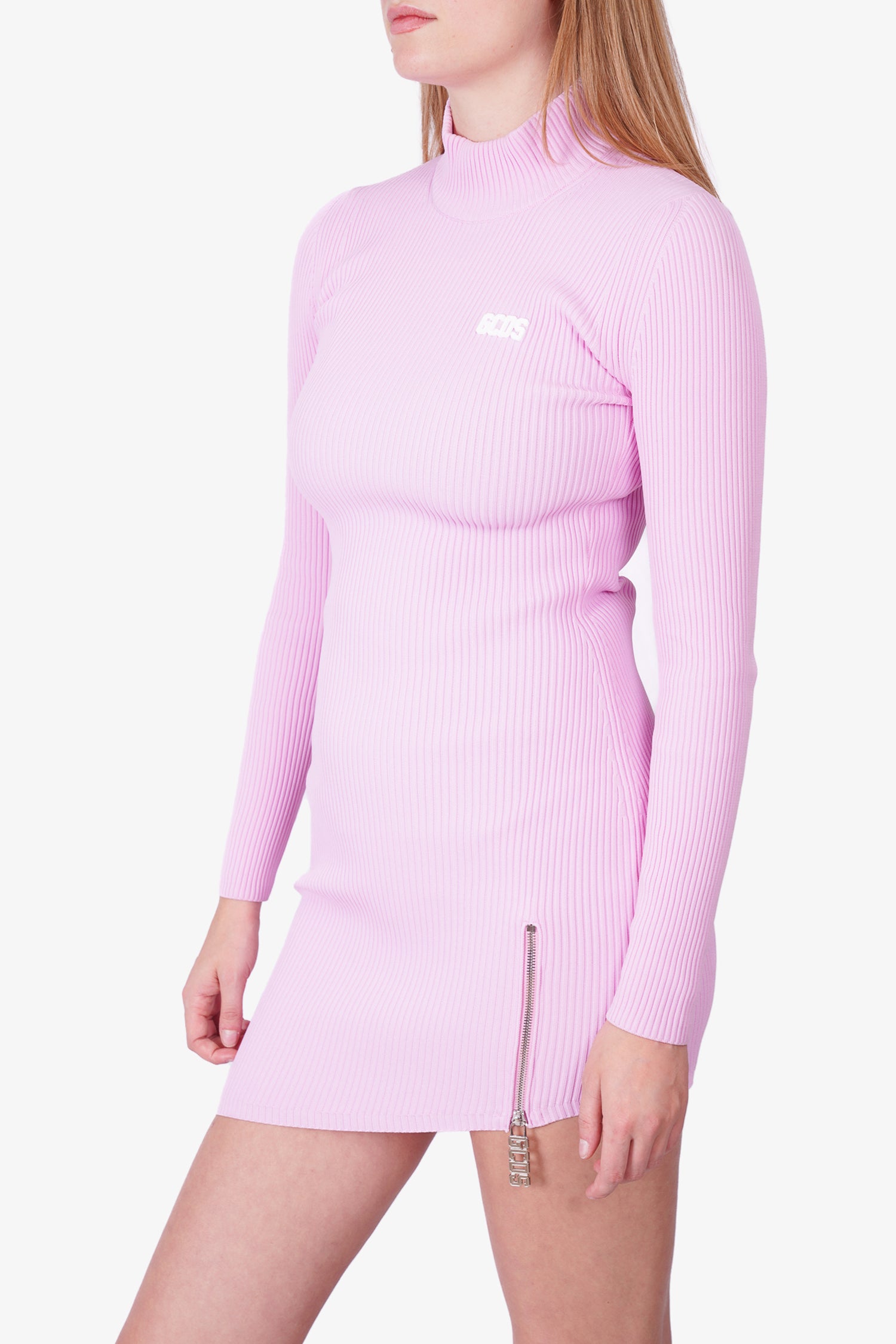 Refresh availabilityGCDS Pink Ribbed Bodycon Dress. Mock-neckline. Zip detail. Long sleeve. Tonal stitching.
