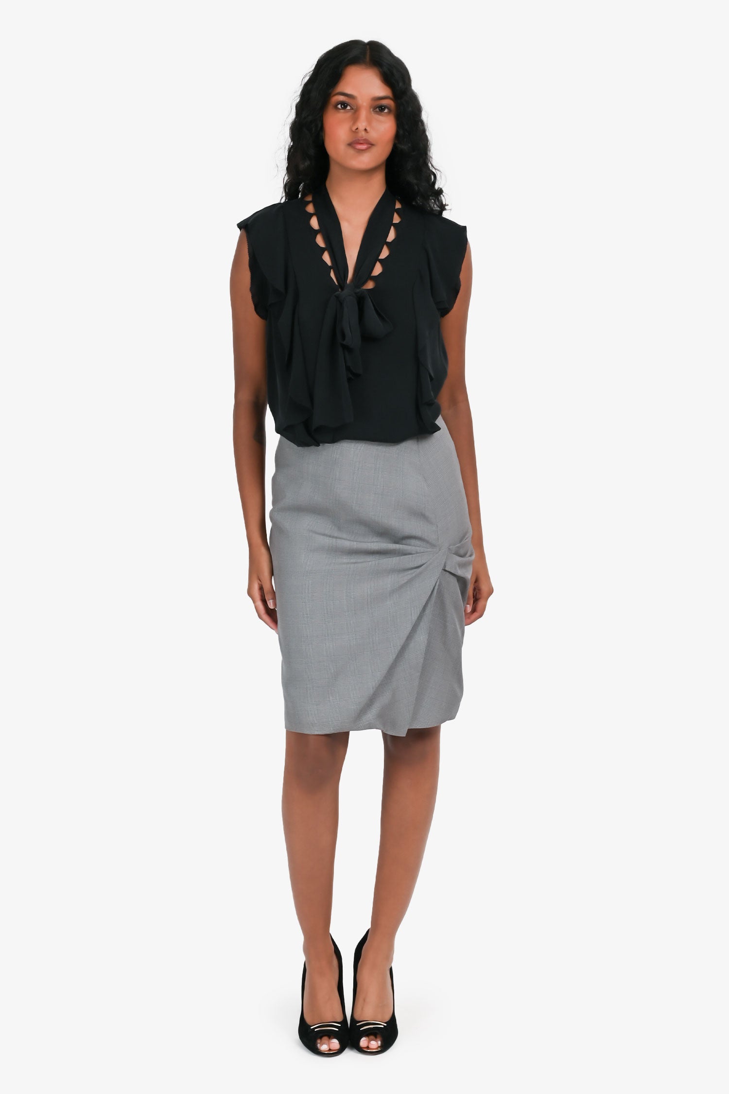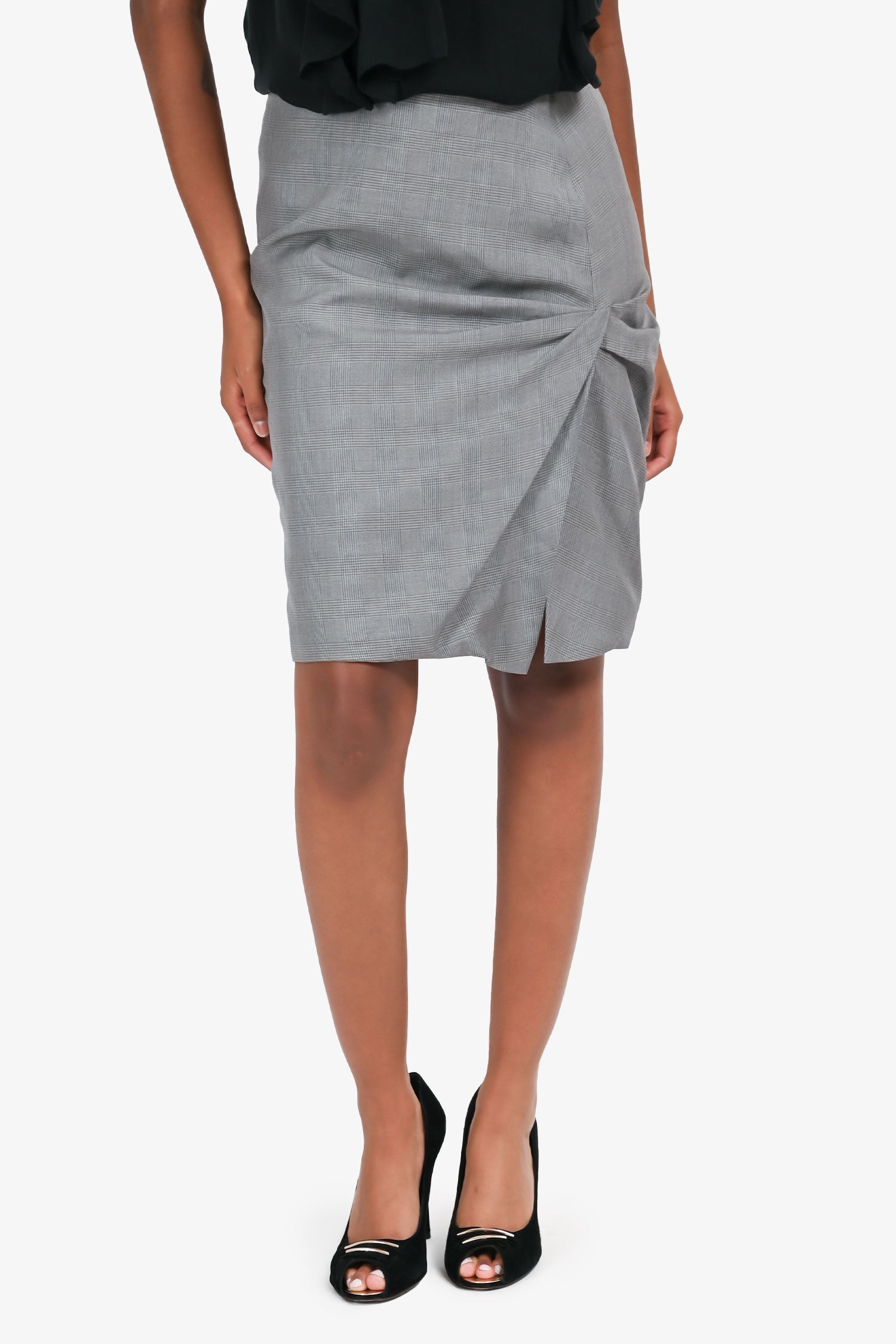 Refresh availabilityGianni Versace Grey Silk Houndstooth Check Midi Skirt. Concealed side zip closure. Fully lined. Tonal stitching.