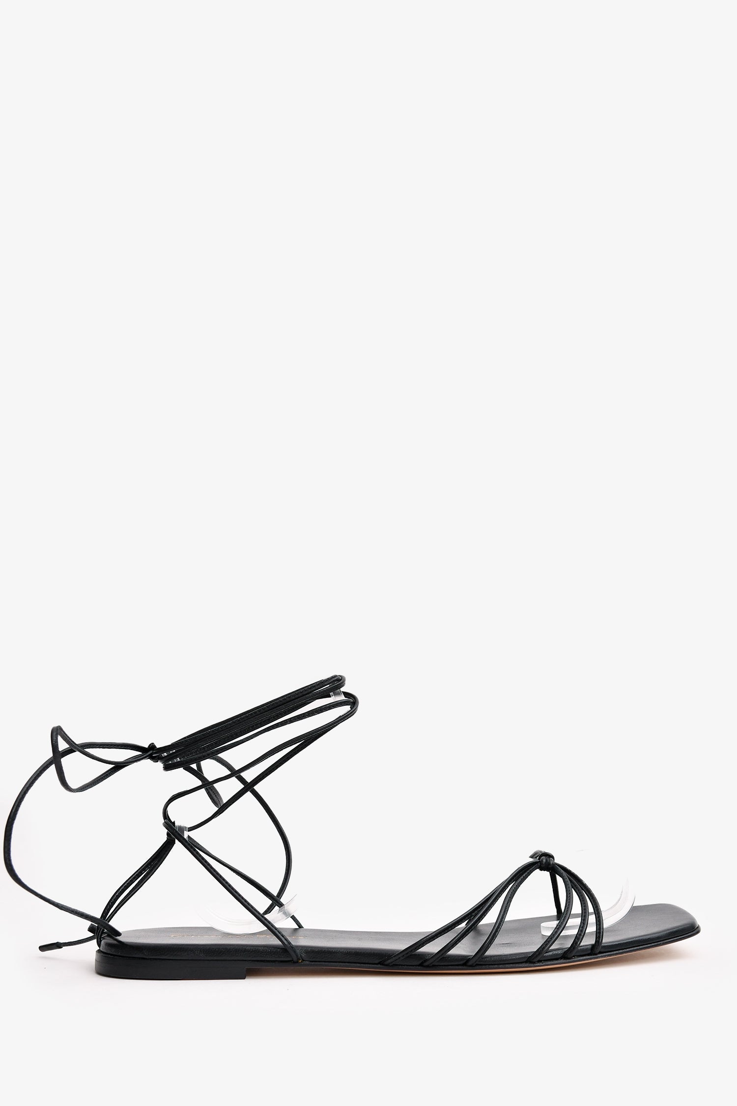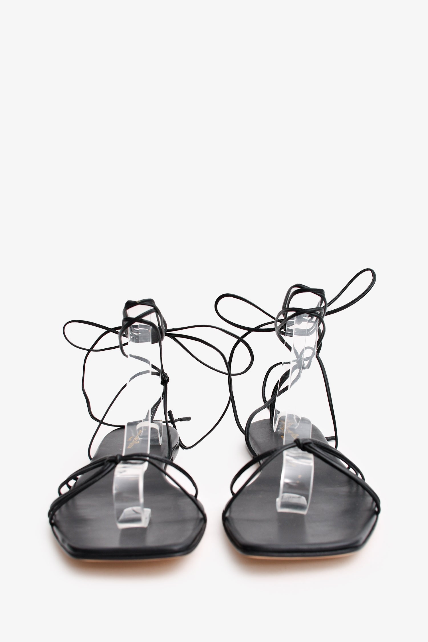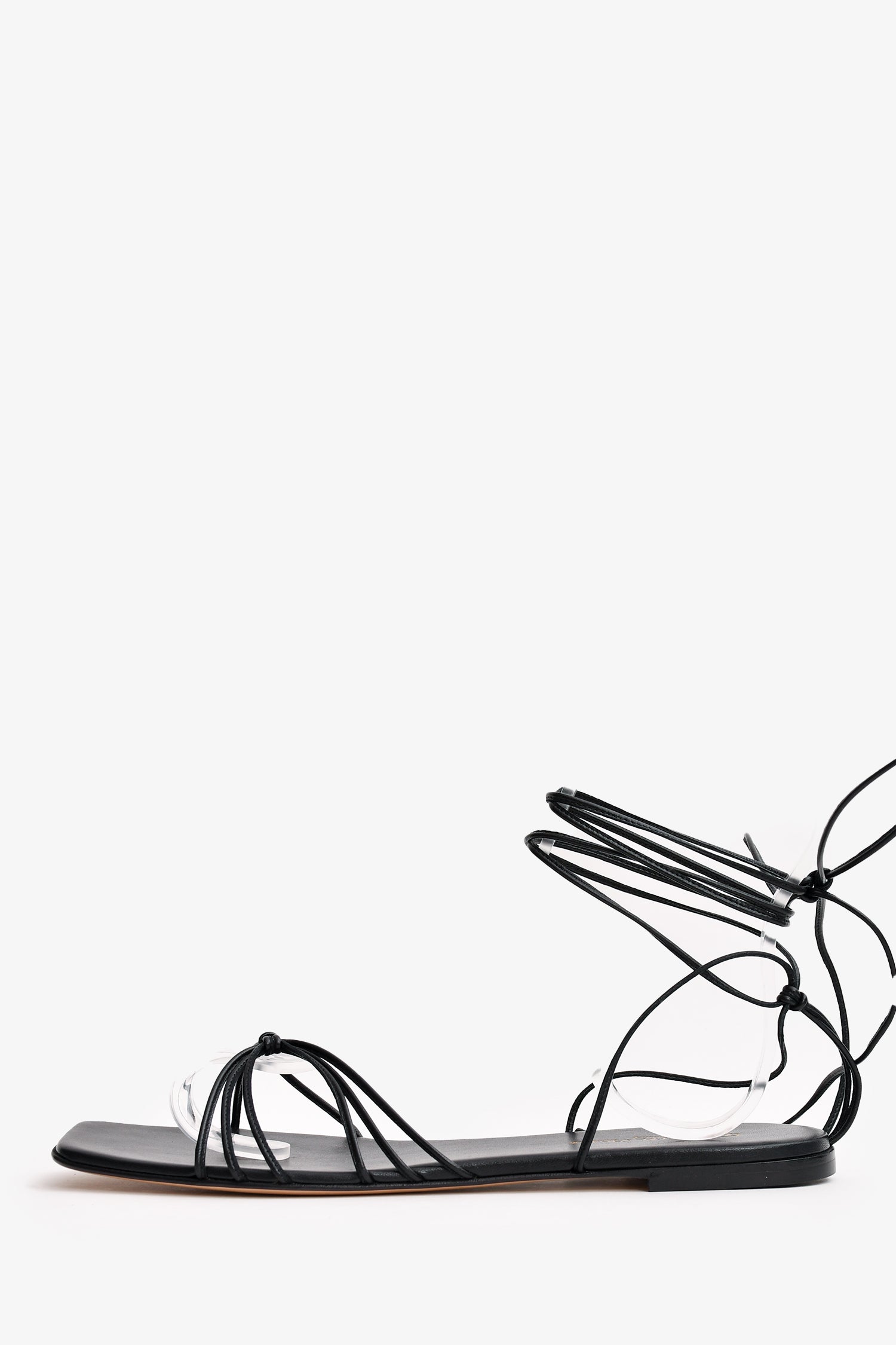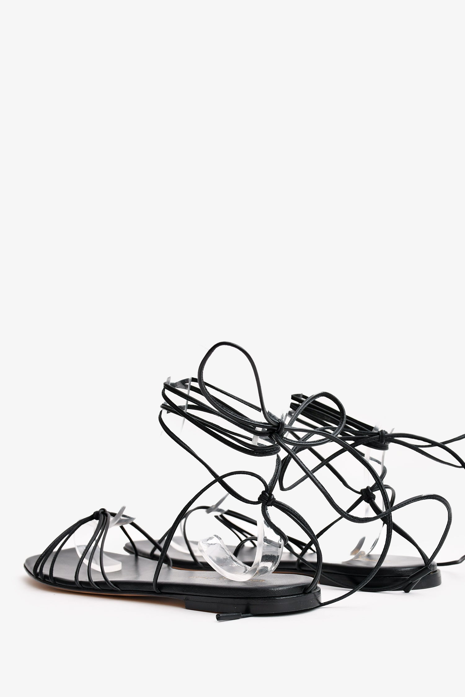 Refresh availabilityGianvito Rossi Black Leather Sylvie Sandals. Lace up closure. Tonal stitching.