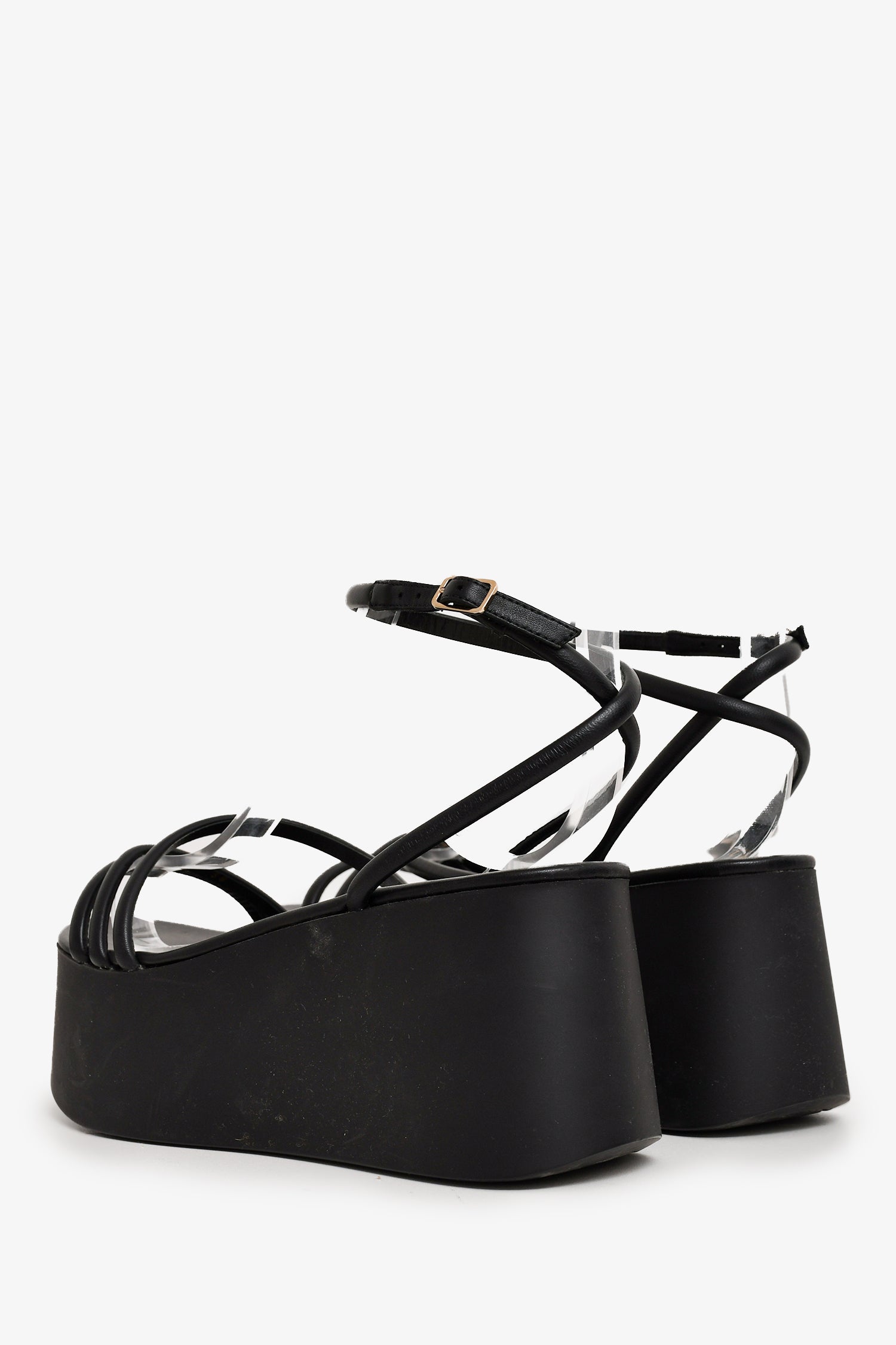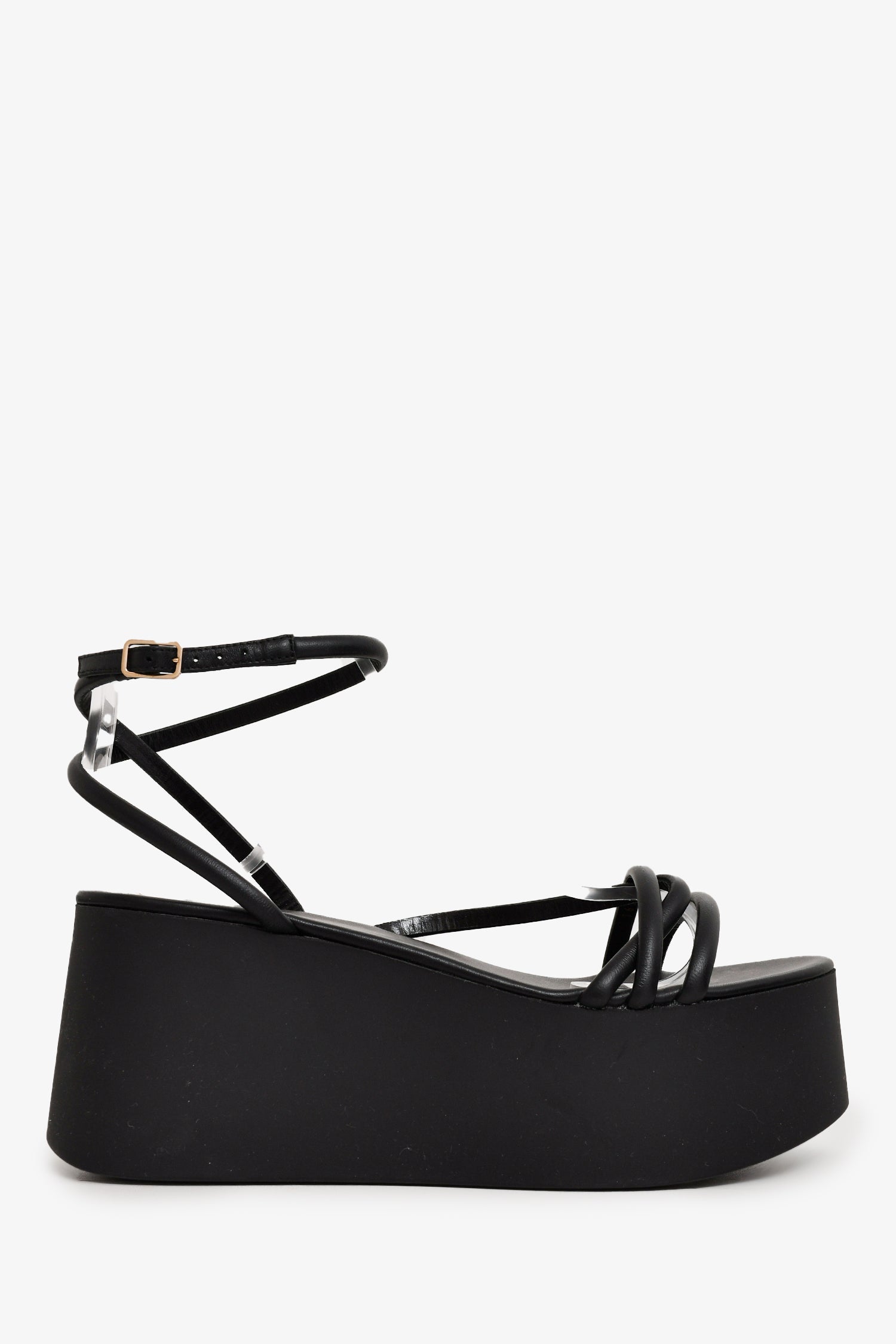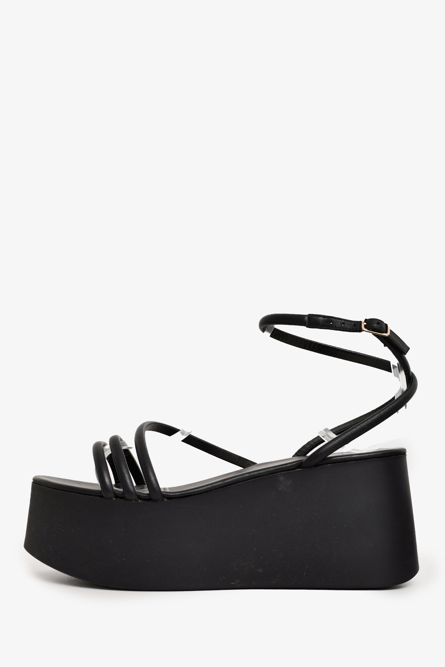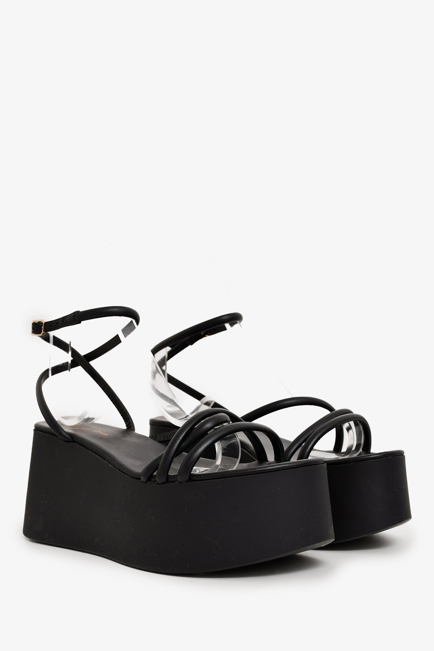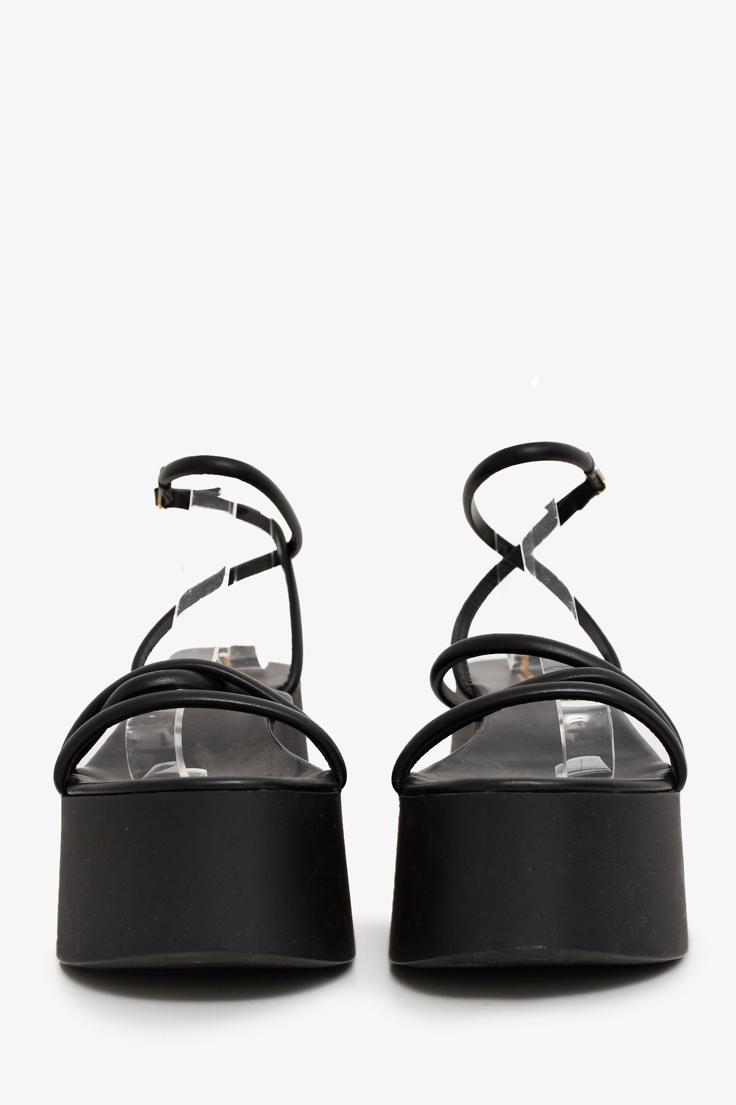 Refresh availabilityGianvito Rossi Black Platform Sandals. Open-toe. Wrap-around strap with buckle closure. Tonal stitching.