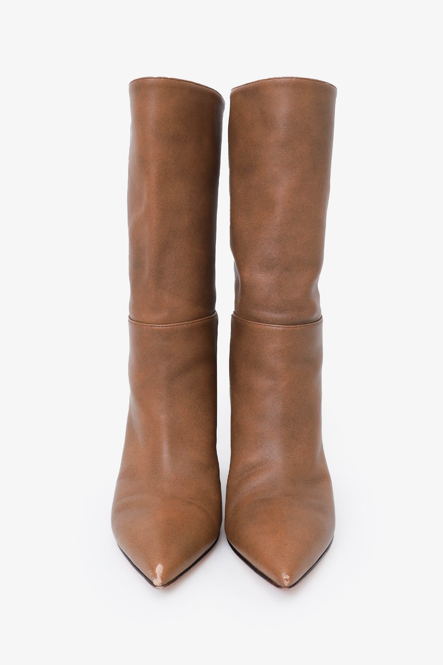 Refresh availabilityGianvito Rossi Brown Leather Piper Mid-Calf Boots. Slip-on. Pointed toe. Block heel. Tonal stitching.