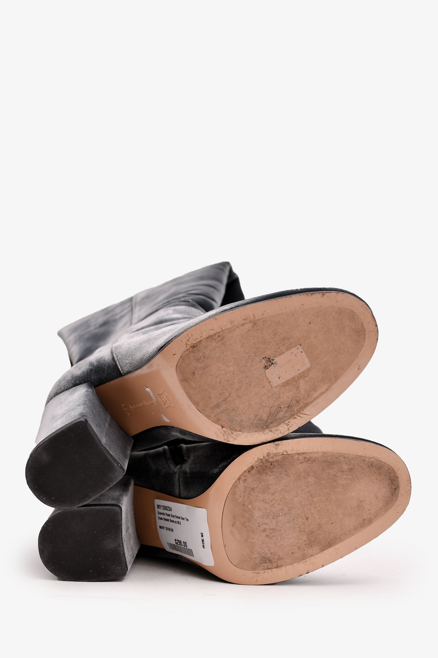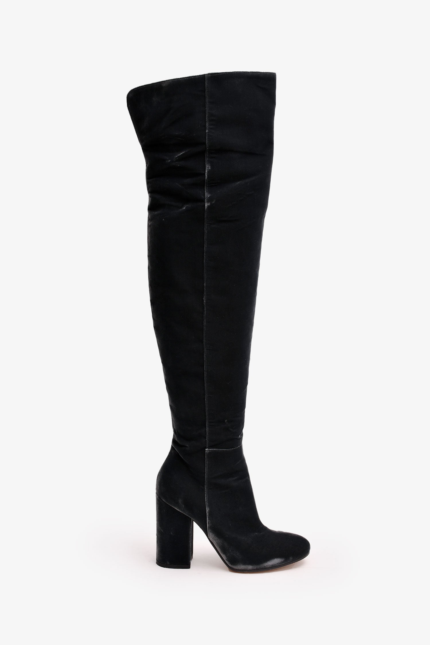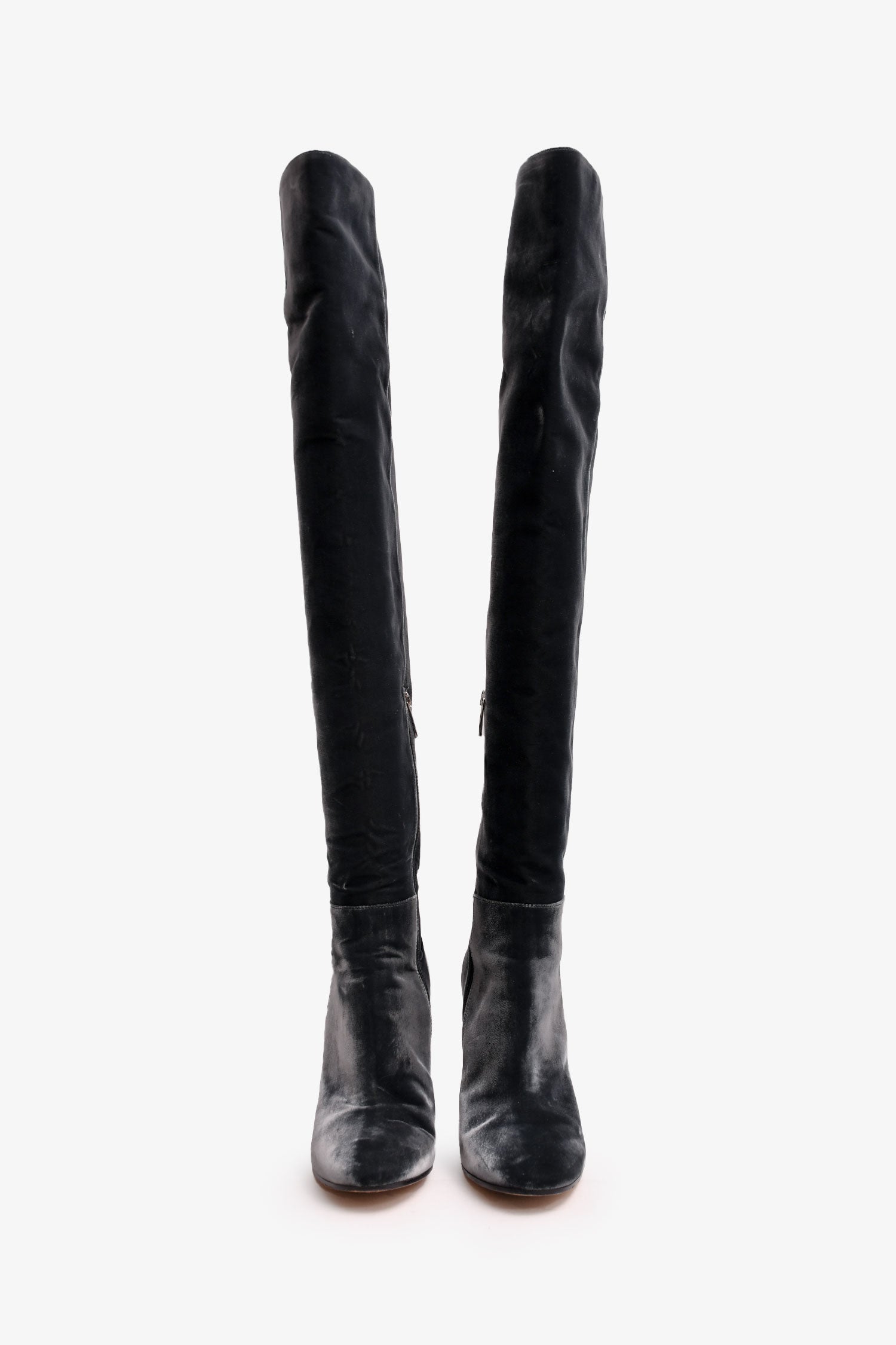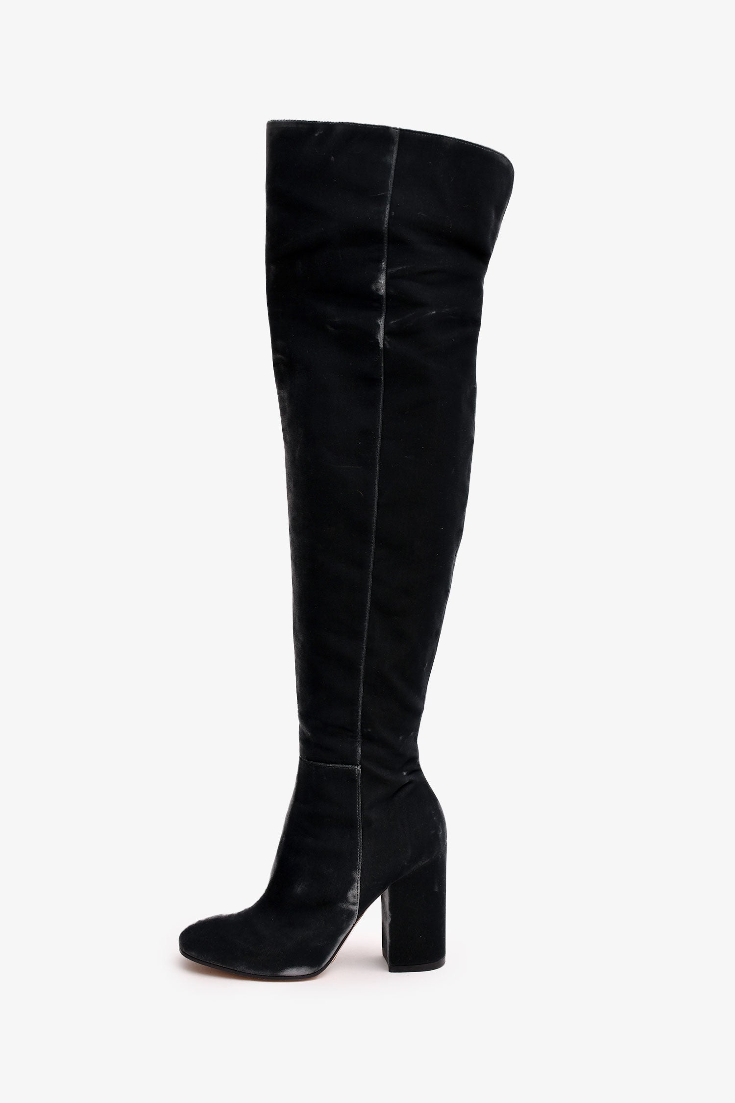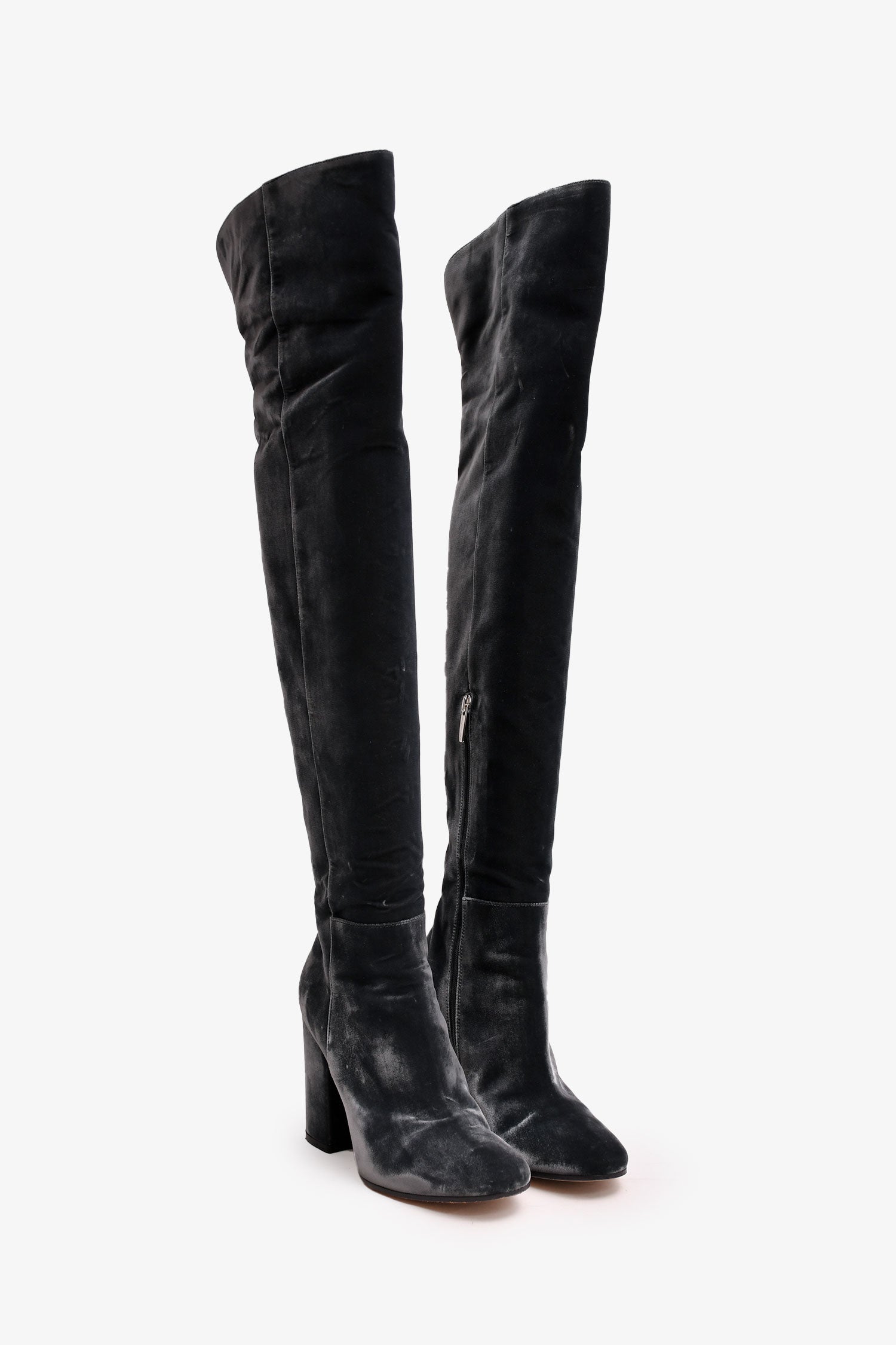 Refresh availabilityGianvito Rossi Grey Velvet Over The Knee Heeled Boots. Round toe. Side zip closure. Block heel.