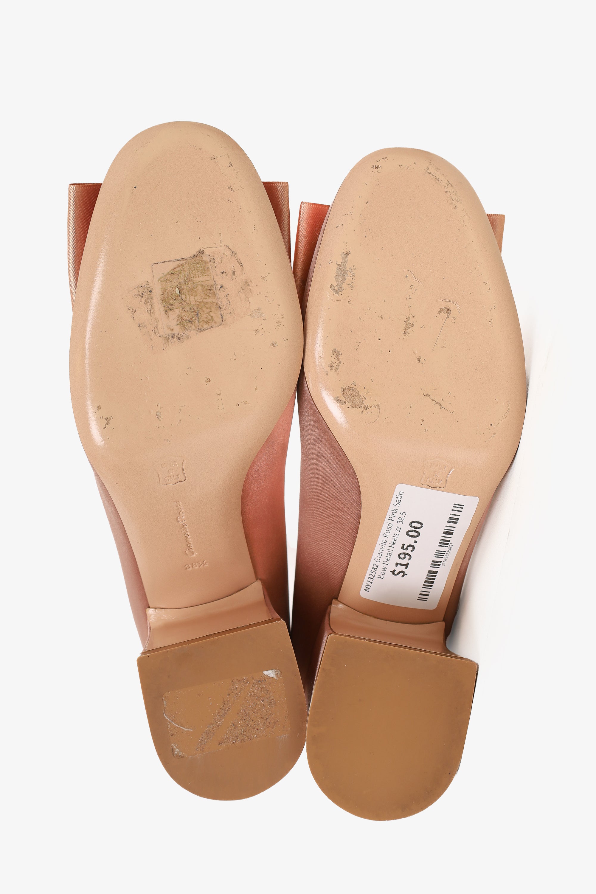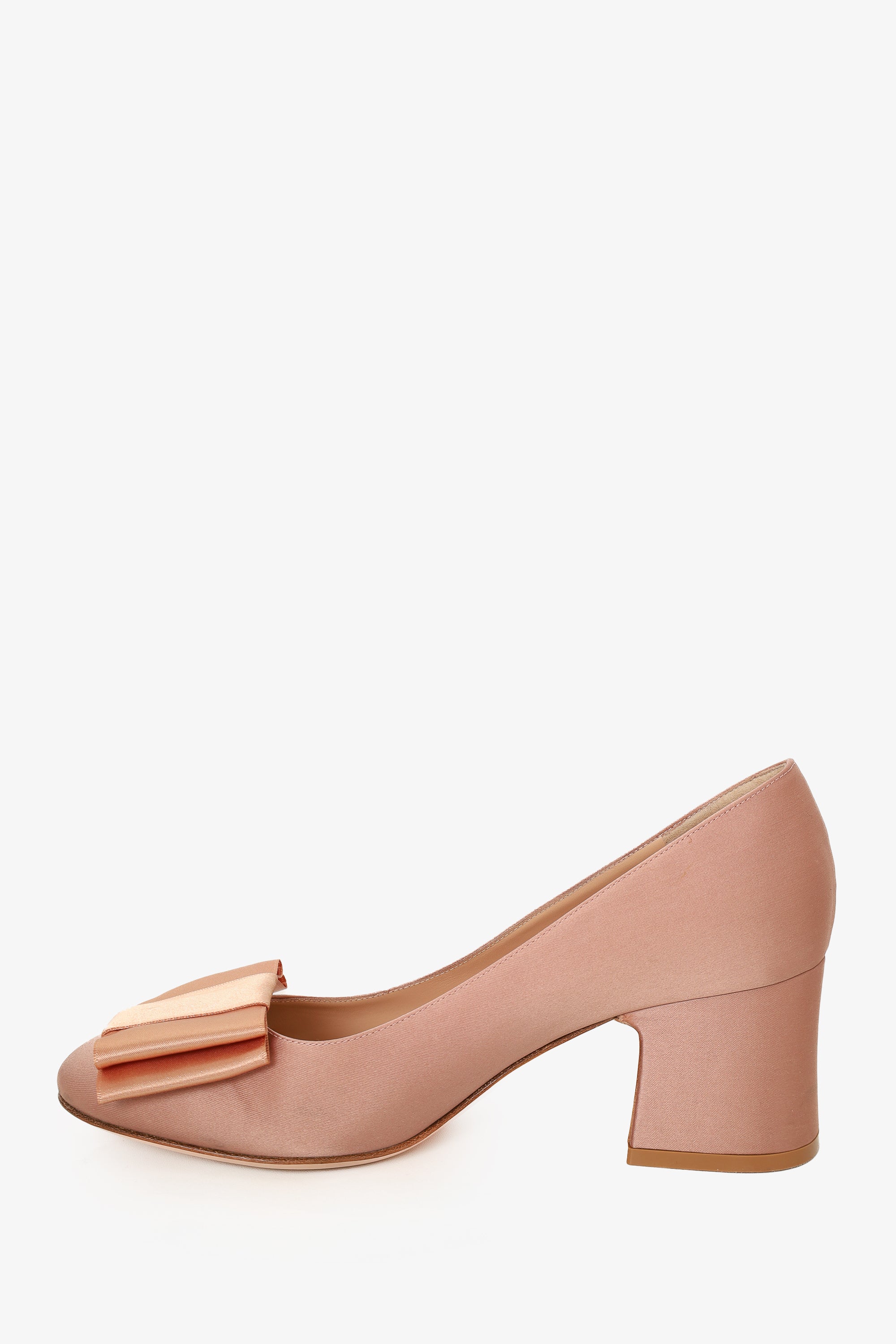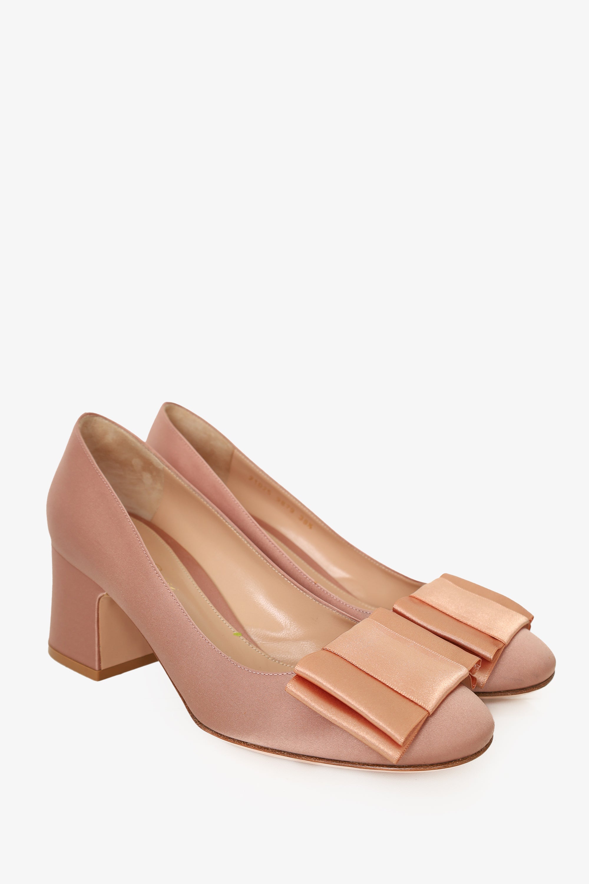 Refresh availabilityGianvito Rossi Pink Satin Bow Detail Heels. Slip-on. Round toe. Block heel. Tonal stitching.