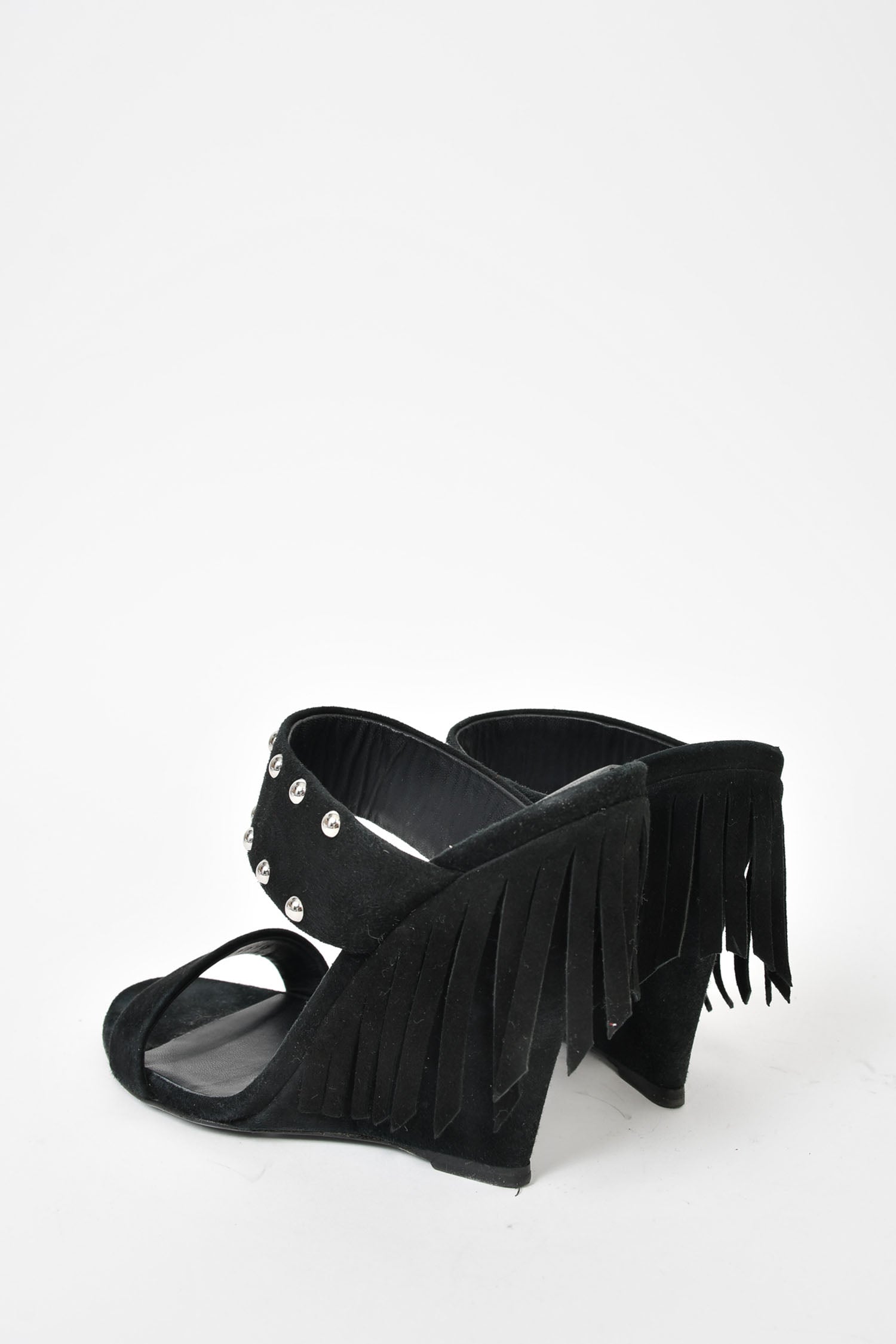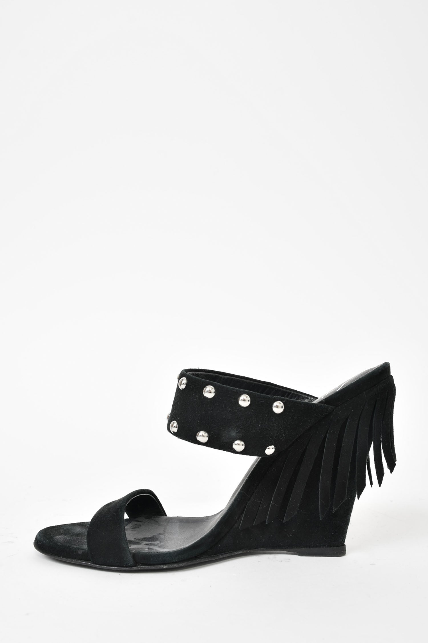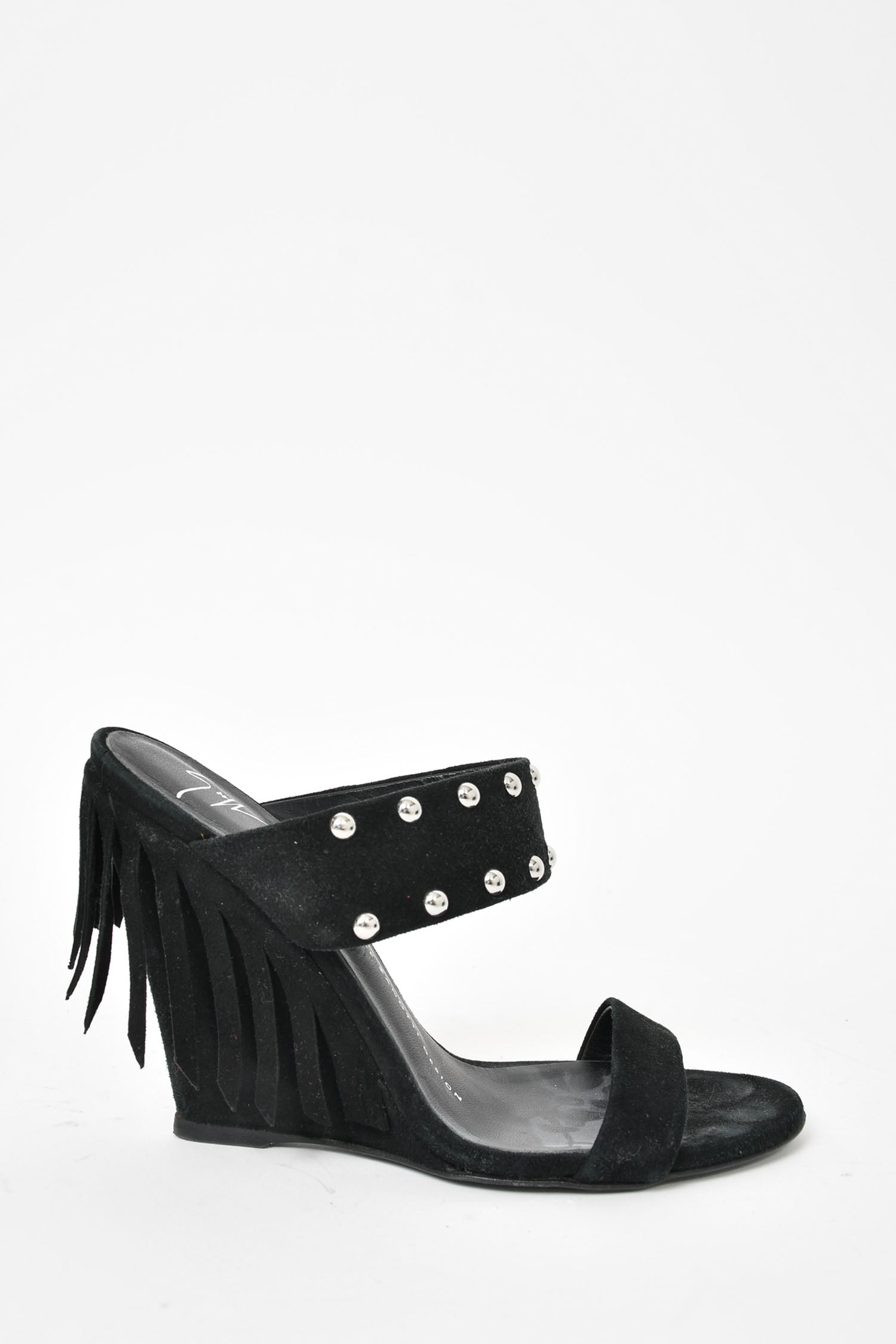 Giuseppe Zanotti Black Studded Fringe Wedge Size 37