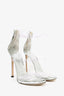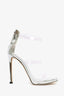 Giuseppe Zanotti Silver Leather PVC Strappy Heeled Sandals Size 40