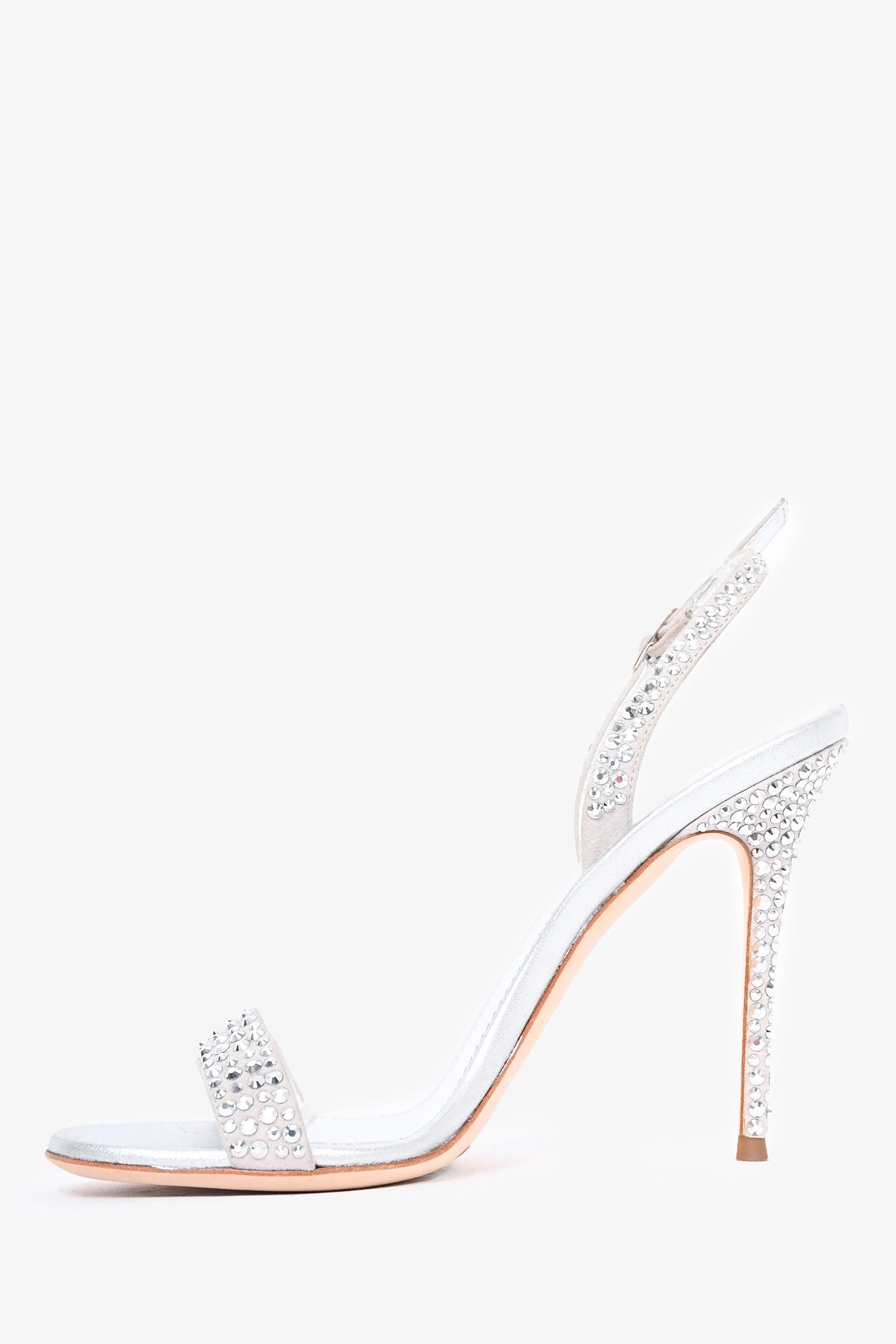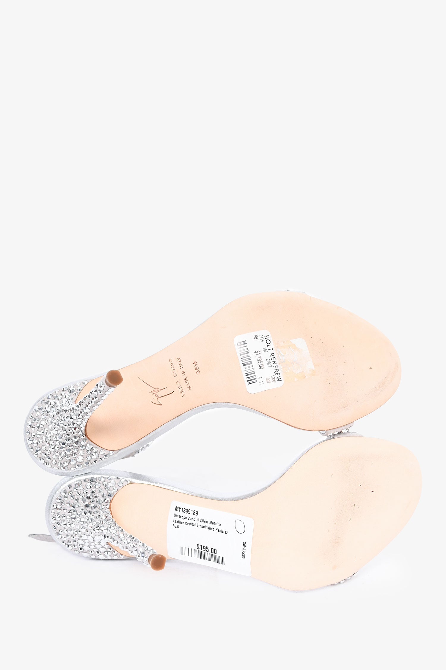Refresh availabilityGiuseppe Zanotti Silver Metallic Leather Crystal Embellished Heels.