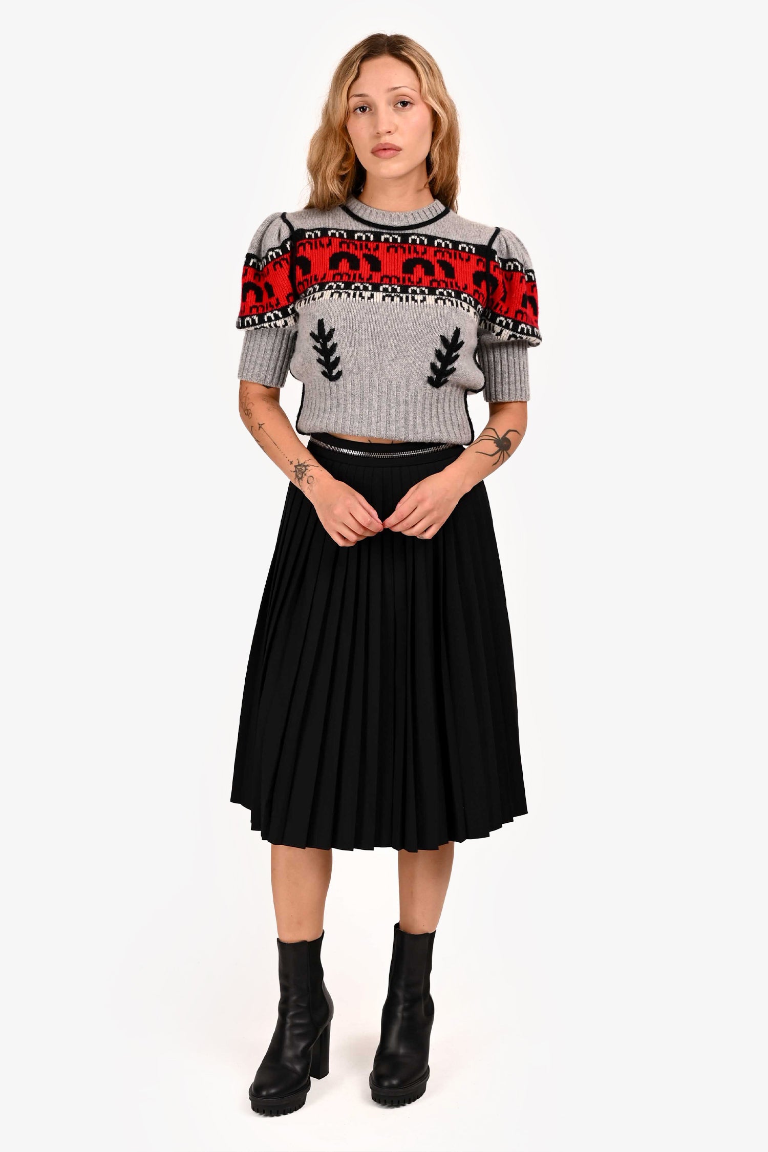 Givenchy 2014 Black Wool Zip Detail Pleated Midi Skirt Size 34