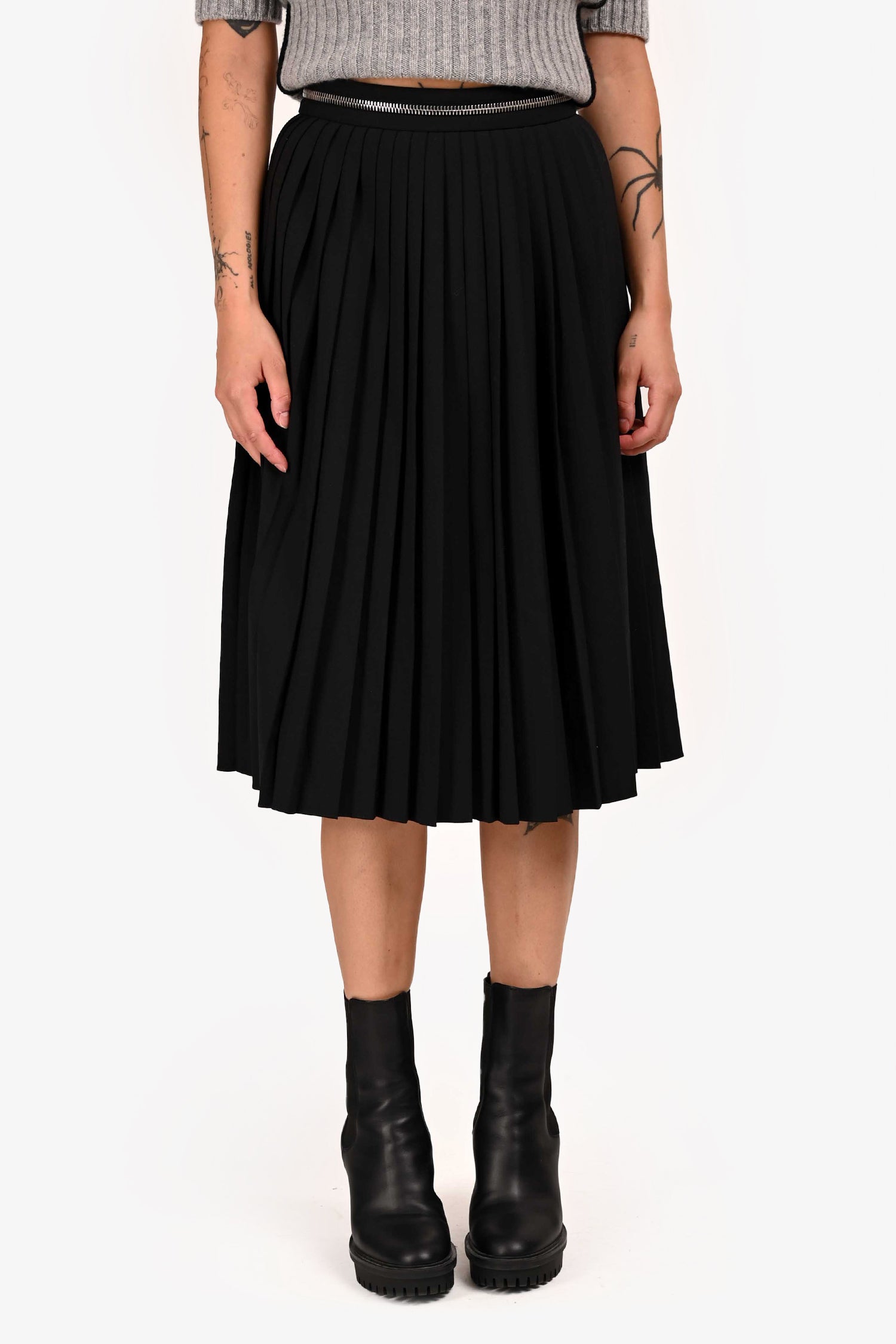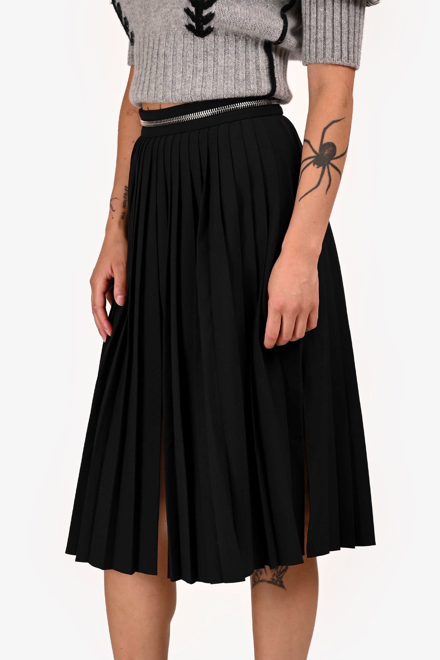 Refresh availabilityGivenchy 2014 Black Wool Zip Detail Pleated Midi Skirt. Side hook and button closure.