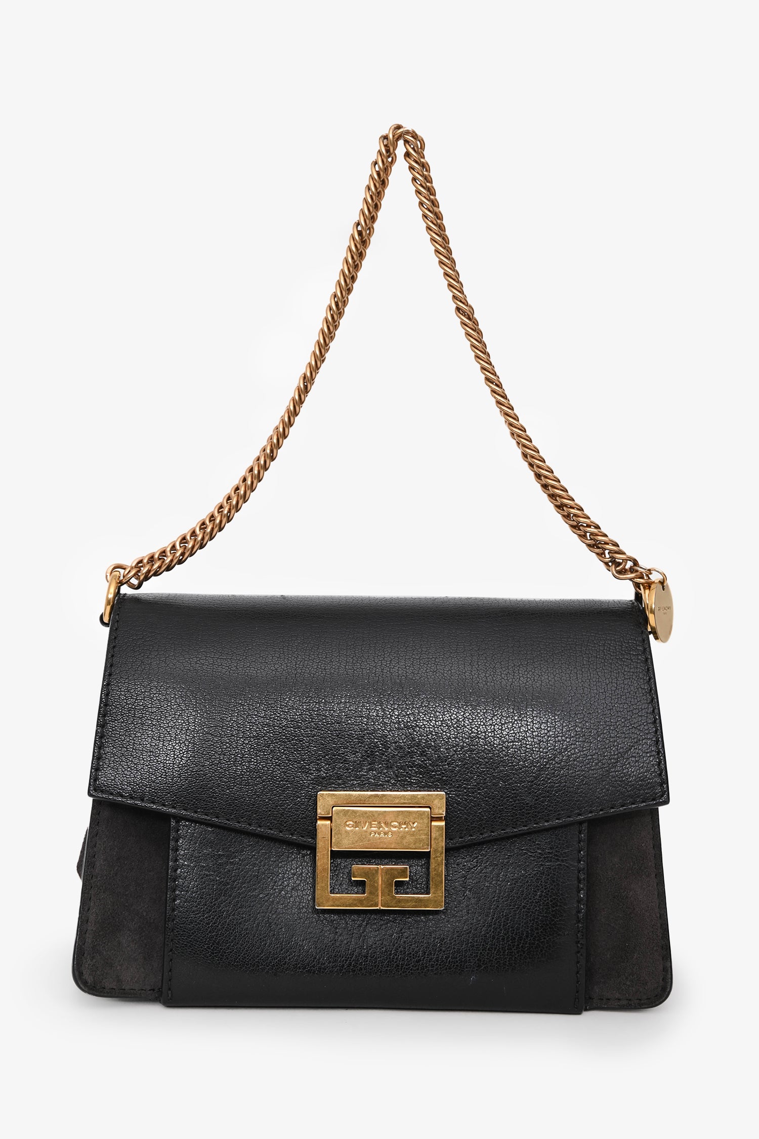 Refresh availabilityGivenchy 2018 Black Leather/Suede 'GV3' Bag. Front fold-over flap with a flip-lock closure. 1 chain-link and 1 attachable leather strap. 1 exterior compartment. 5 interior compartments. Gold-tone hardware. Tonal stitching.